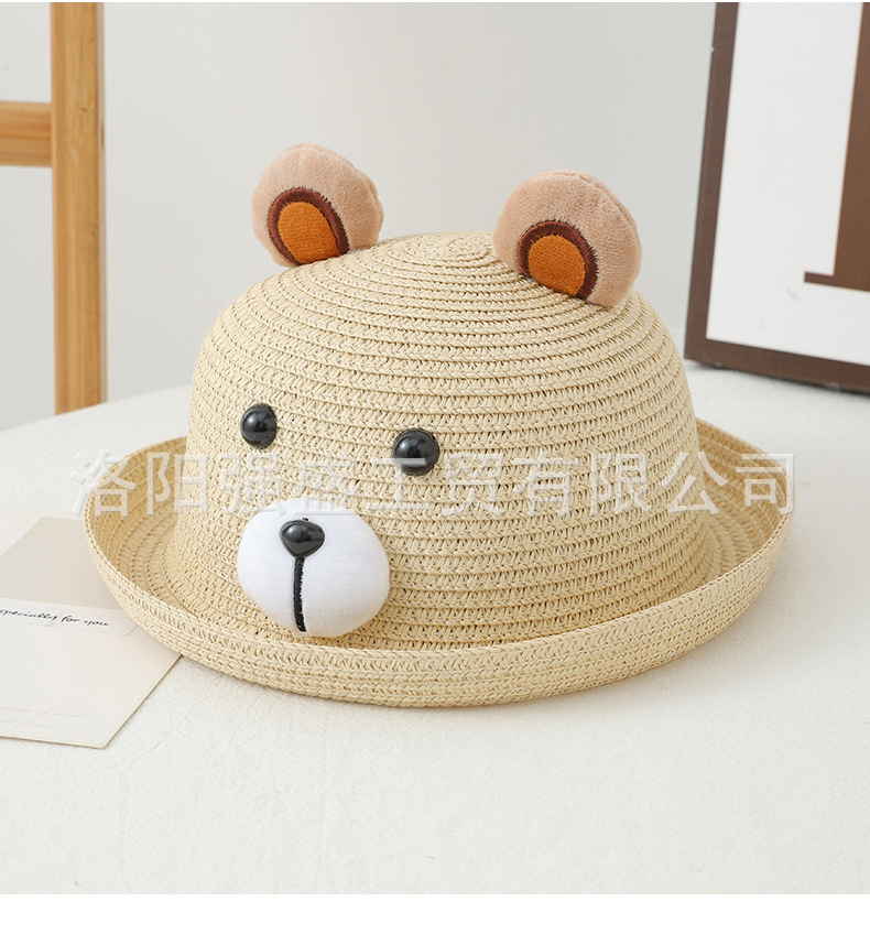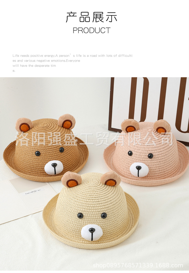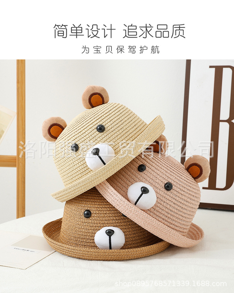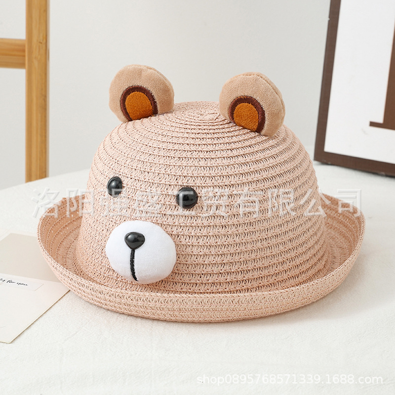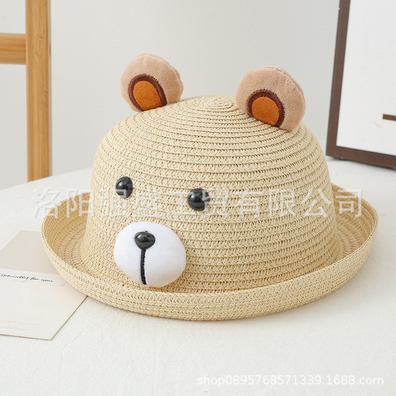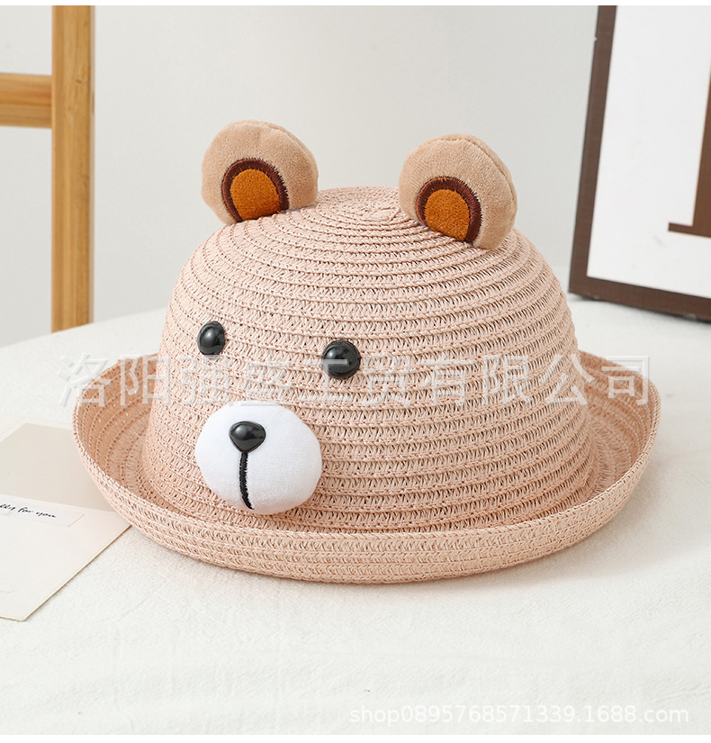 소년 소녀를위한 어린이 여름 선스크린 모자 만화 태양 모자 어부 모자 귀여운 곰 큰 브림 밀짚 모자 만화 분지 모자