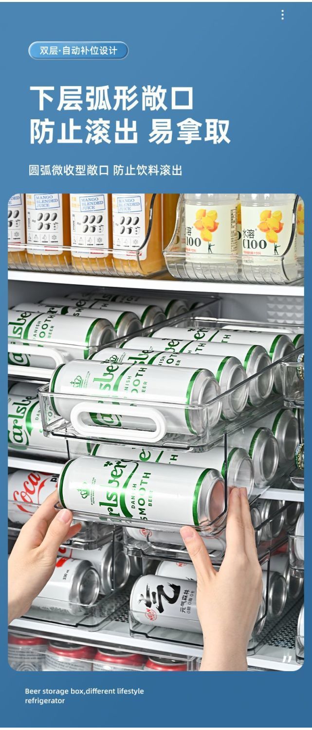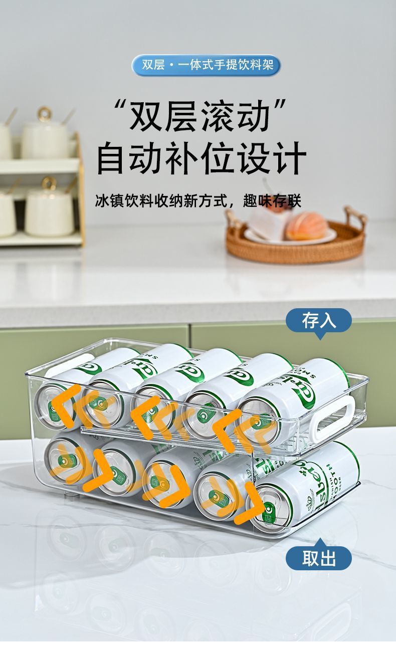 ∝냉장고 음료 맥주 보관 상자 이중 롤링 디자인 캔 보관 랙 냉장 콜라 스프라이트 정리