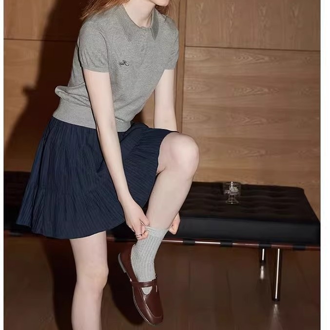 소프트 왁스 반팔 스웨터 여성의 봄/여름 2025 새로운 아카데미 스타일 편지 자수 짧은 셔츠스토어 가기