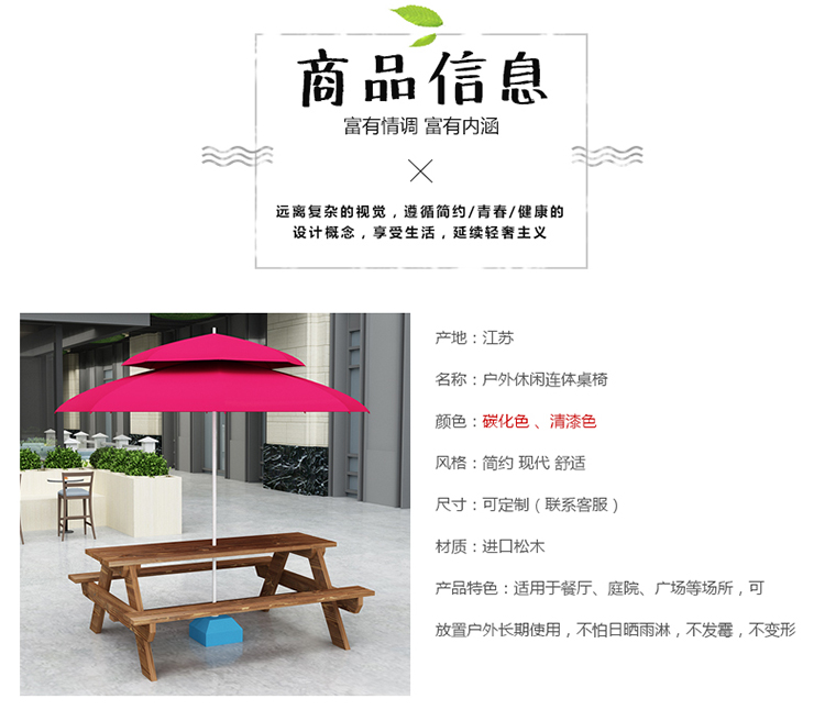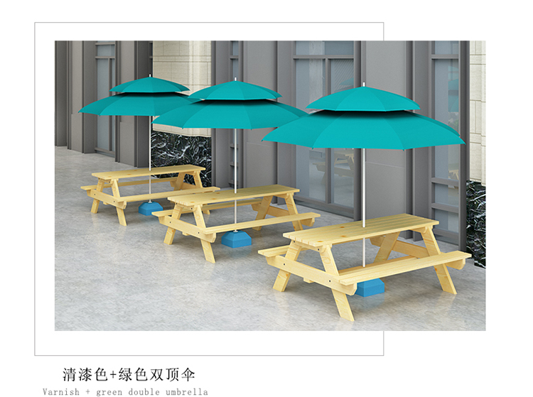 야외 테이블과 의자 조합 우유 차 커피 숍 안뜰 야외 매점 결합 된 식탁 및 의자 우산 공원 솔리드 우드 부식 방지