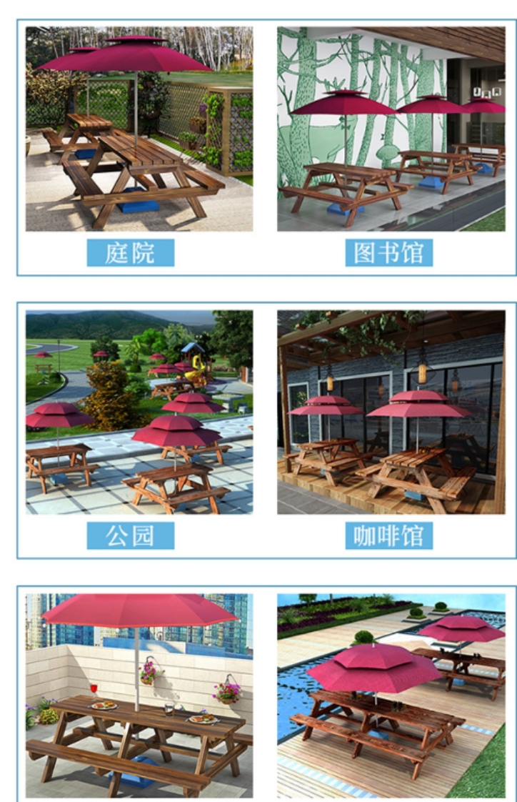 야외 테이블과 의자 조합 우유 차 커피 숍 안뜰 야외 매점 결합 된 식탁 및 의자 우산 공원 솔리드 우드 부식 방지스토어 가기