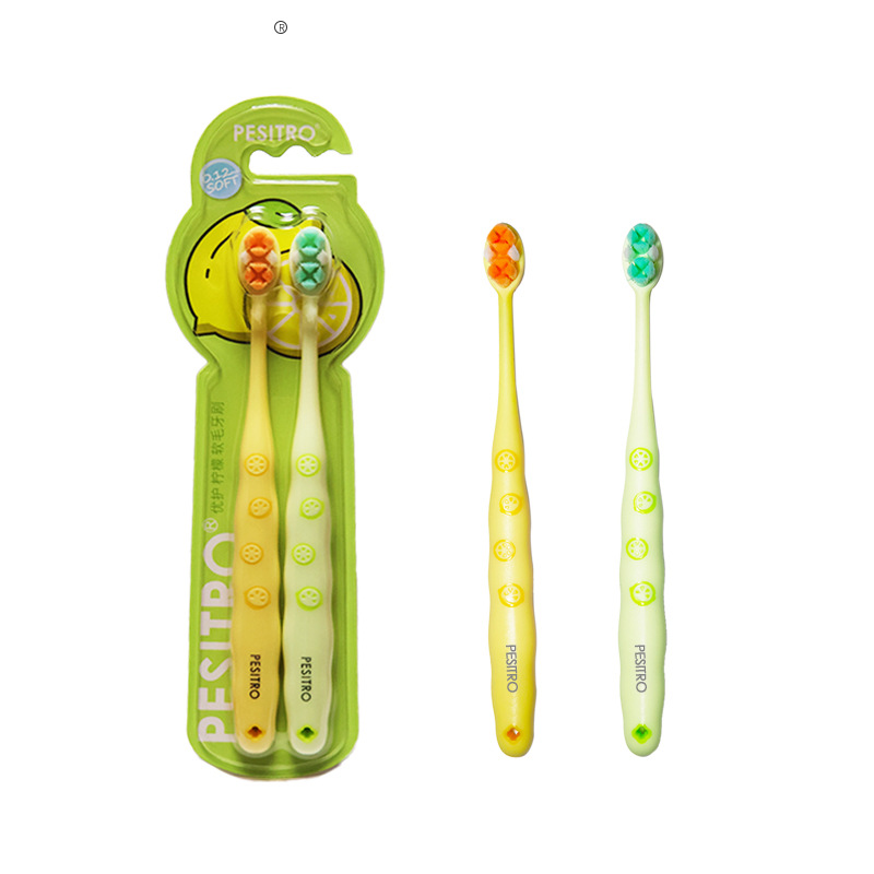 Pesitro Baishijie 어린이 칫솔 레몬 부드러운 머리 3-12 세 아기의 치아 보호자와 치이발 건강 2 팩