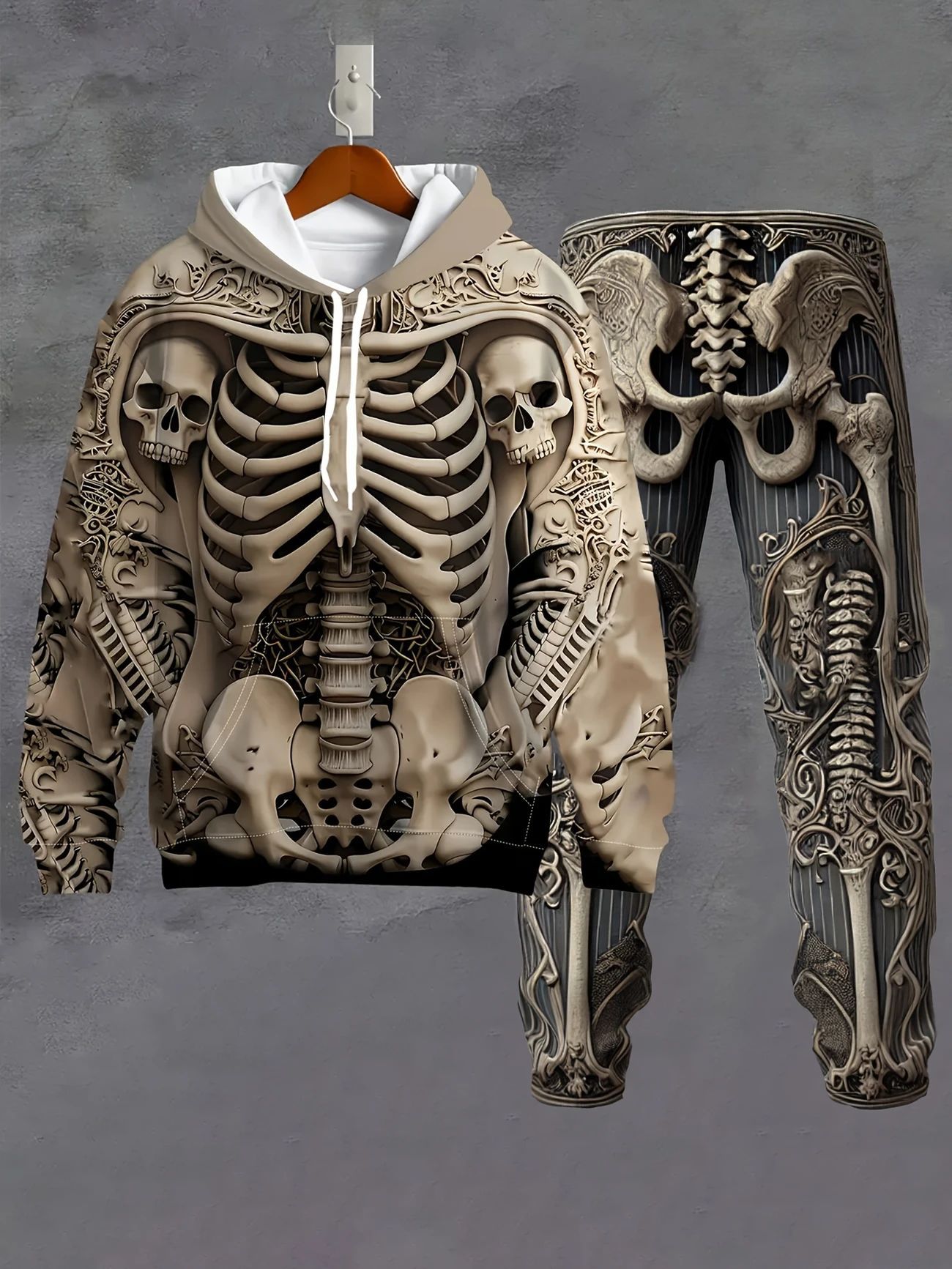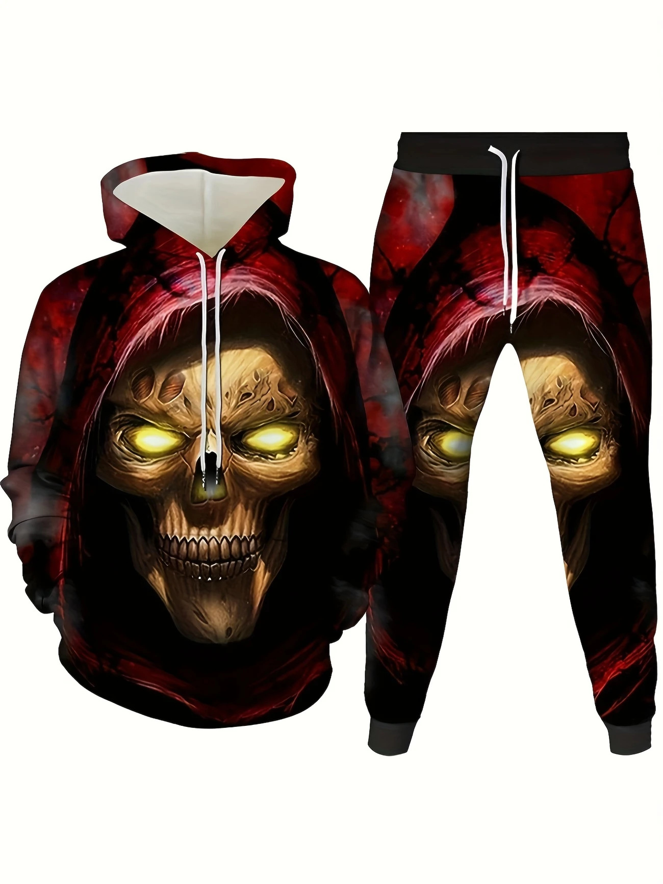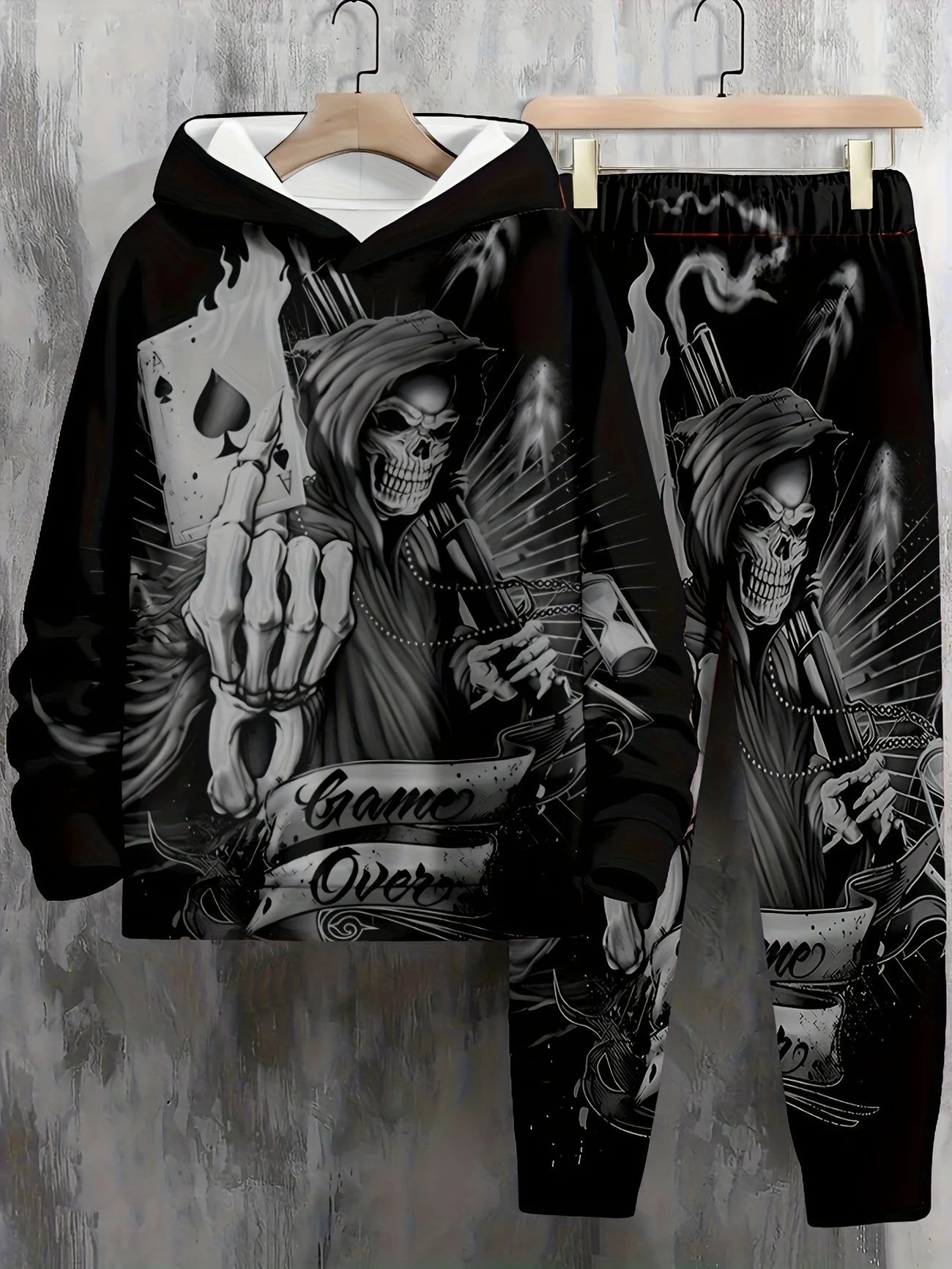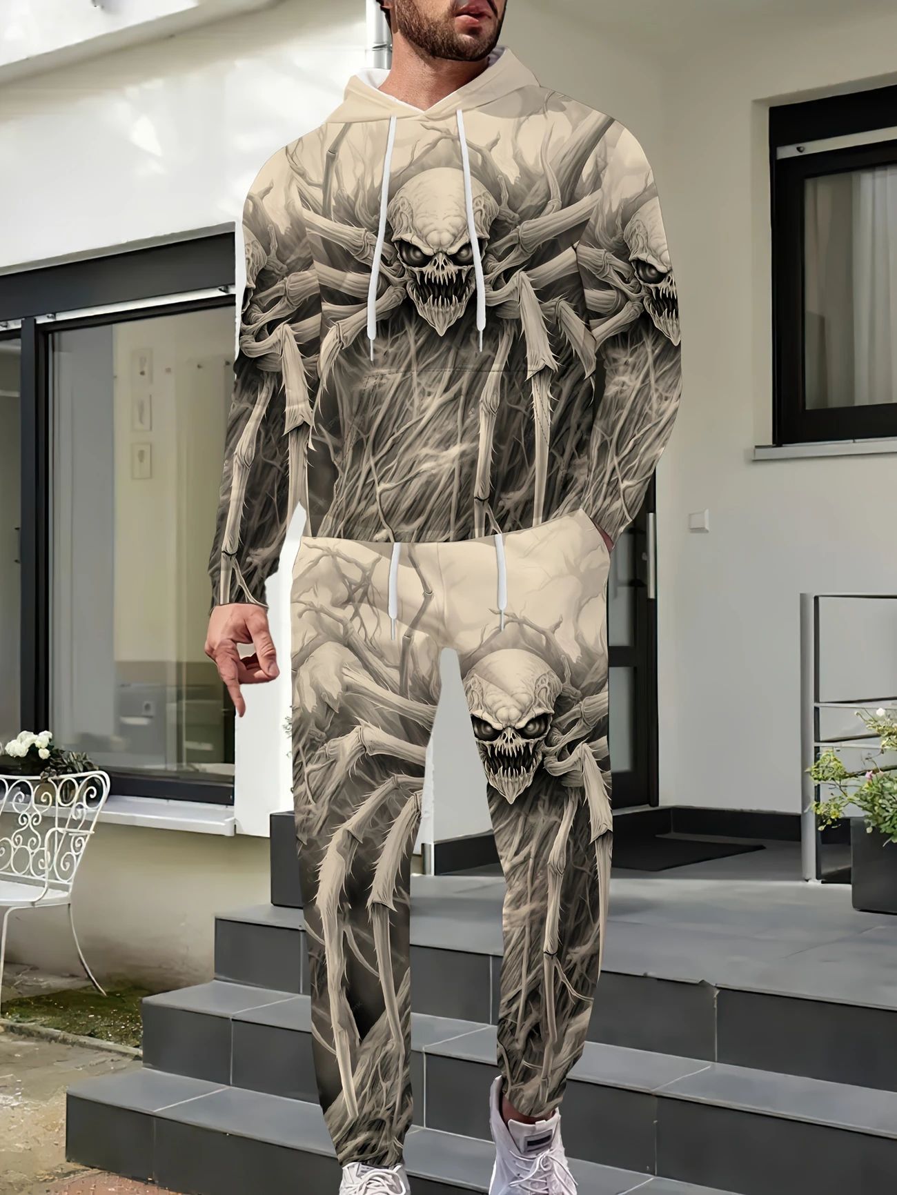 봄과 가을 유럽과 미국 패션 새로운 국경 대외 무역 해골 3d 디지털 인쇄 캐주얼 남성 후드 스웨터 스웨터