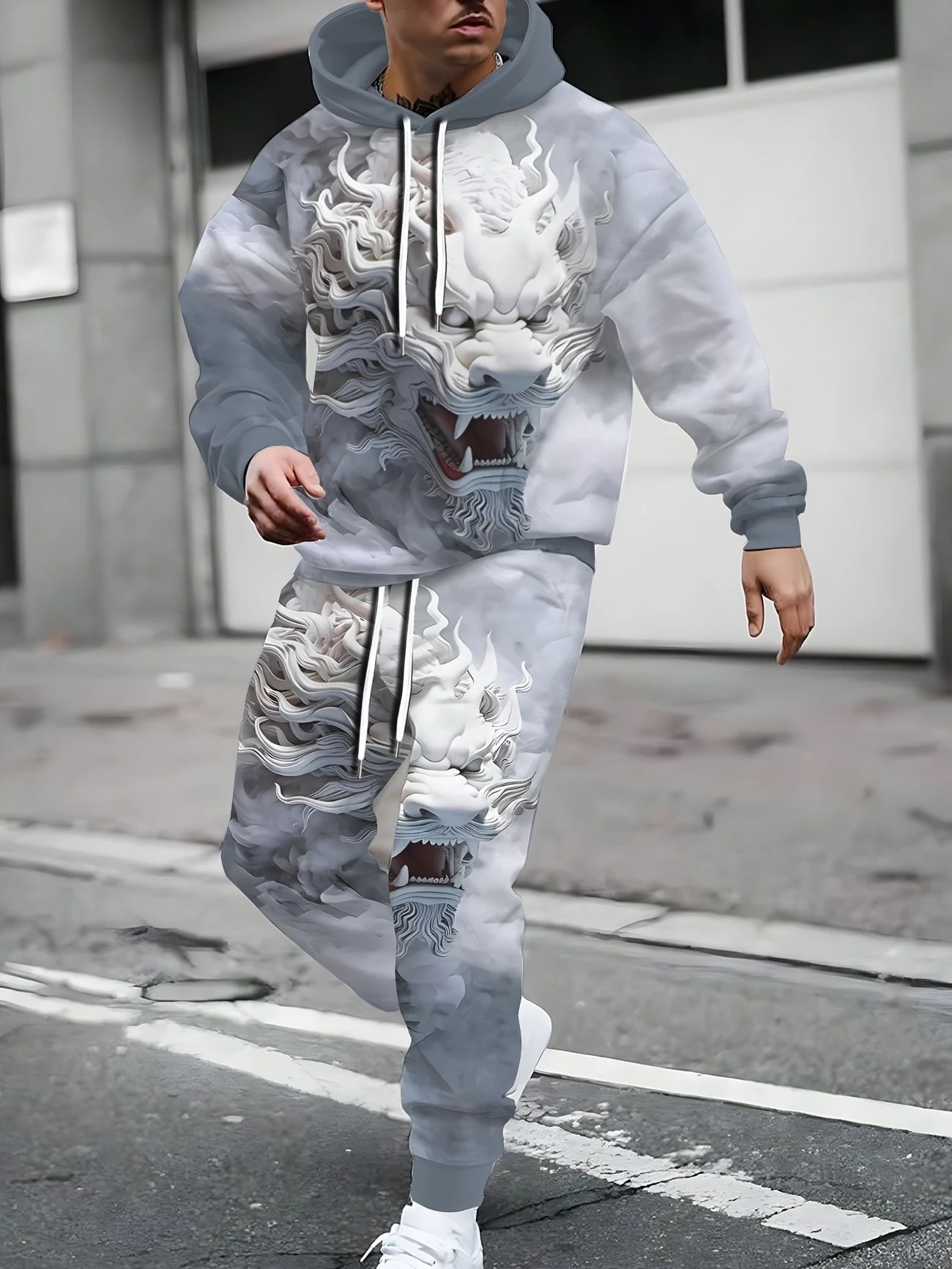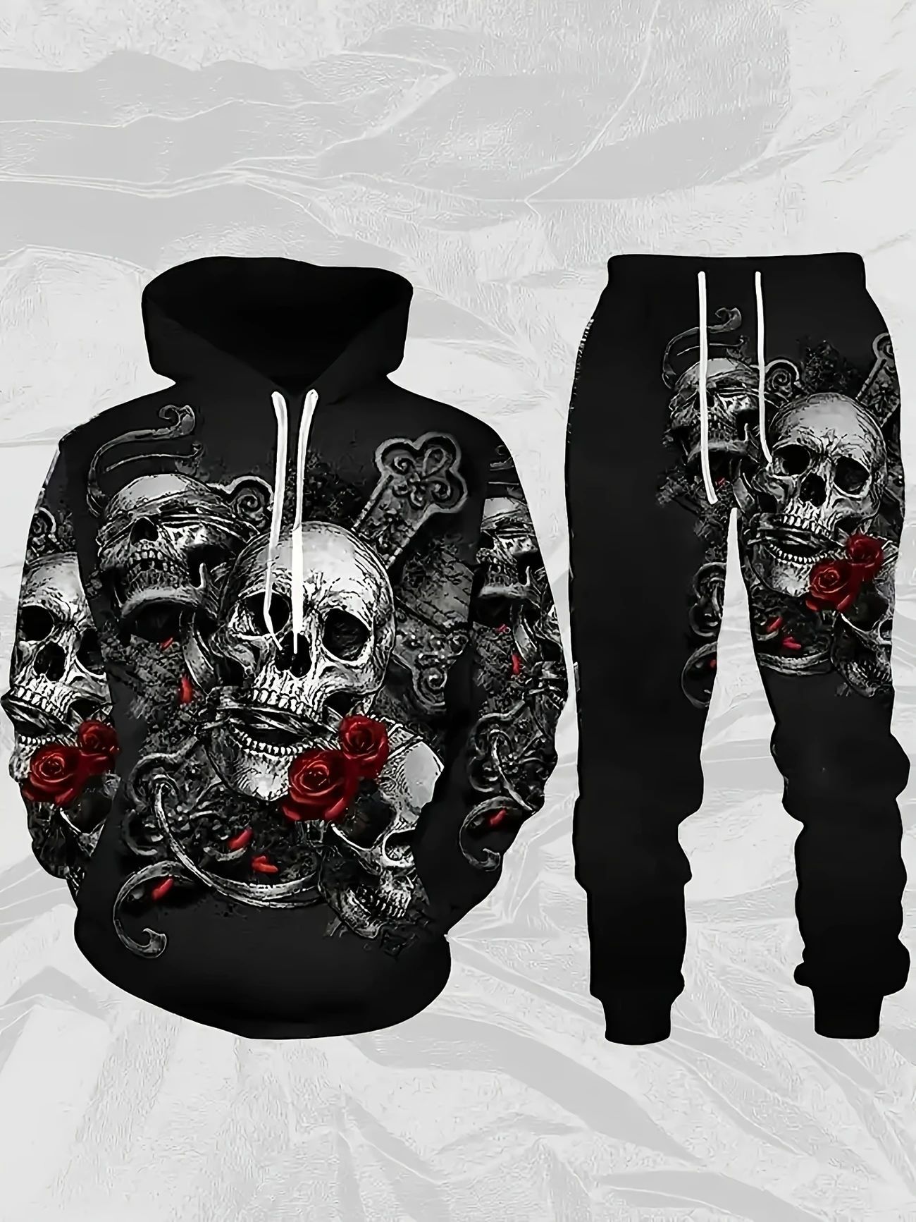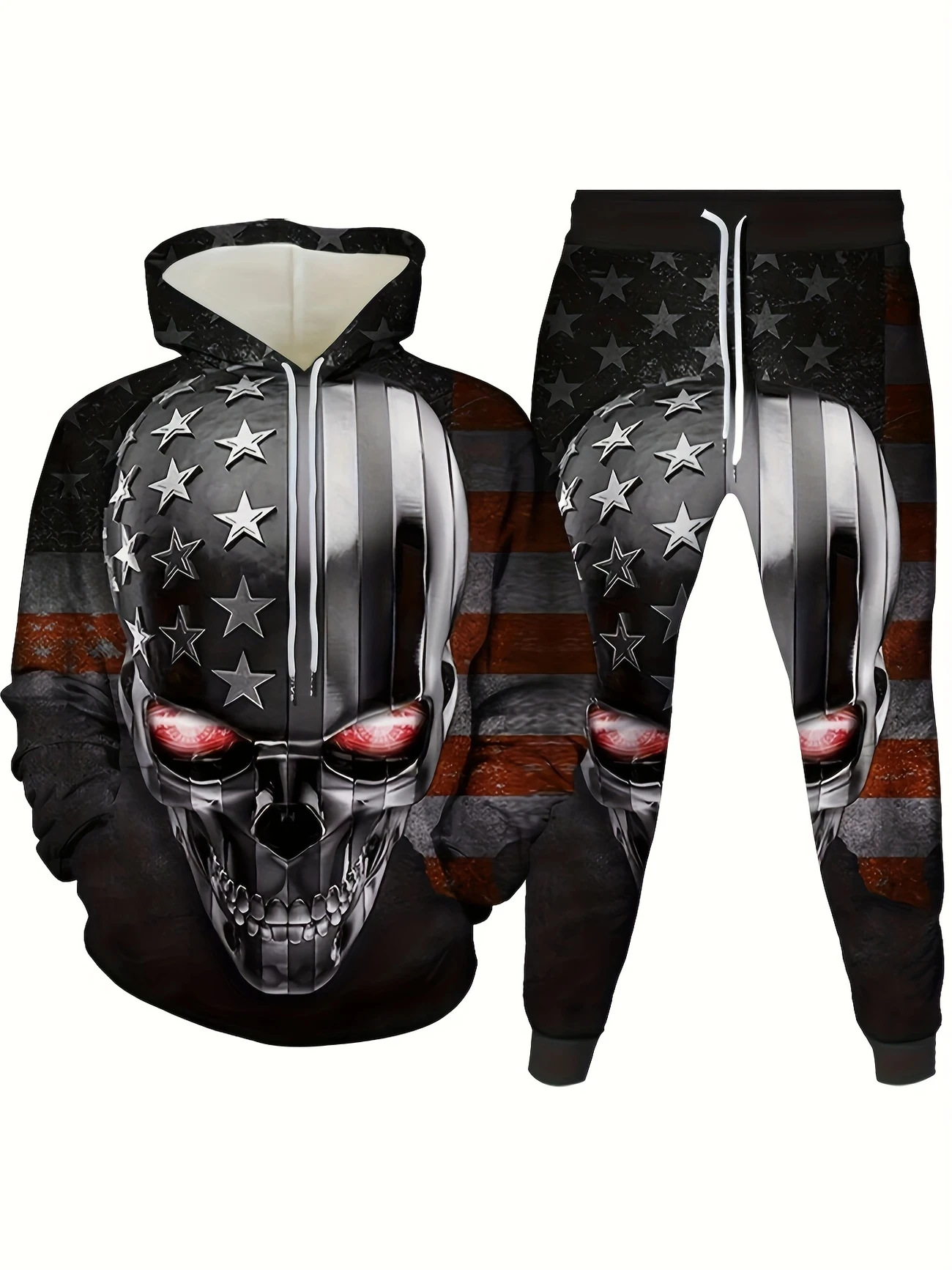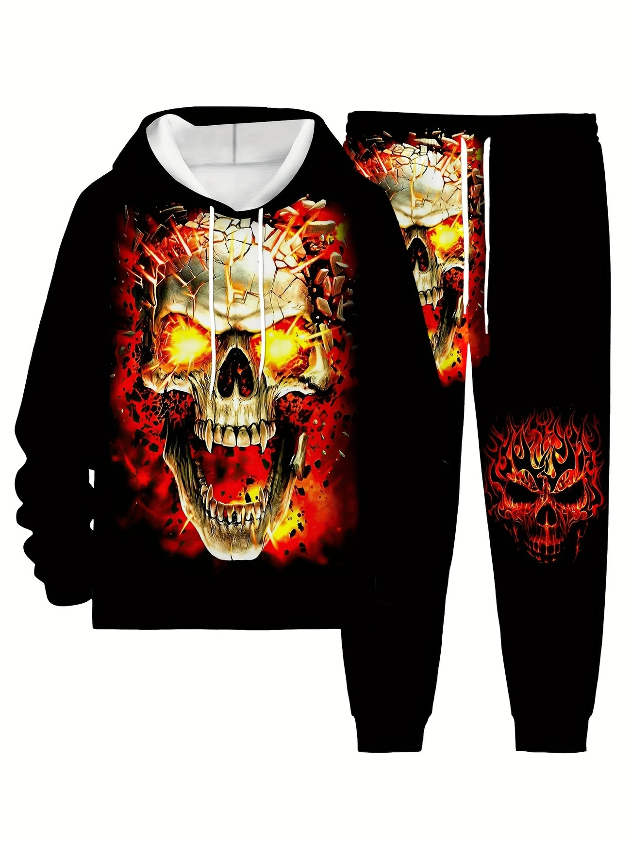 봄과 가을 유럽과 미국 패션 새로운 국경 대외 무역 해골 3d 디지털 인쇄 캐주얼 남성 후드 스웨터 스웨터