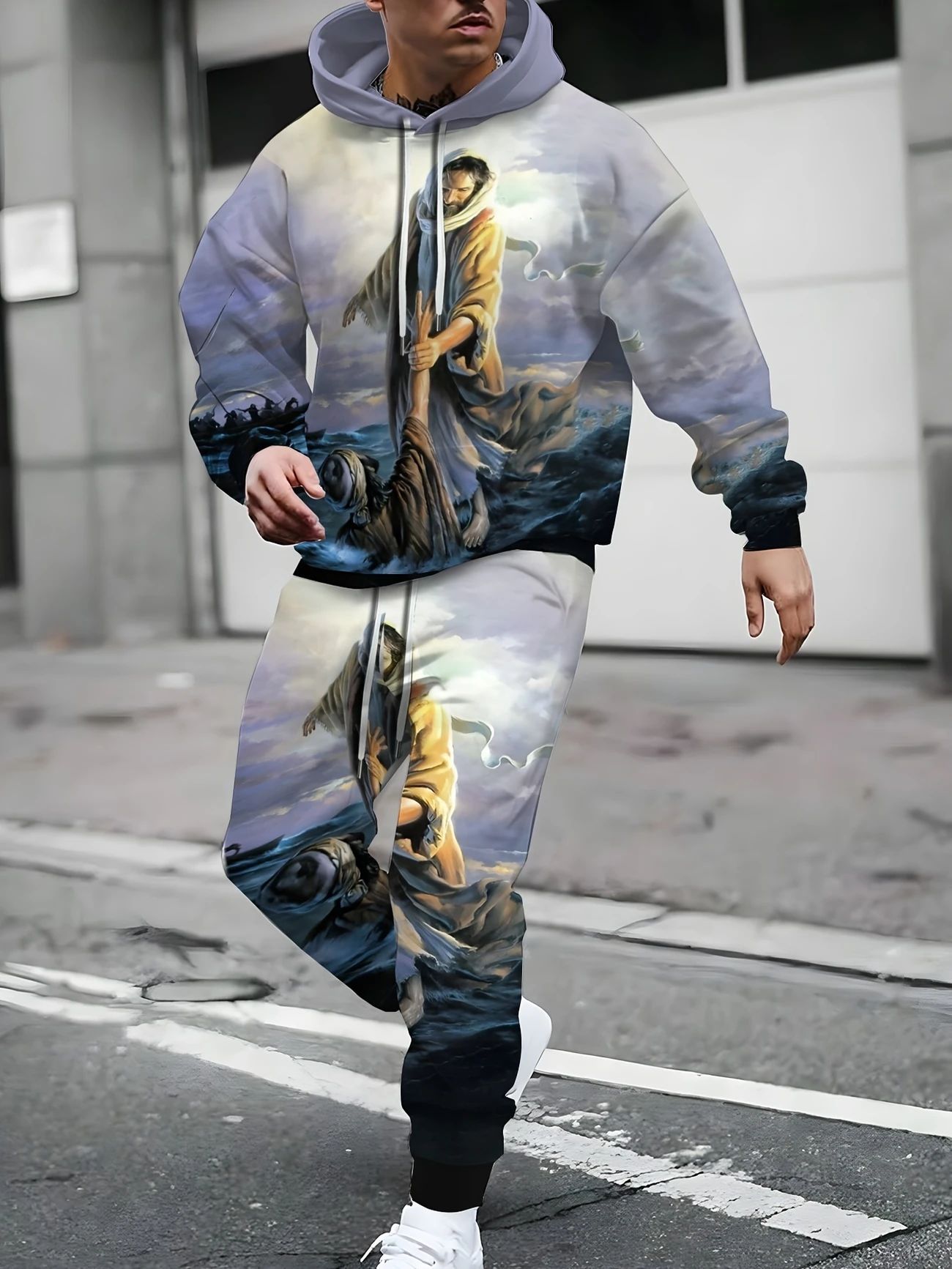 봄과 가을 유럽과 미국 패션 새로운 국경 대외 무역 해골 3d 디지털 인쇄 캐주얼 남성 후드 스웨터 스웨터스토어 가기