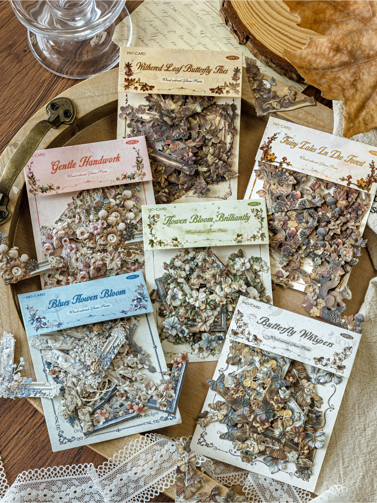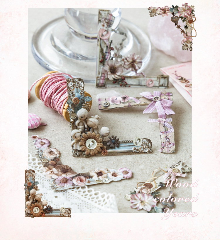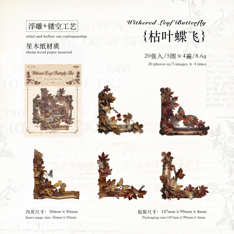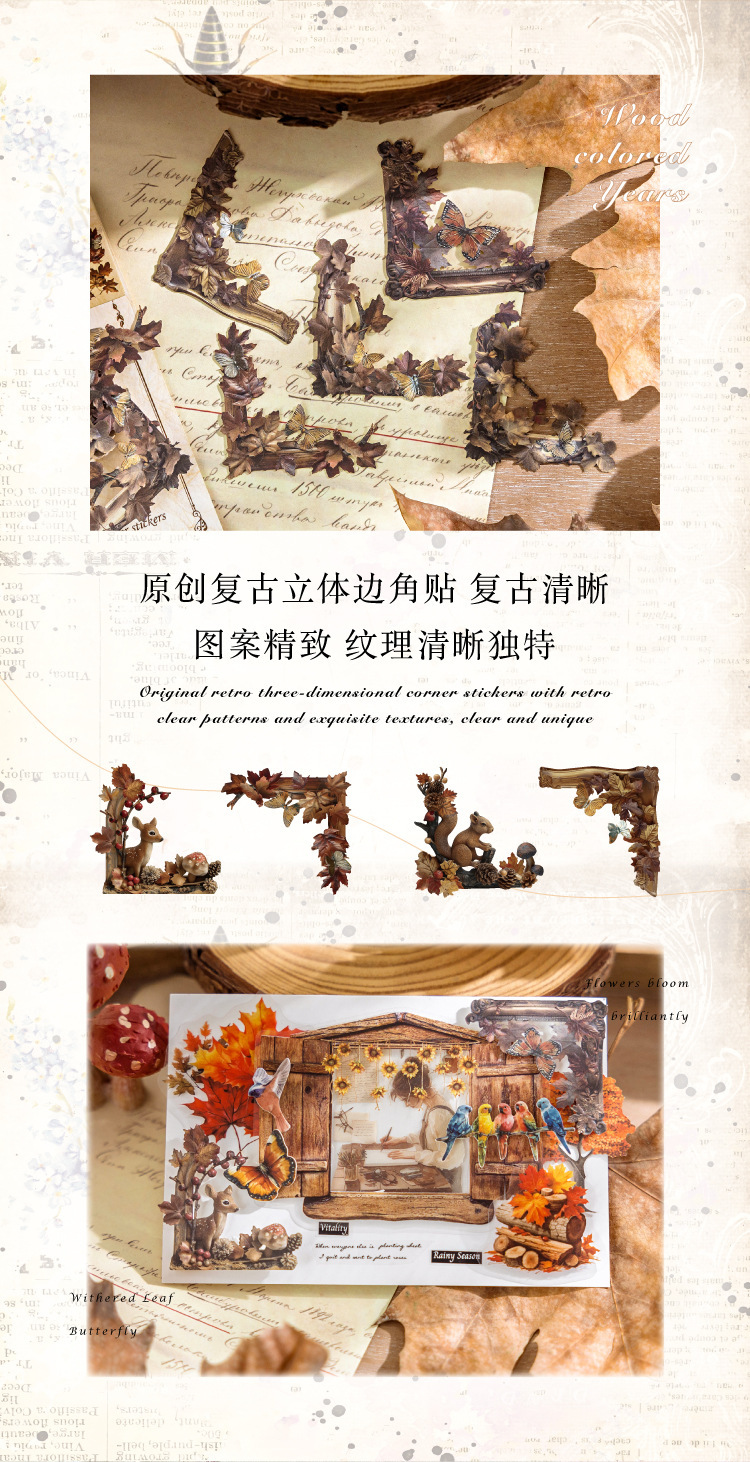 모 잉크 중공 릴리프 사이드 코너 스틱 우드 컬러 년 시리즈 복고풍 소재 손 계정 밸리 뷰티 DIY 장식 콜라주
