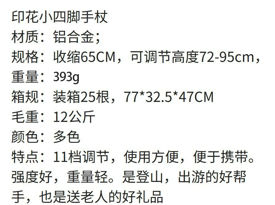새로운 야외 인쇄 워킹 스틱 폴딩 워킹 스틱 4 작은 다리 개폐식 야외 클라이버 스틱 노인을위한 미끄럼 방지 워킹 스틱