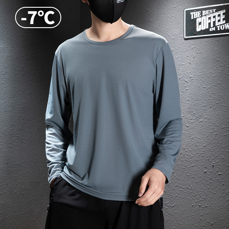 아이스 실크 긴팔 티셔츠 남자의 여름 통기성 빠른 건조 에어컨 옷 얼음 느낌 선 스크린 건설 현장 야외베이스 셔츠 얇은 머리