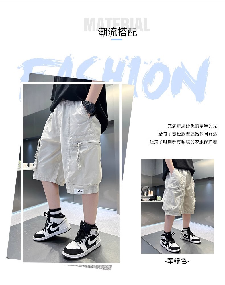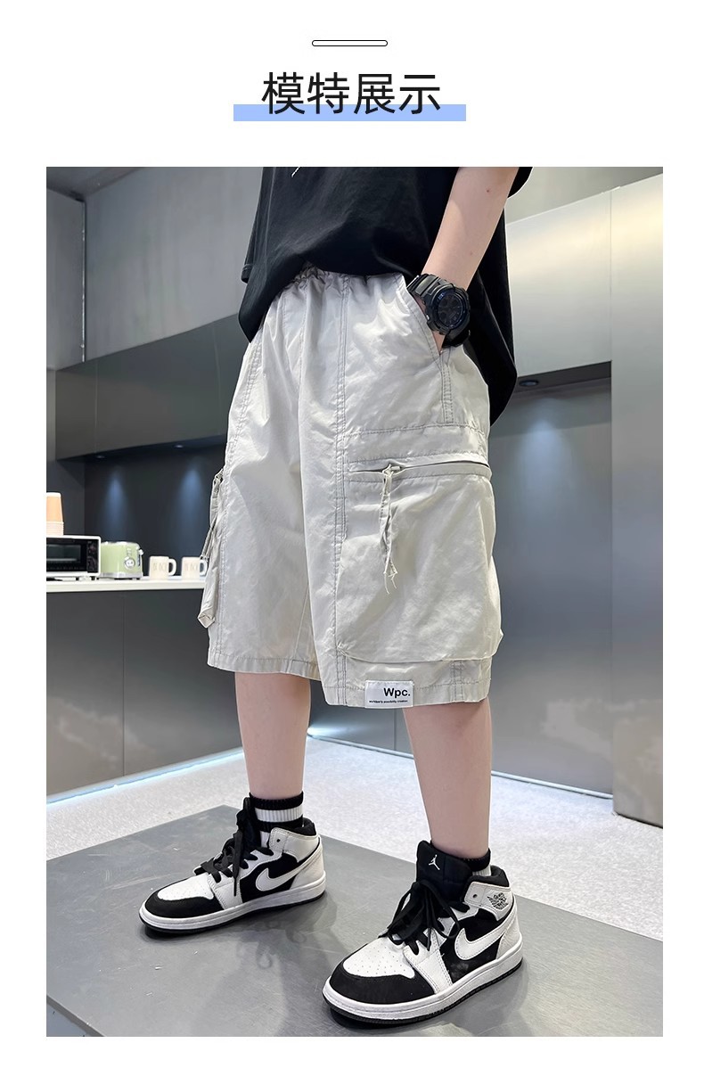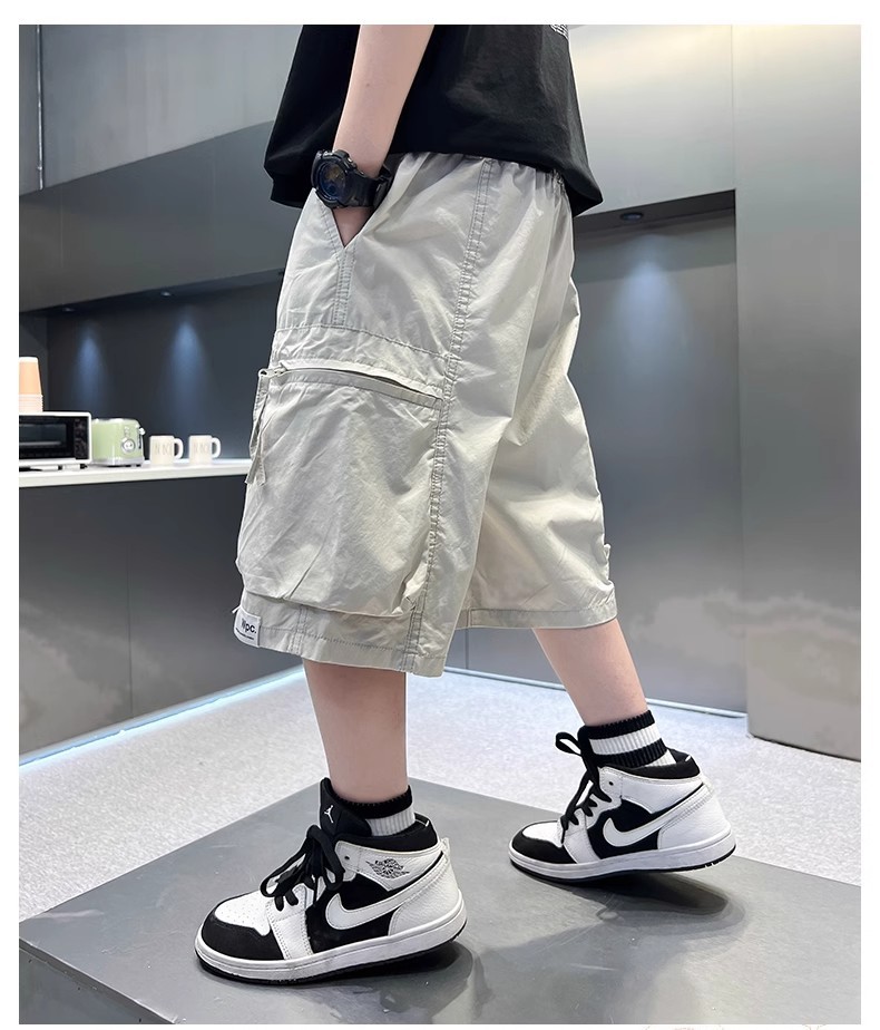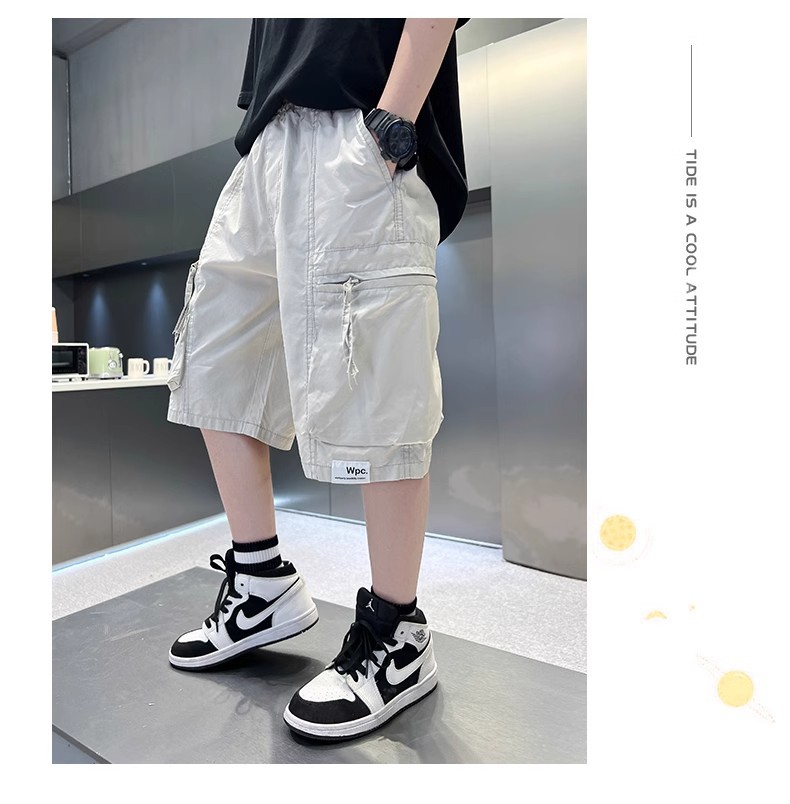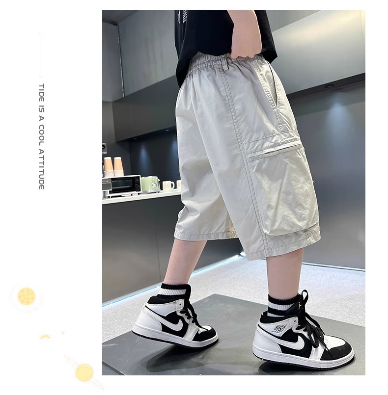 소년 캐주얼 작업복 5 점 바지 새로운 어린이 여름 얇은 여름 착용 소년 거리 튀김 외복 반바지스토어 가기