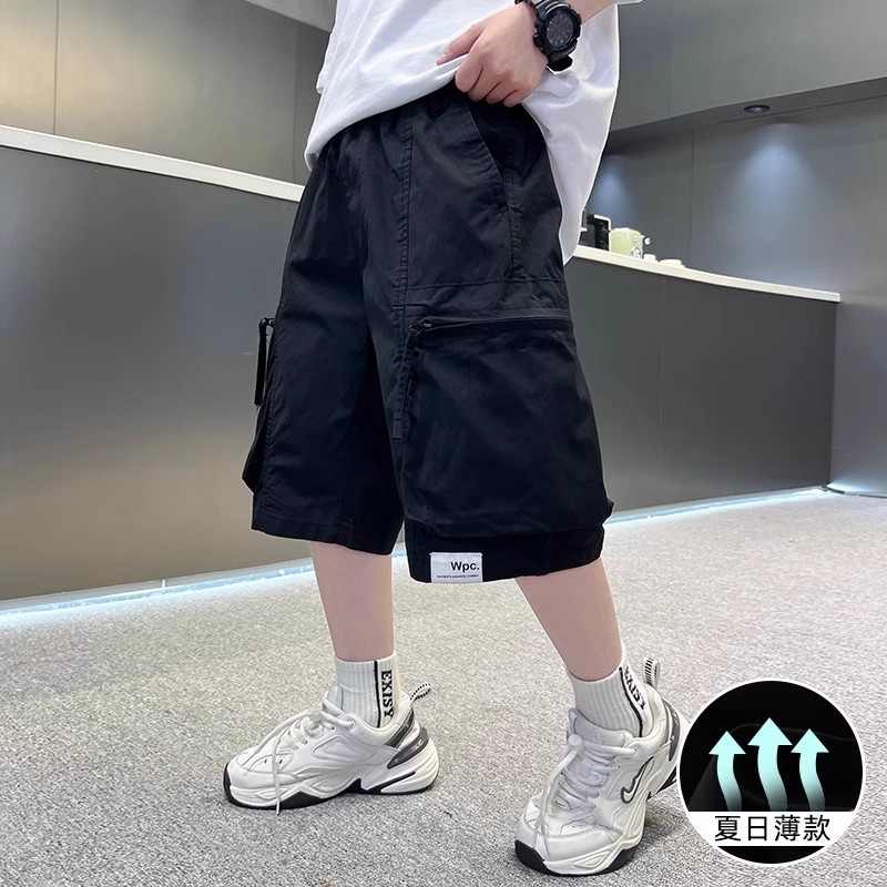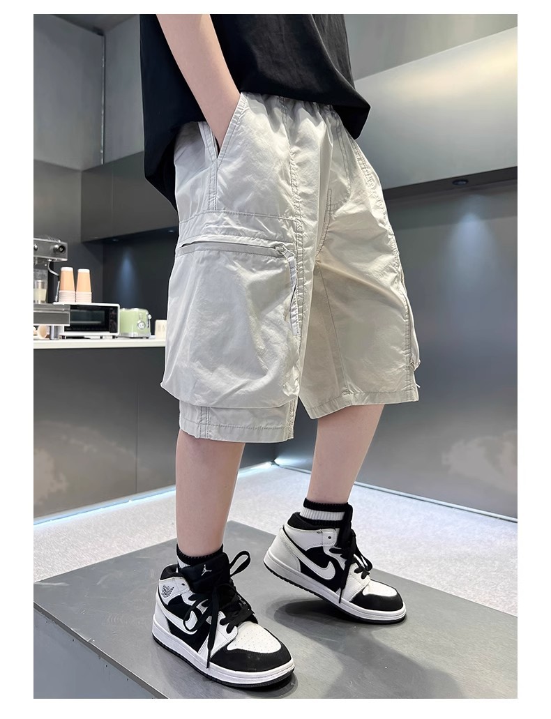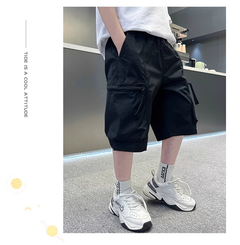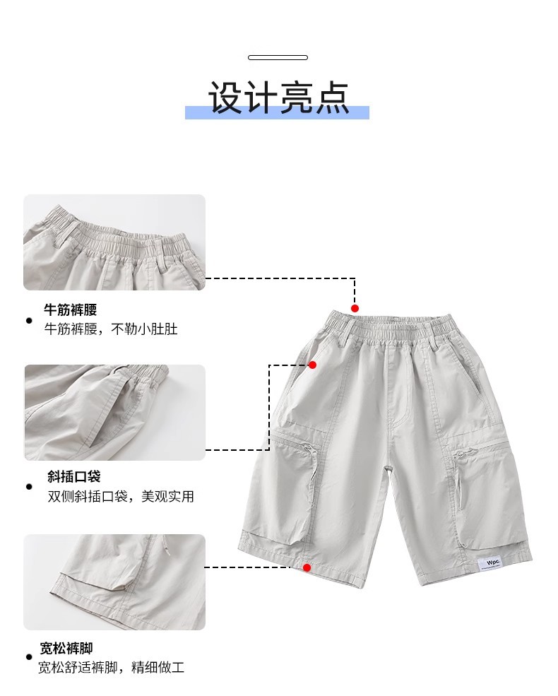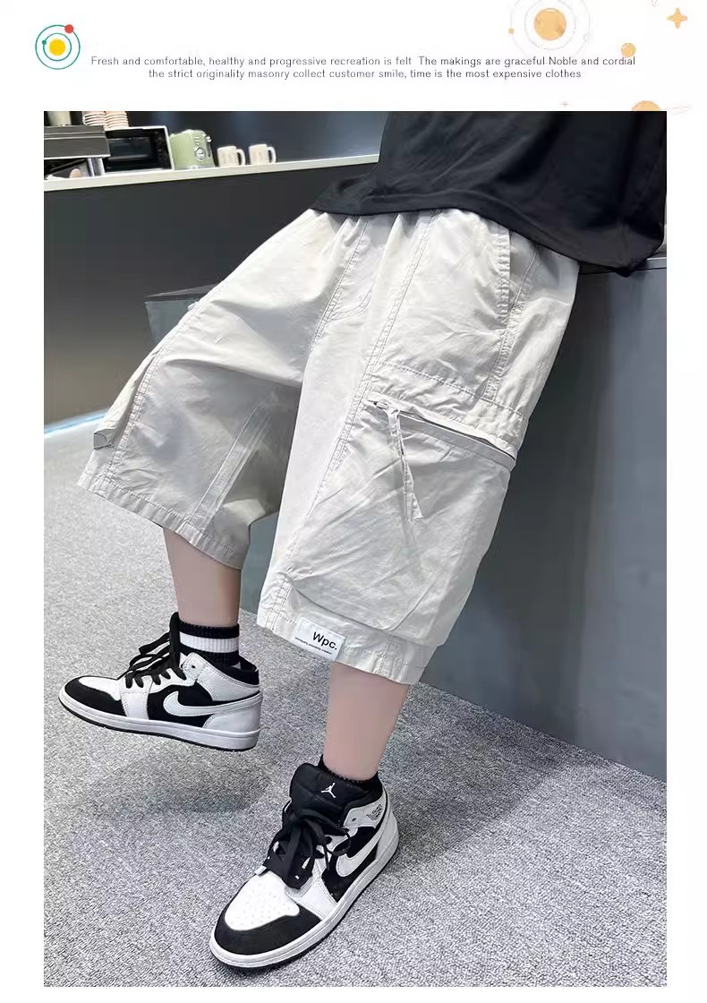 소년 캐주얼 작업복 5 점 바지 새로운 어린이 여름 얇은 여름 착용 소년 거리 튀김 외복 반바지스토어 가기