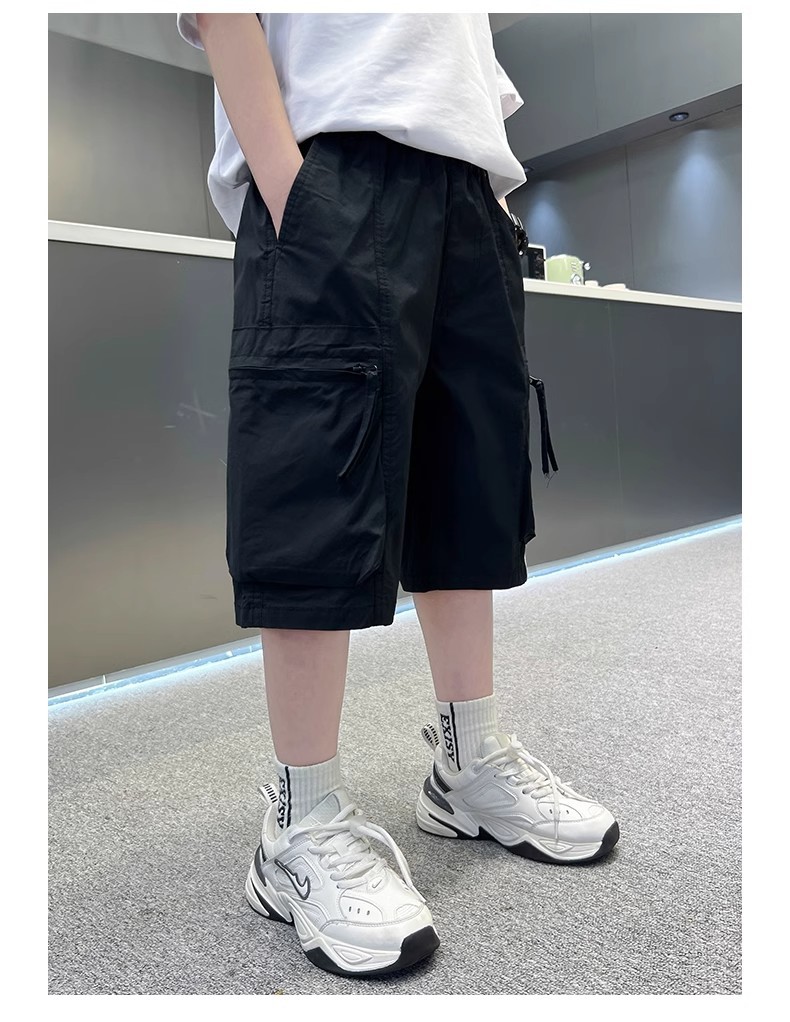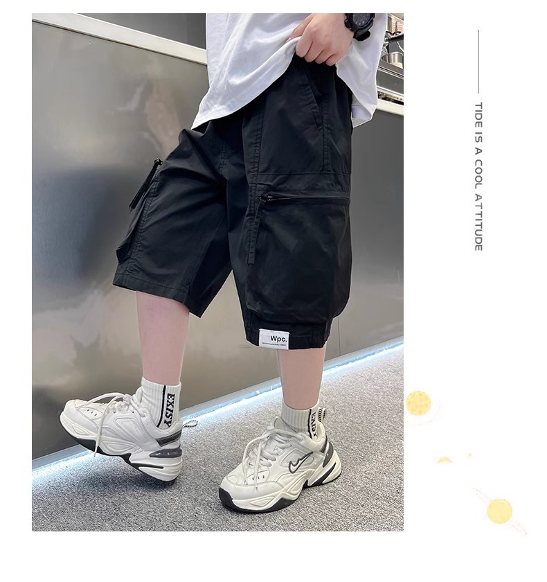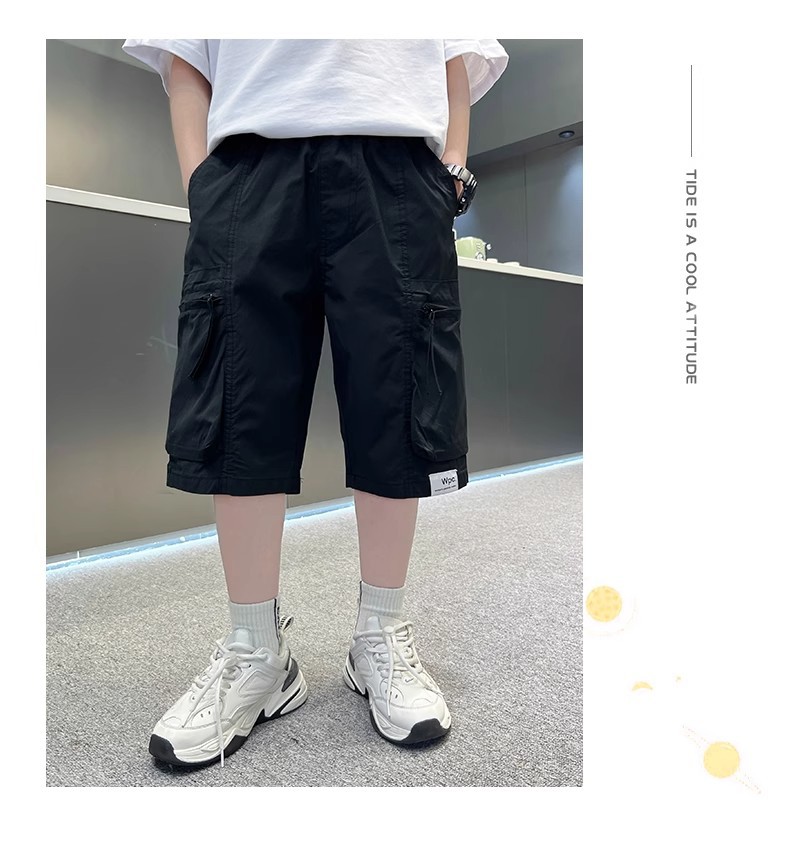 소년 캐주얼 작업복 5 점 바지 새로운 어린이 여름 얇은 여름 착용 소년 거리 튀김 외복 반바지