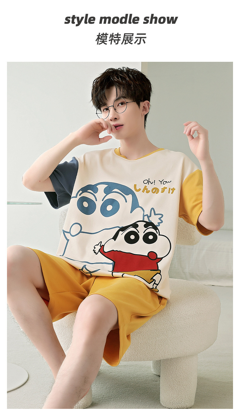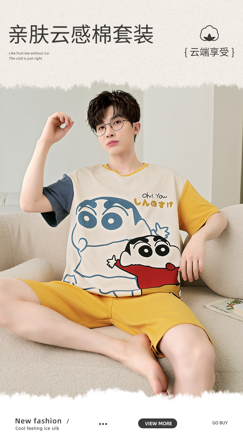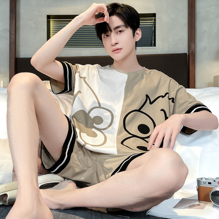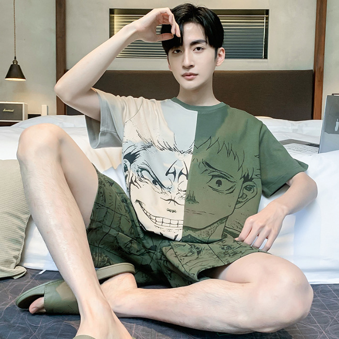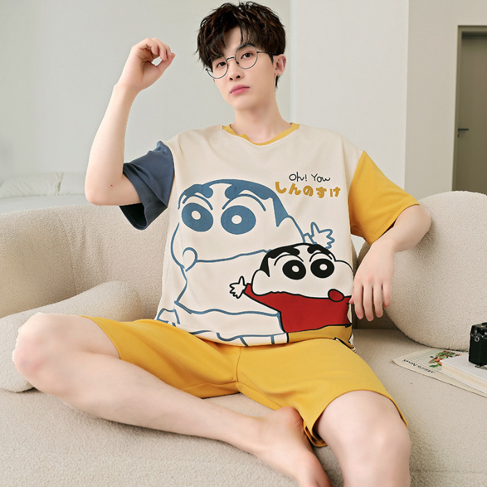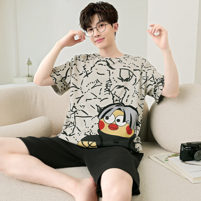 잠옷 새로운 남성 청소년 여름 플러스 사이즈 2024 학생 반팔 반바지 5xl 만화 가정 의류 세트스토어 가기
