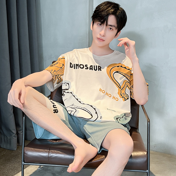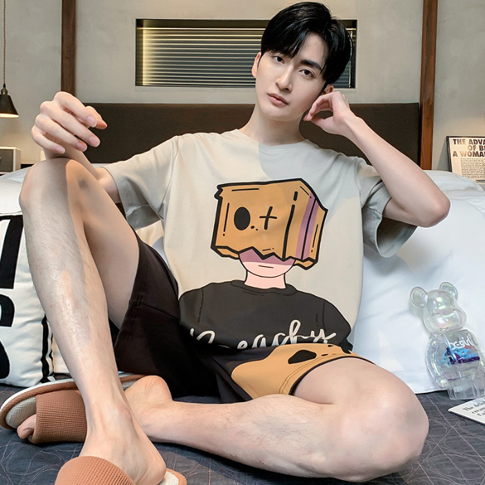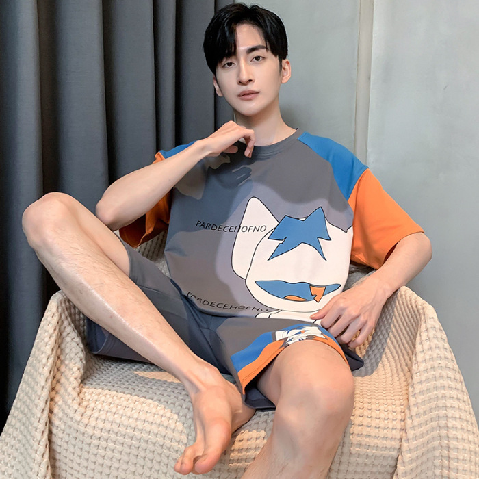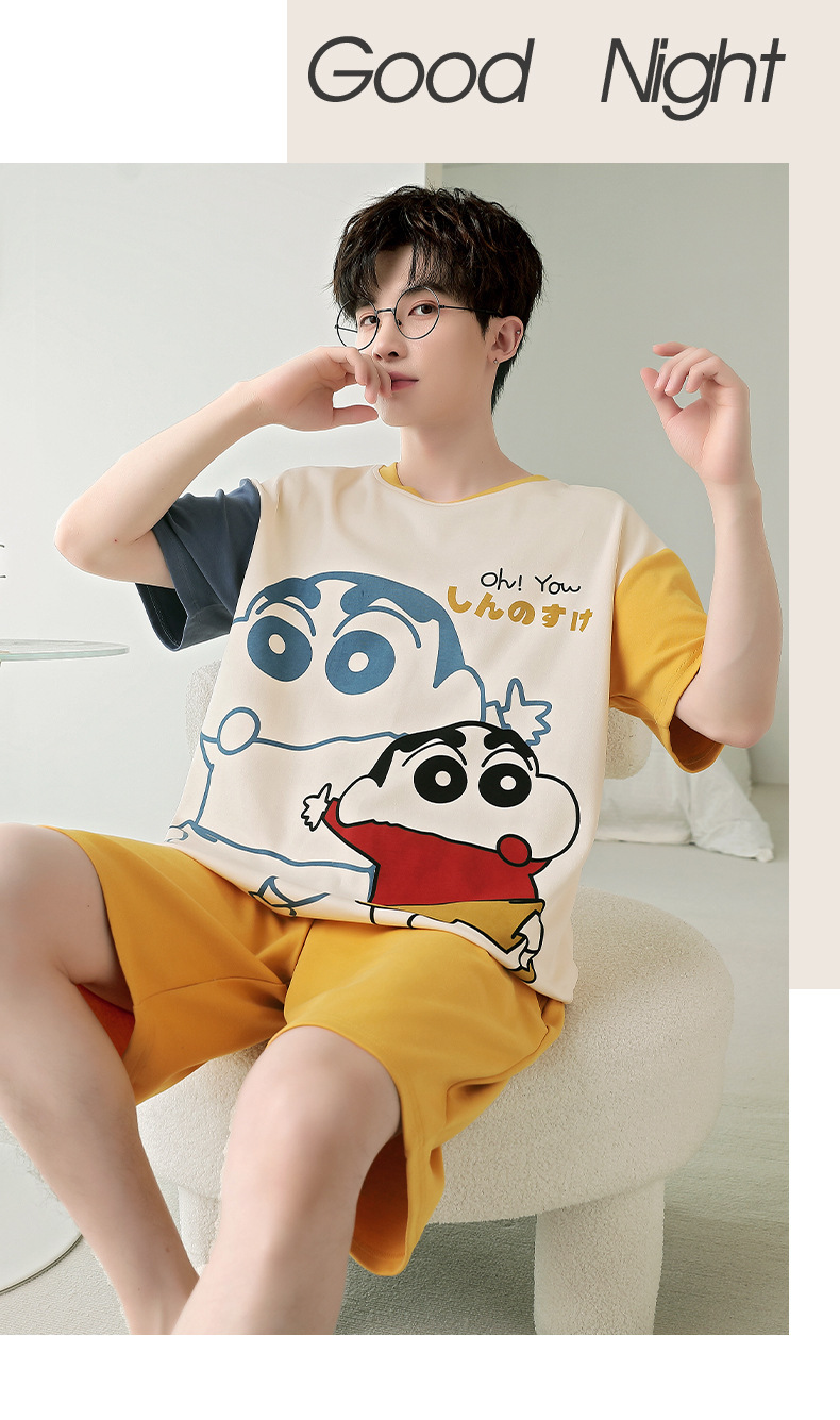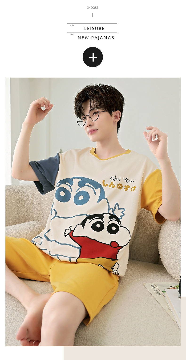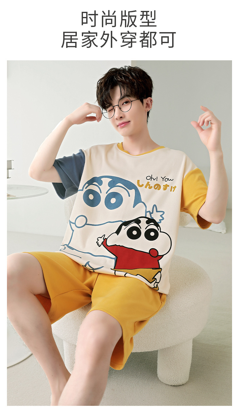 잠옷 새로운 남성 청소년 여름 플러스 사이즈 2024 학생 반팔 반바지 5xl 만화 가정 의류 세트스토어 가기