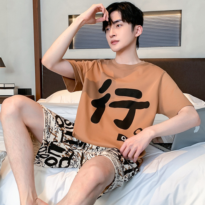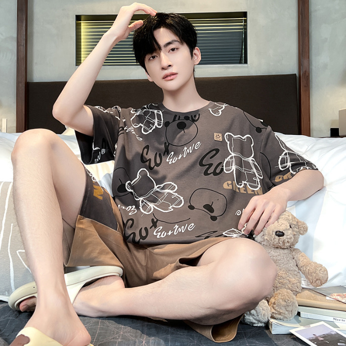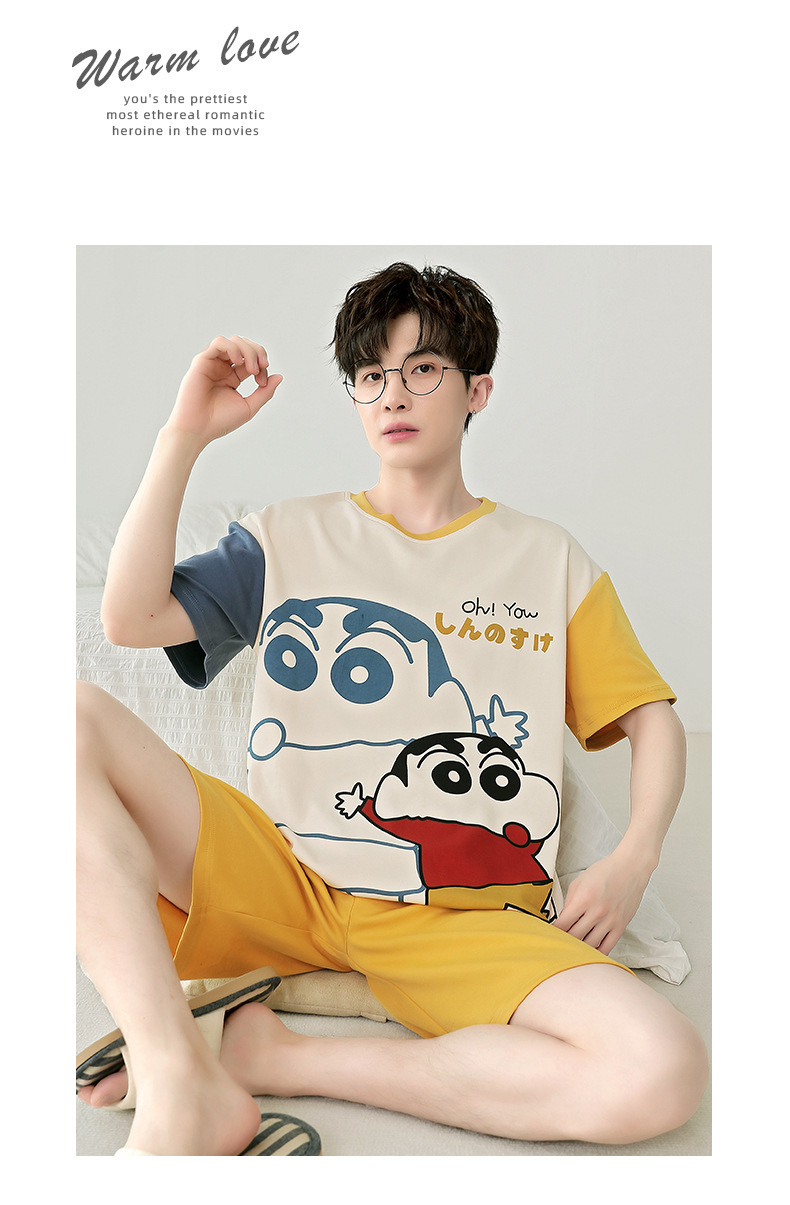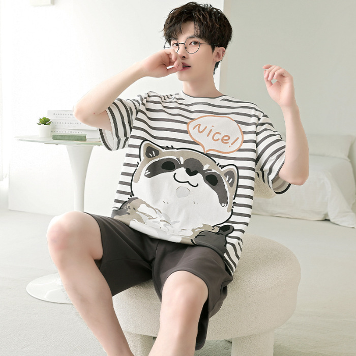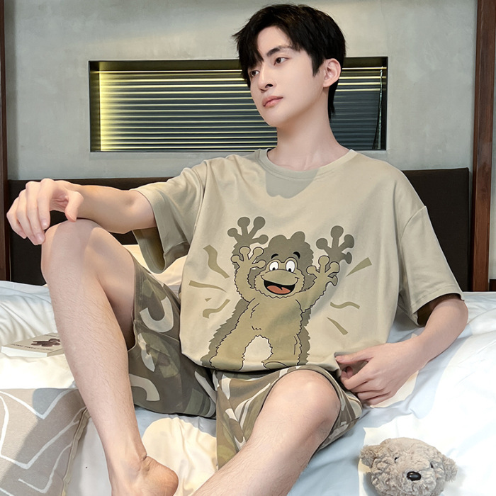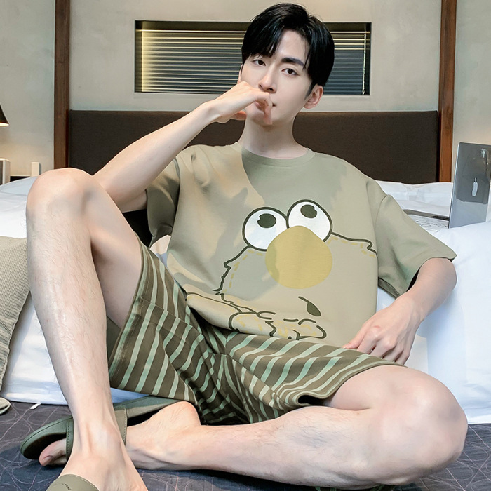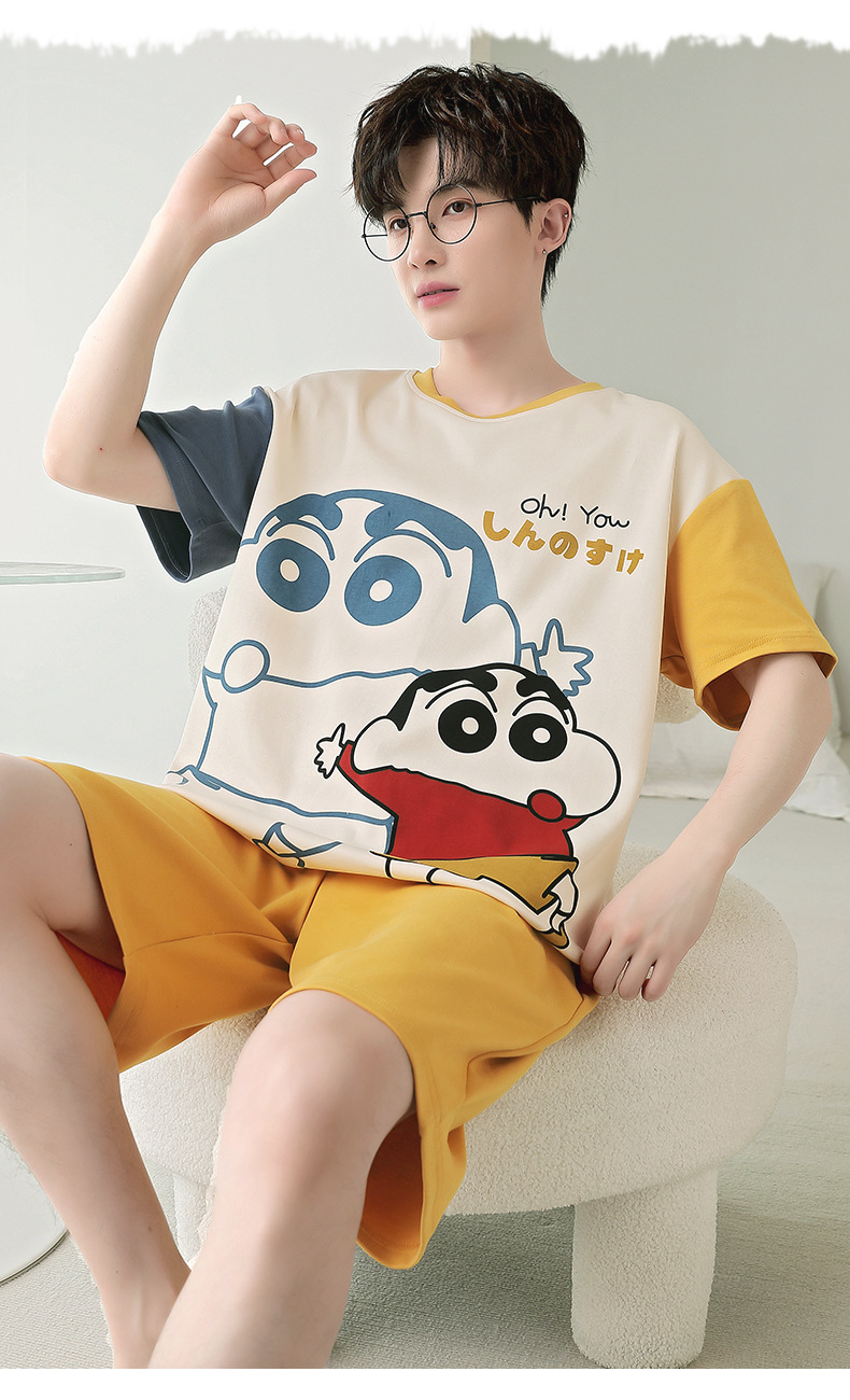 잠옷 새로운 남성 청소년 여름 플러스 사이즈 2024 학생 반팔 반바지 5xl 만화 가정 의류 세트스토어 가기