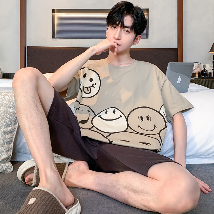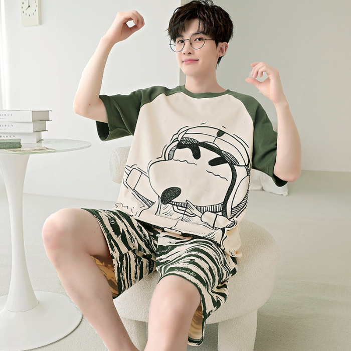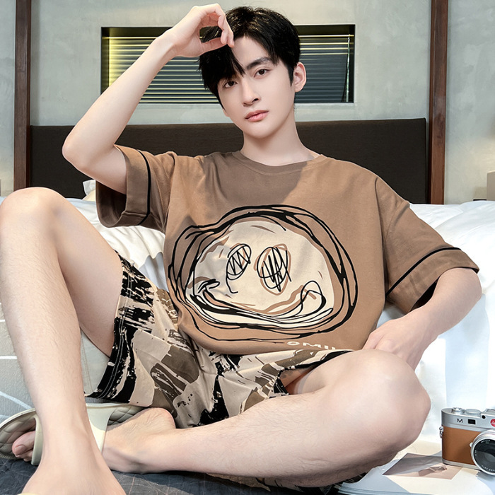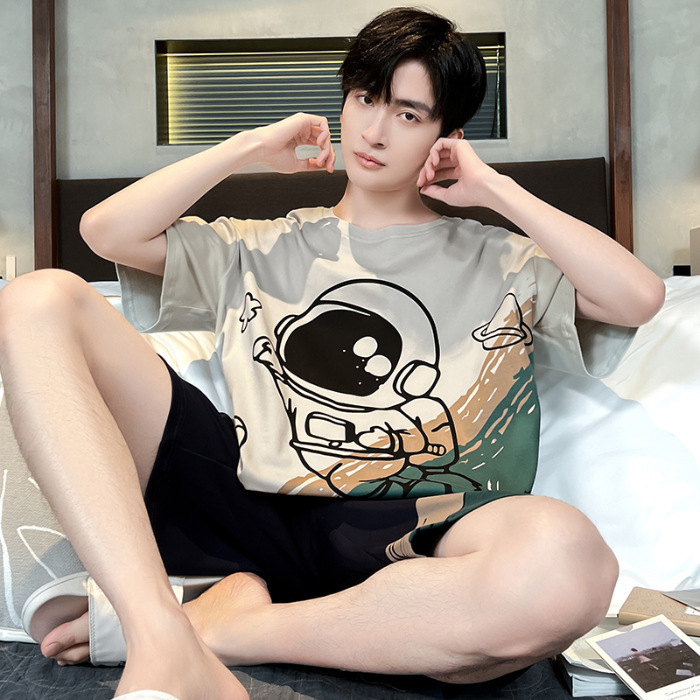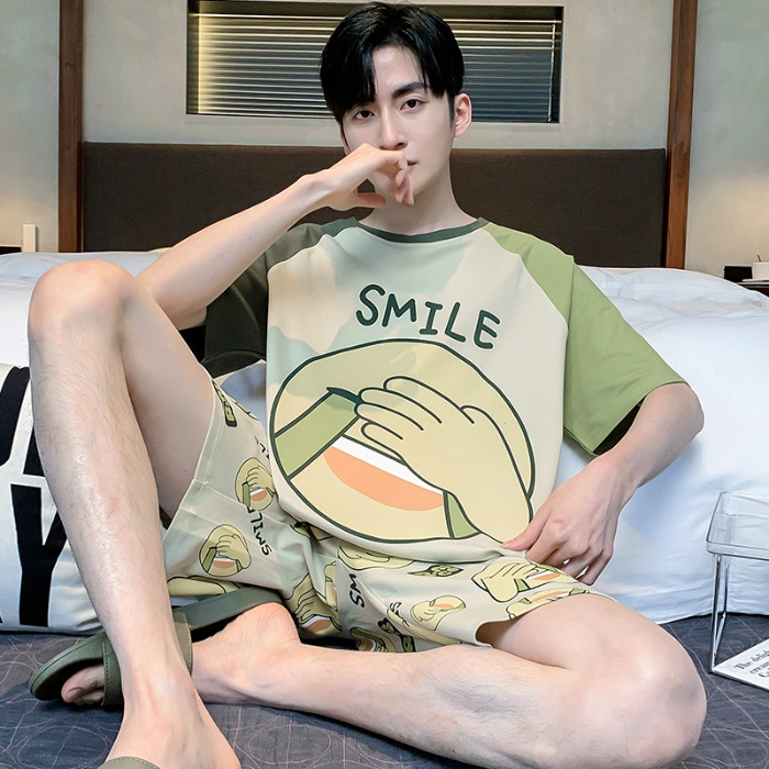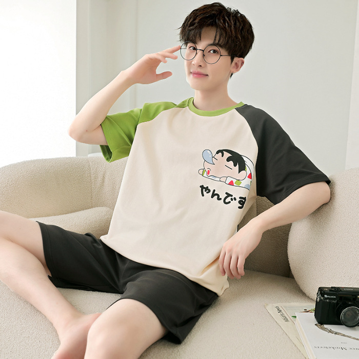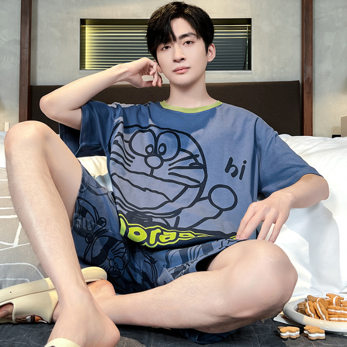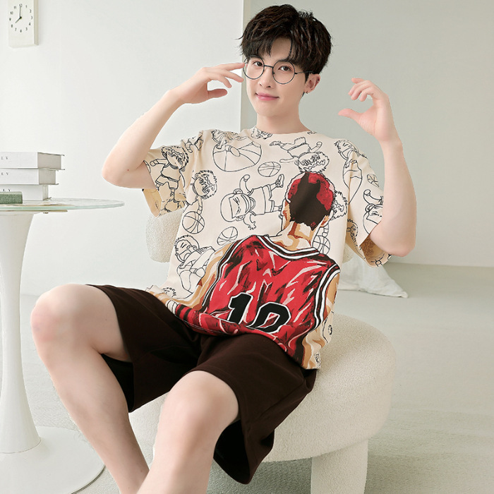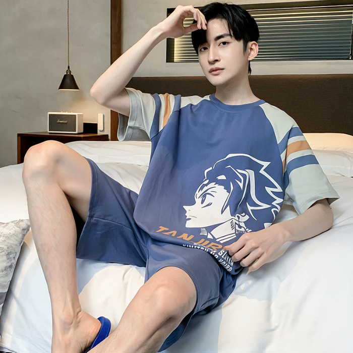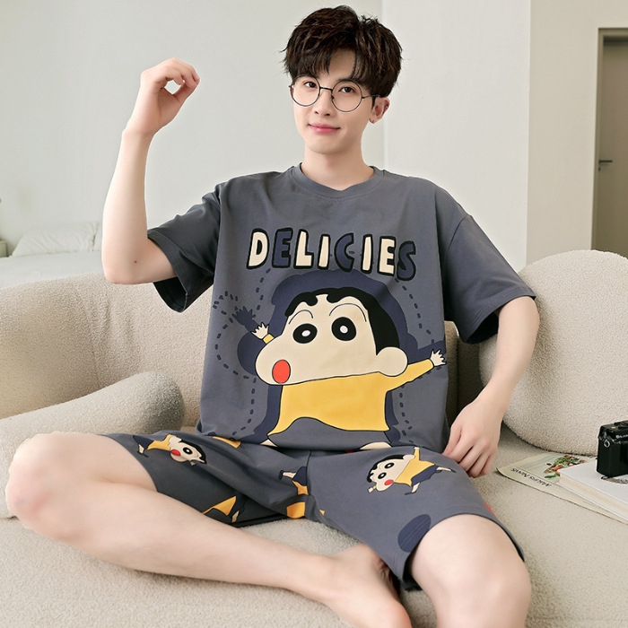 잠옷 새로운 남성 청소년 여름 플러스 사이즈 2024 학생 반팔 반바지 5xl 만화 가정 의류 세트