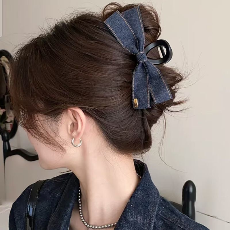 한국 스타일 유행 데님 활 그랩 클립 2025 새로운 하이 엔드 센스 헤어핀 백 헤드 대형 상어 클립 헤어핀스토어 가기