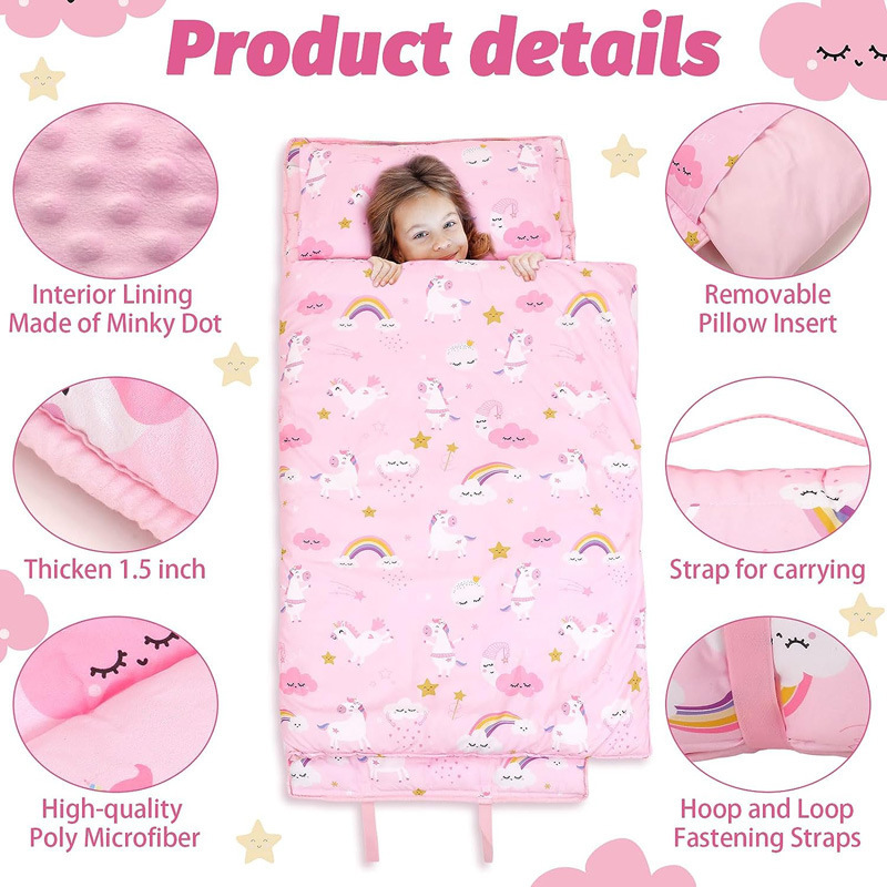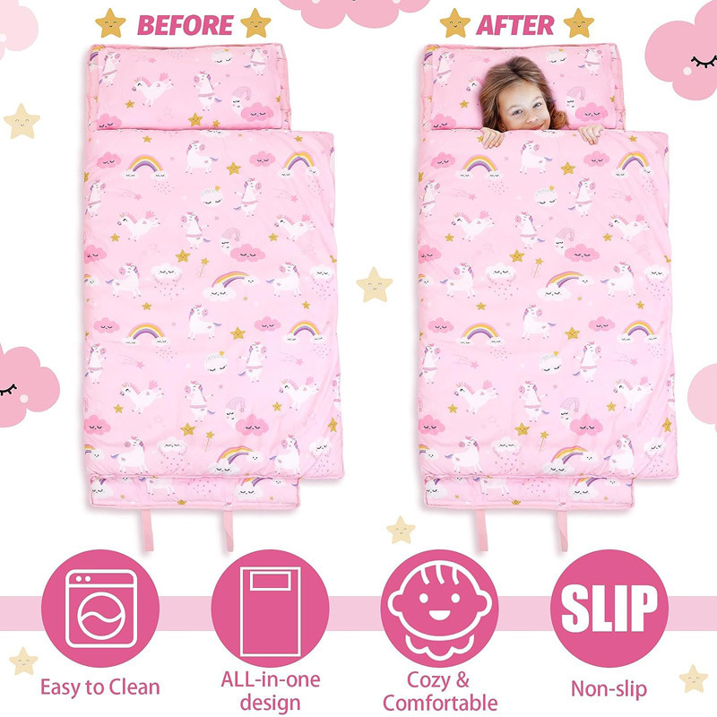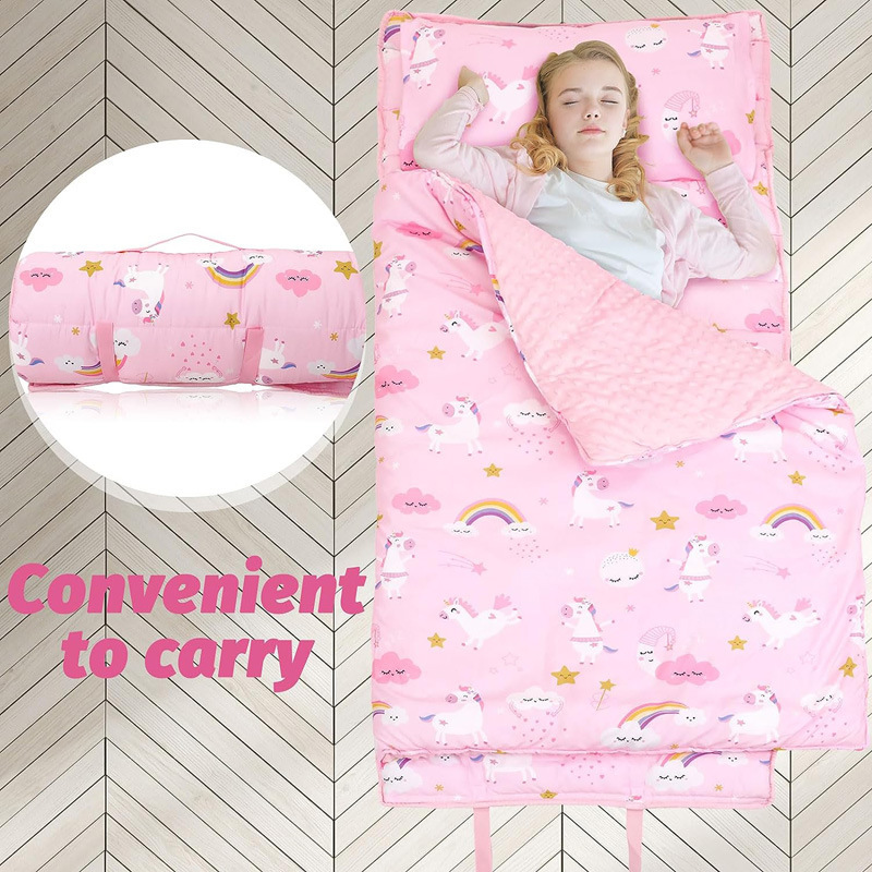 2024 새로운 국경 간 어린이 침낭 핑크 만화 따뜻한 비니 벨벳 잠옷 소녀를위한 두꺼운 따뜻한 안티 킥 이불스토어 가기
