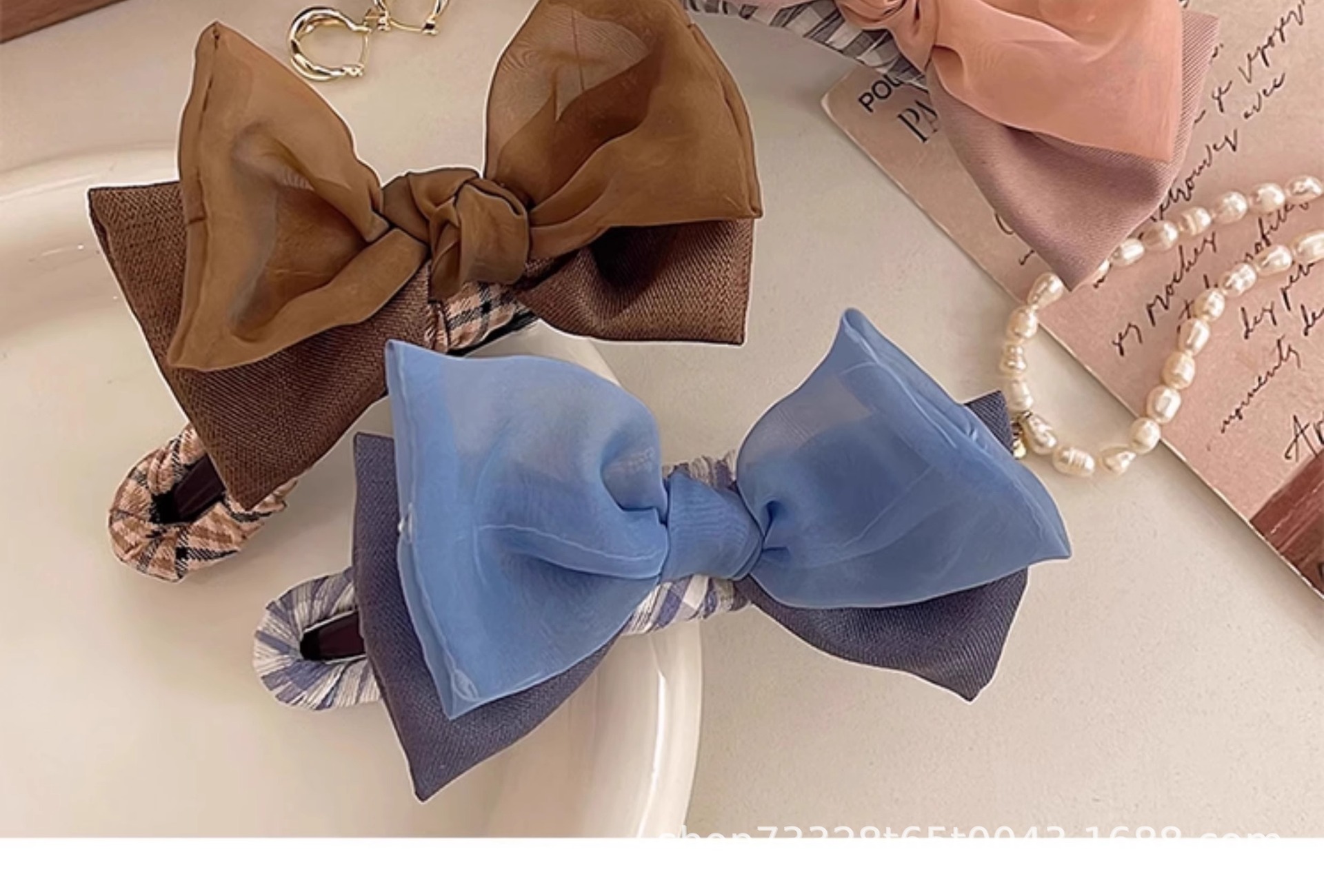 고급 센스 더블 레이어 빅 보우 덕빌 클립 2025 새로운 여성 대형 한국 스타일 달콤한 머리 머리 클립