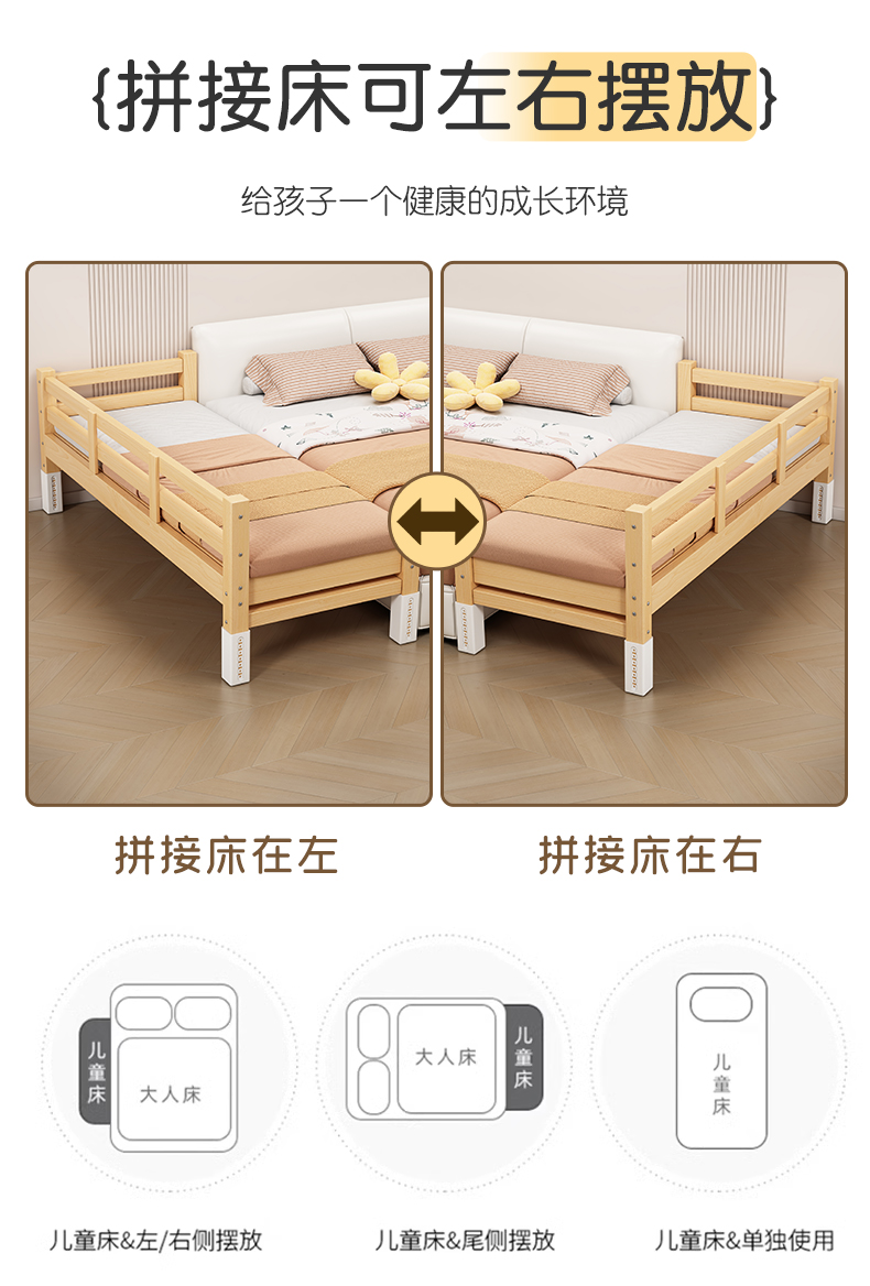 성인을위한 침대 넓어진 접합 침대는 큰 침대 접합 신을 접합하는 모든 단단한 나무 어린이 침대 침대 침대 확장을 잘 수 있습니다 ^ A