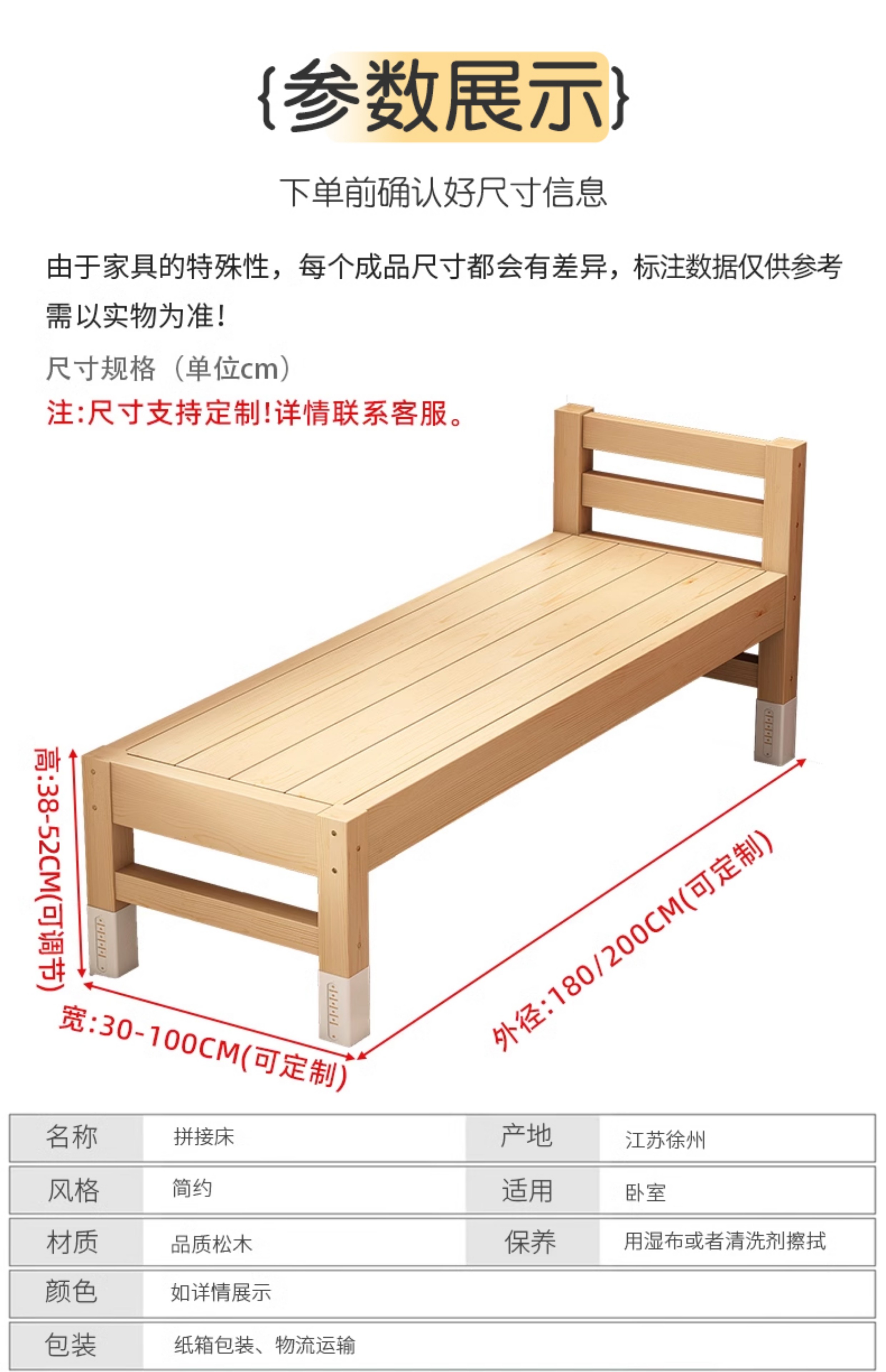 성인을위한 침대 넓어진 접합 침대는 큰 침대 접합 신을 접합하는 모든 단단한 나무 어린이 침대 침대 침대 확장을 잘 수 있습니다 ^ A스토어 가기