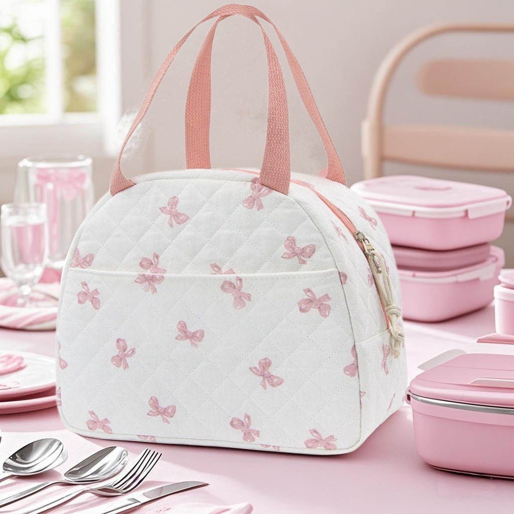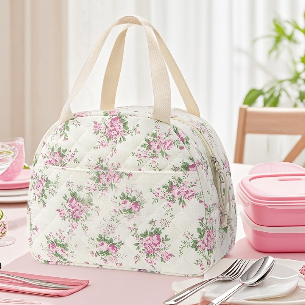 새로운 국경 꽃 활 체리 패턴 퀼트 도시락 가방 점심 가방 대용량 알루미늄 절연 가방 면화스토어 가기
