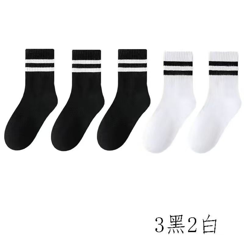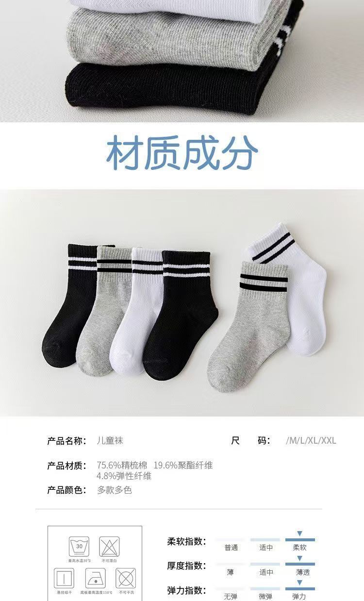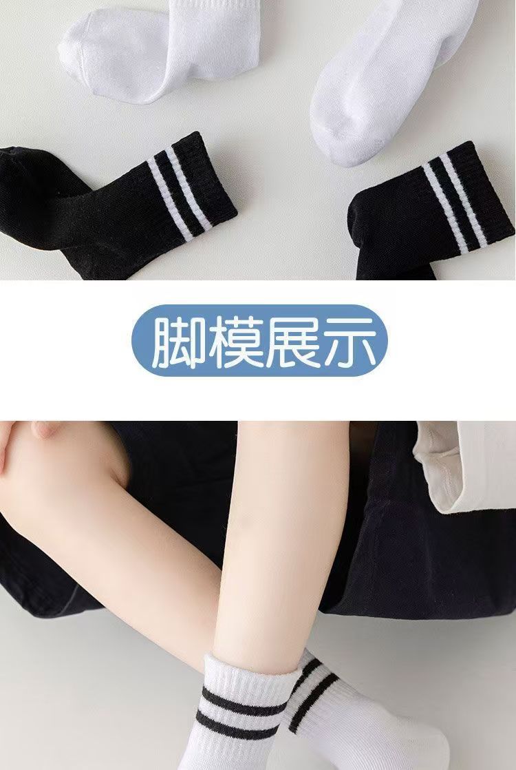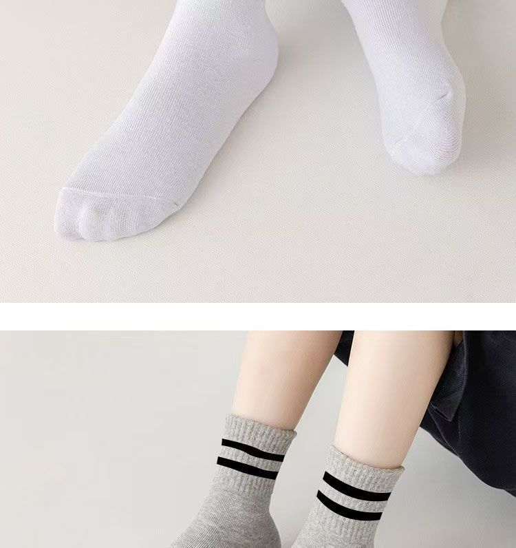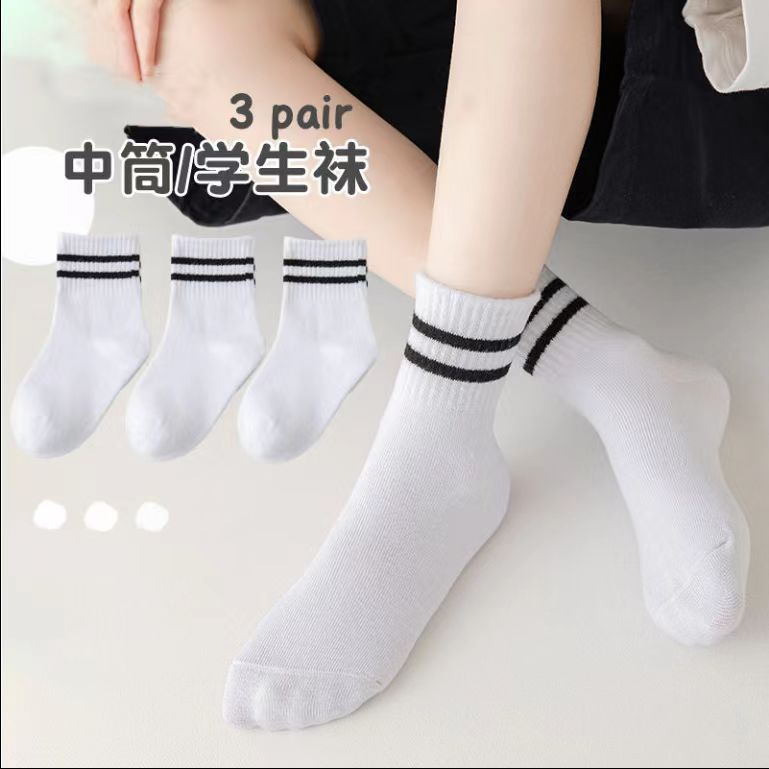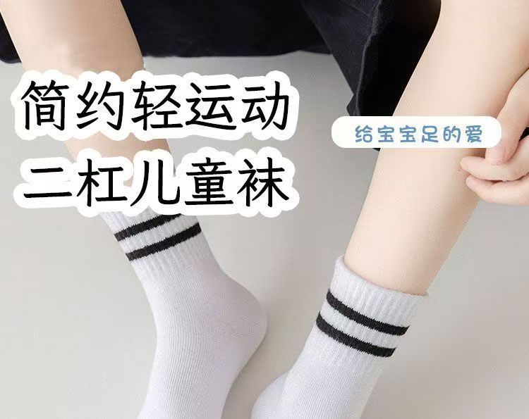 2025 여름 어린이 양말 흑백 2 바 어린이 양말 미드 튜브 스포츠 니트 간단한 올 매치 한국식 스타킹스토어 가기