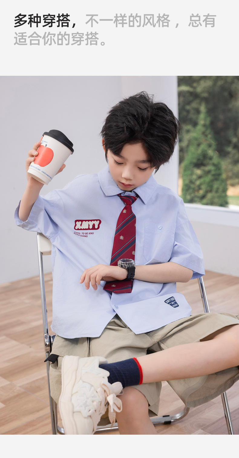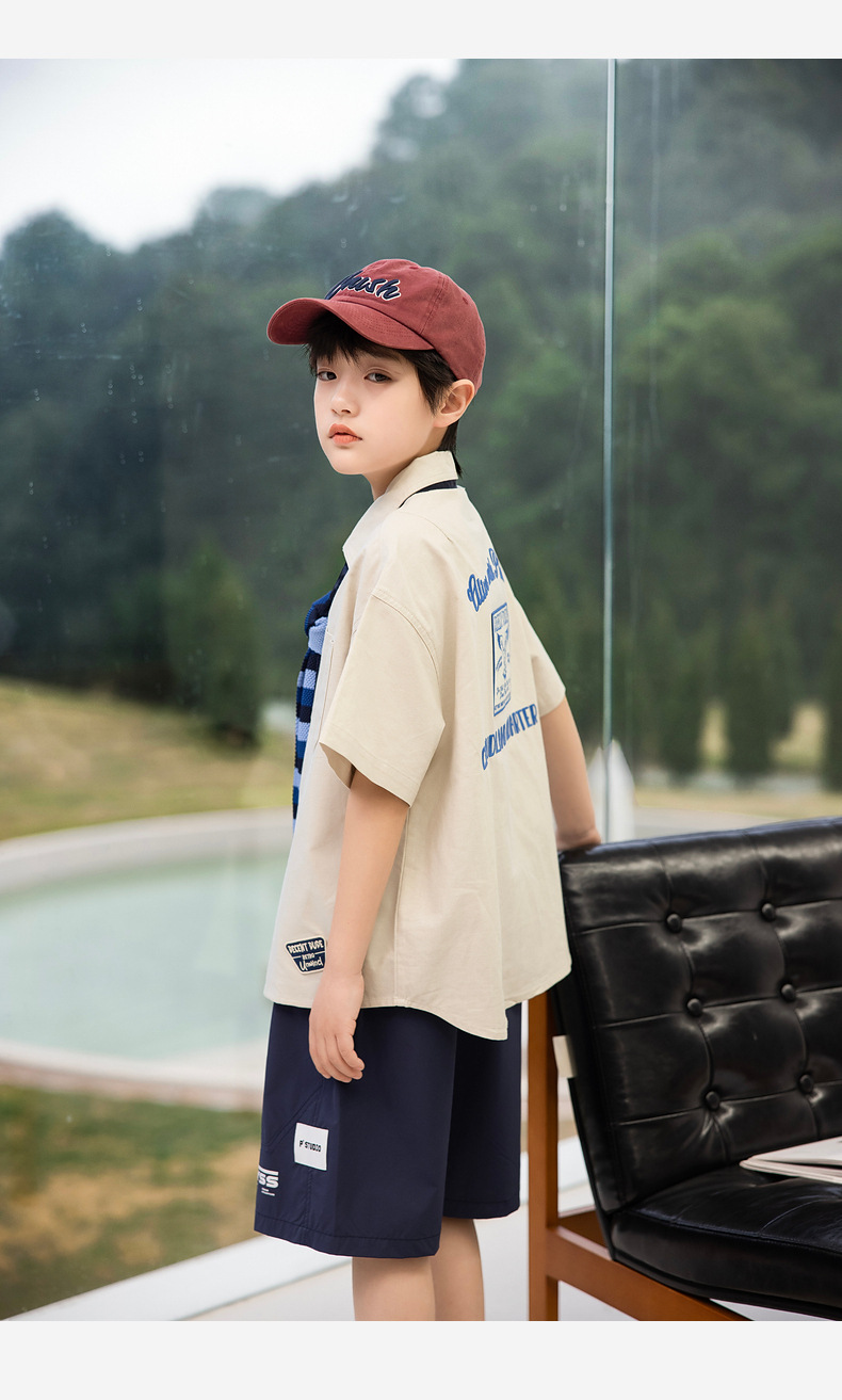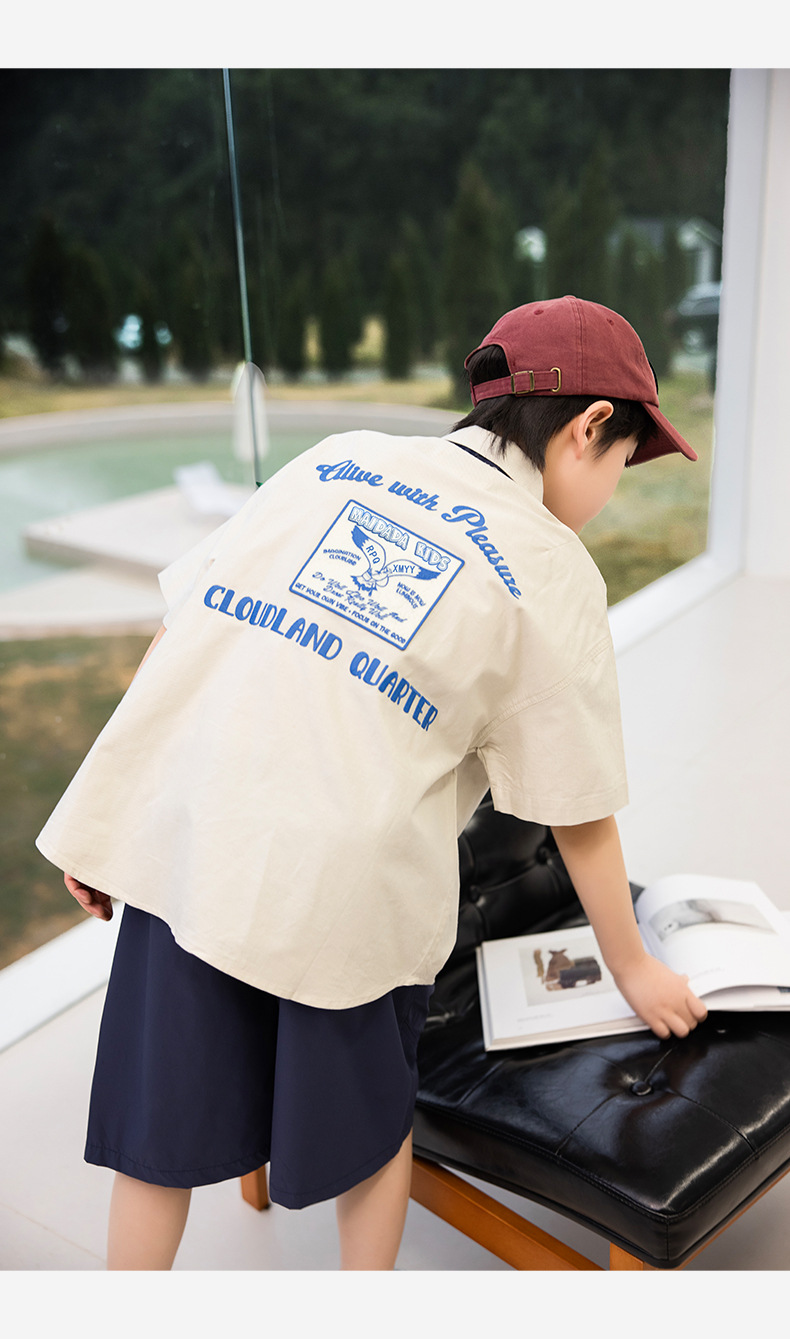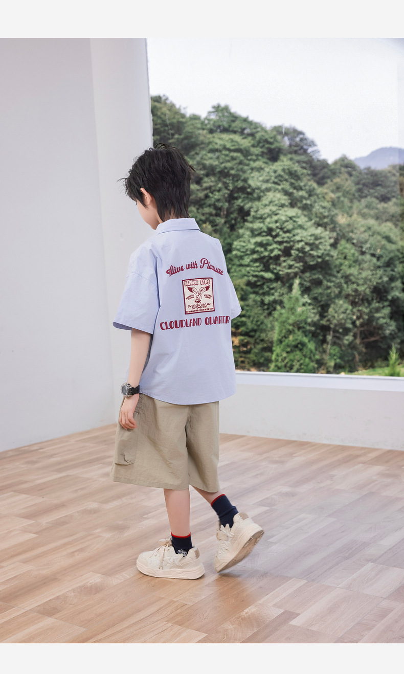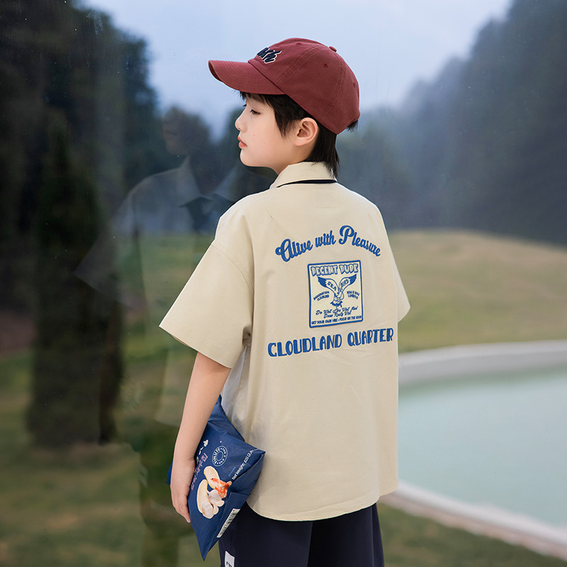 팬더 Yuanyuan 2025 여름 새 소년 면 셔츠 어린이 짧은 소매 셔츠 여름 재킷 공장 도매