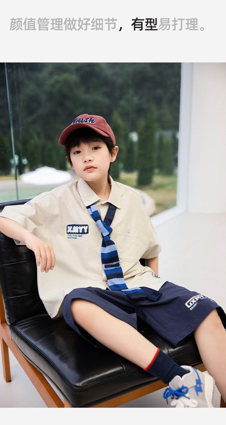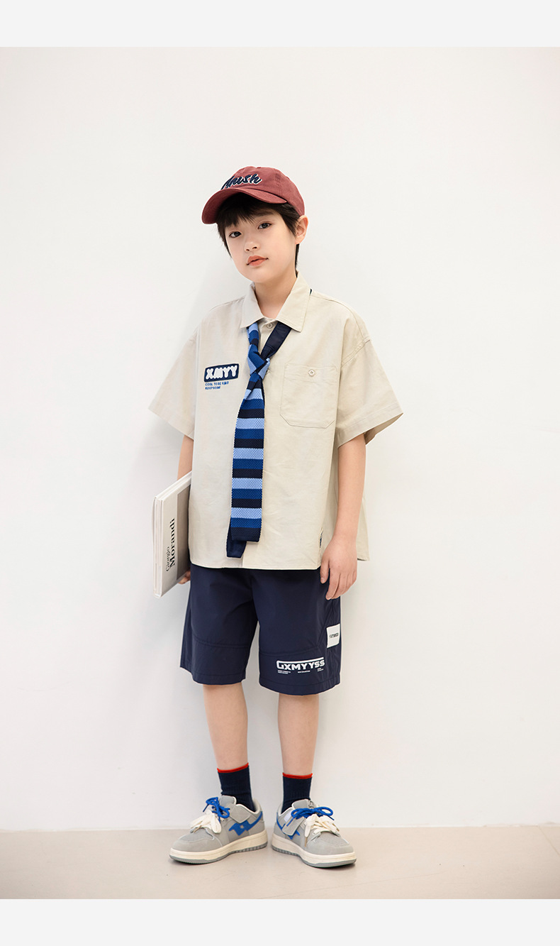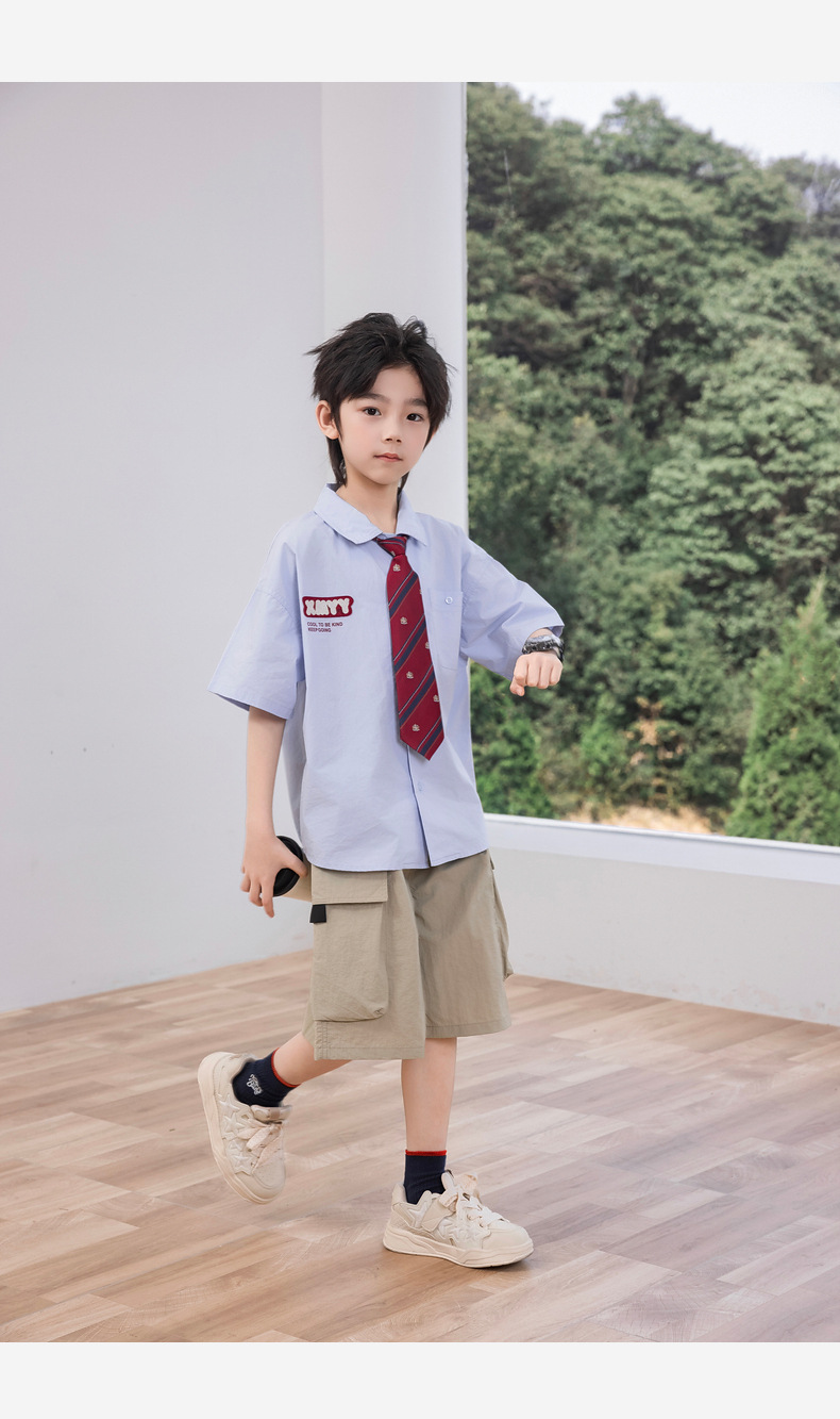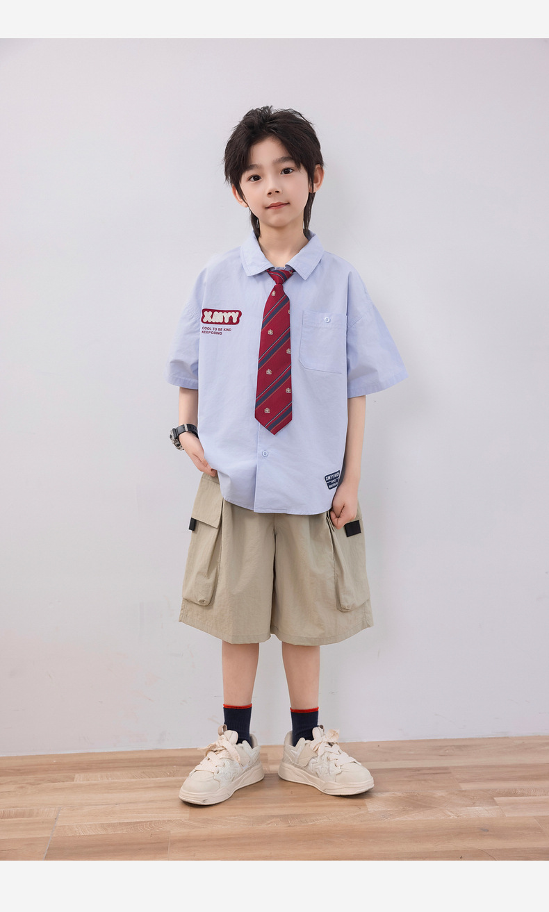팬더 Yuanyuan 2025 여름 새 소년 면 셔츠 어린이 짧은 소매 셔츠 여름 재킷 공장 도매