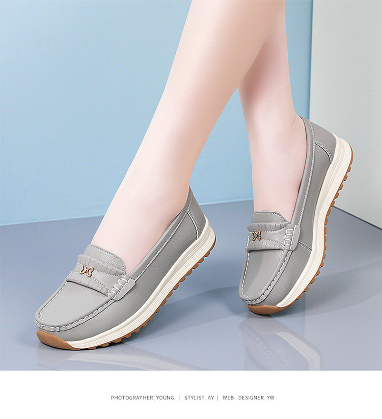 중노년 엄마들을 위한 봄 신상 신발, 부드러운 밑창, 발이 피곤하지 않은, 미끄럼 방지 플랫 콩신발, 활용도가 높은 슬립온 캐주얼 슈즈스토어 가기