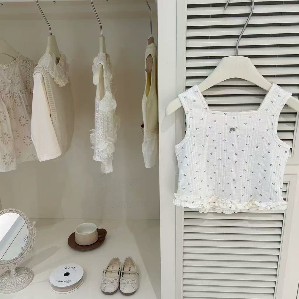 [어린이 스타서클] 2025 년 여름 소녀 꽃 레이스 니트 조끼 데님 반바지 아기 서양식 투피스 세트스토어 가기