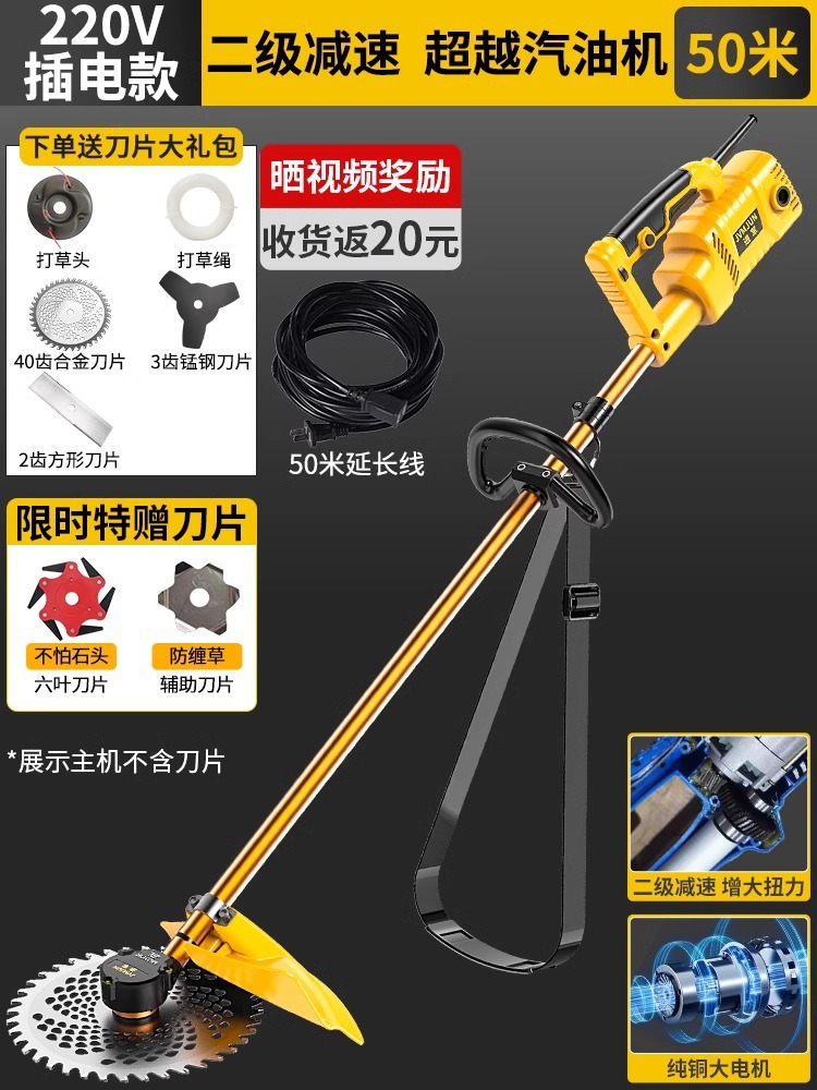 • (가솔린 엔진 초과) 220V 플러그인 모델 + 블레이드 무료 선물 패키지(50m 연장 코드)