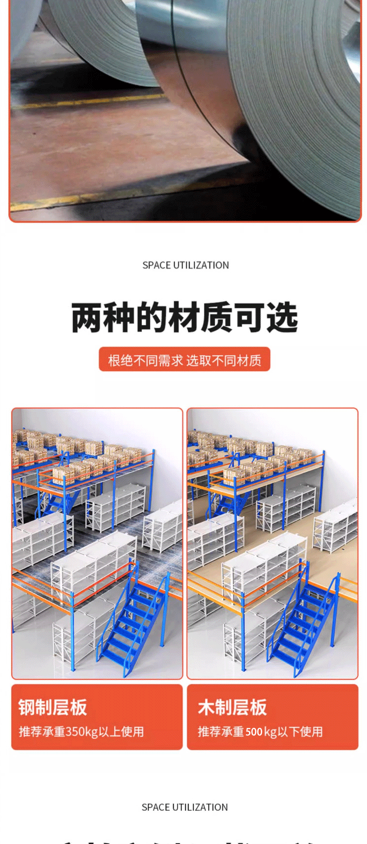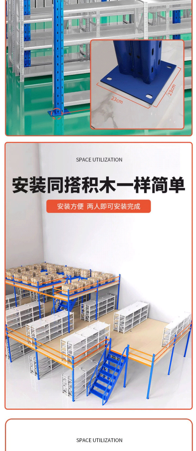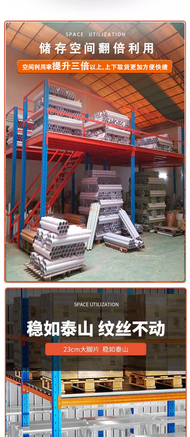 대형 다락방 플랫폼 선반 대형 공장 구획 이동식 도매 빌드 냉간 압연 강철 2 층 보관 선반
