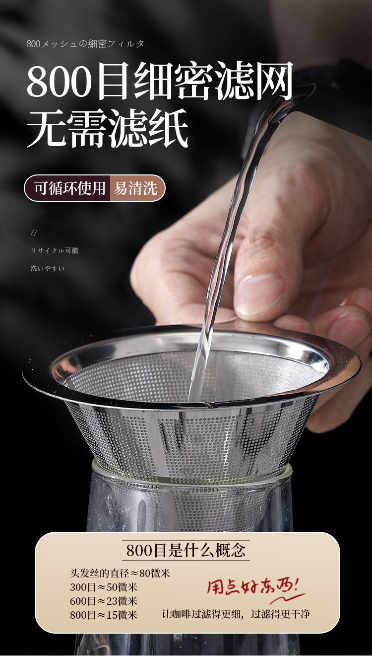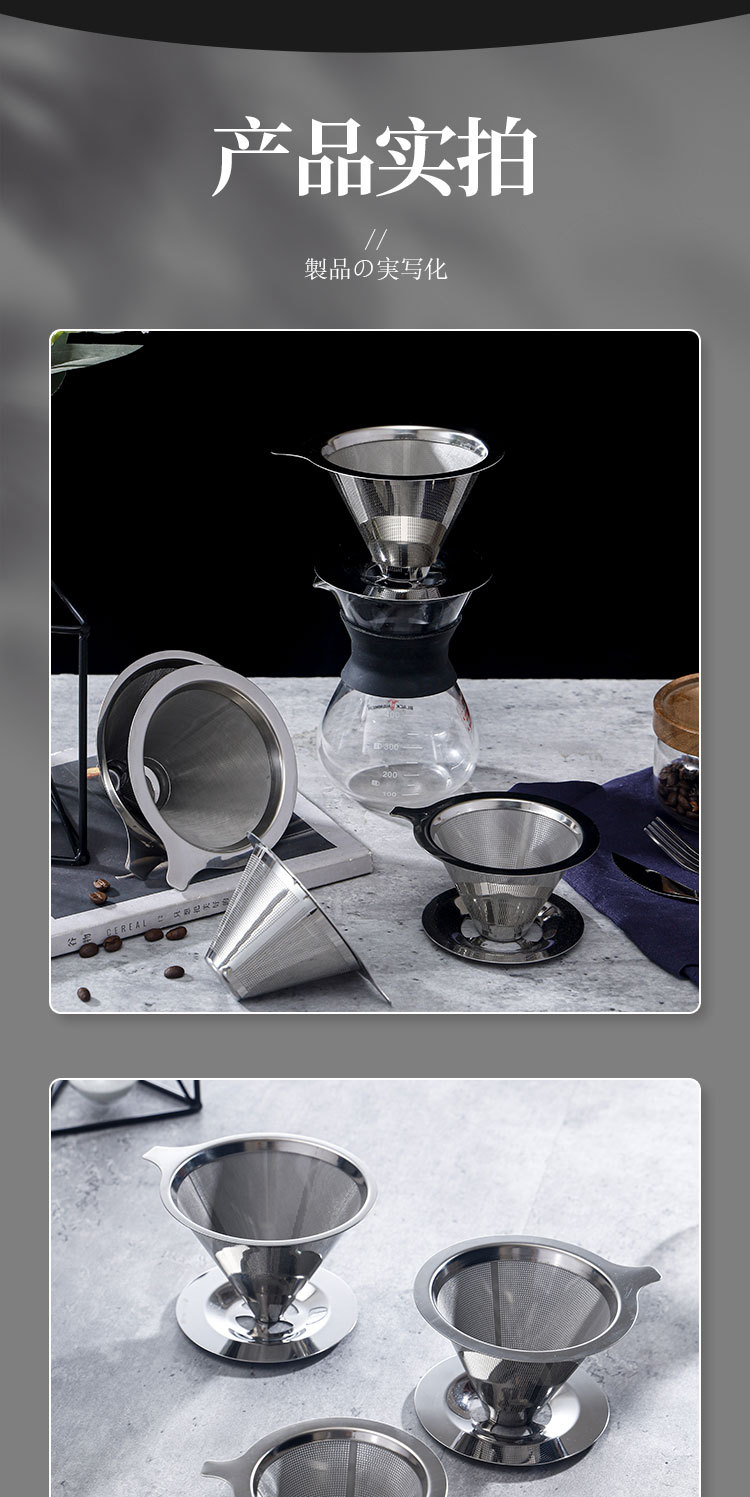 手冲咖啡过滤网V60滤杯免滤纸茶隔渣漏斗304不锈钢双层咖啡过滤器
