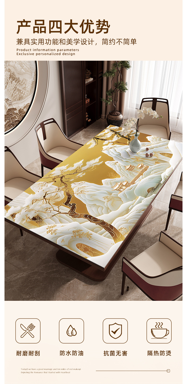 3D 3 차원 식탁 매트 방수 및 내유성 비 세척 용 식탁보 안티 스케일 데스크탑 보호 매트 라이트 럭셔리 고급 차 테이블 테이블 테이블 천