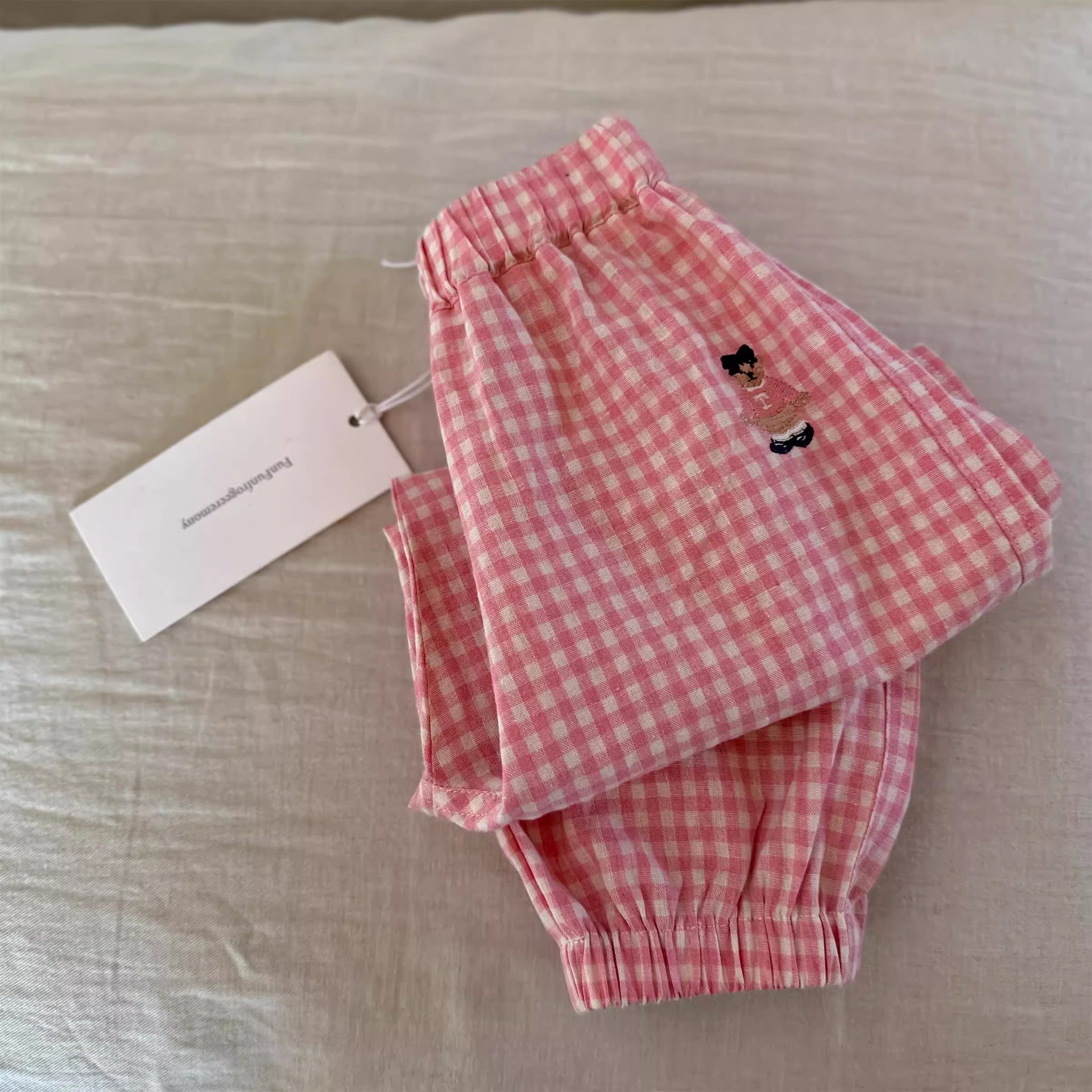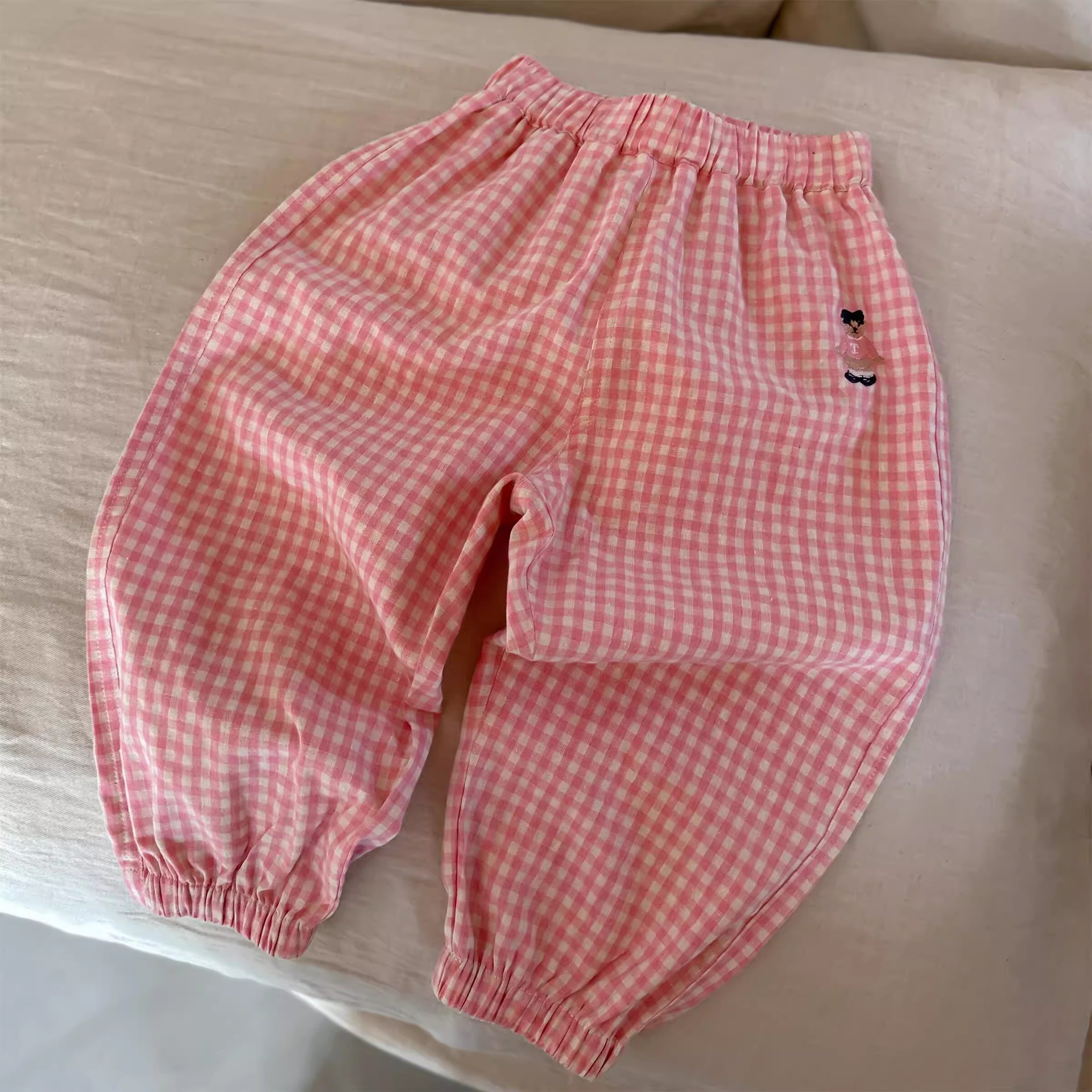 어린이 모기 방지 바지 2025 여름 소년 소녀를위한 일본 패션 격자 무늬 캐주얼 바지스토어 가기