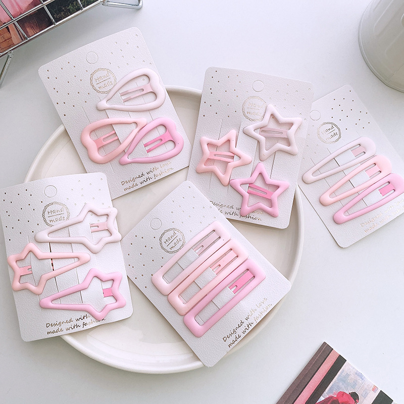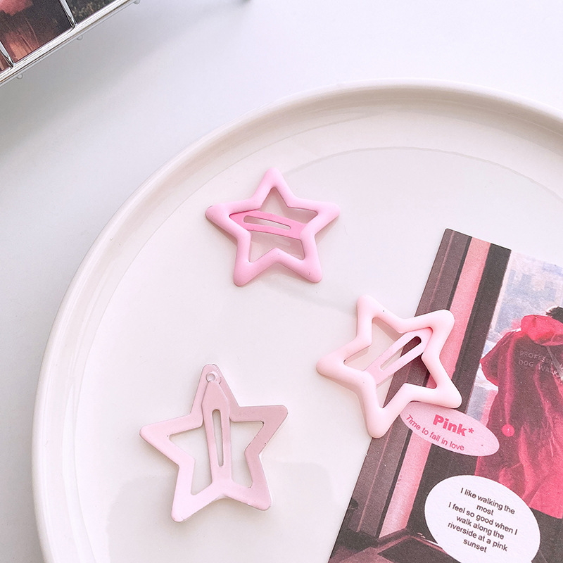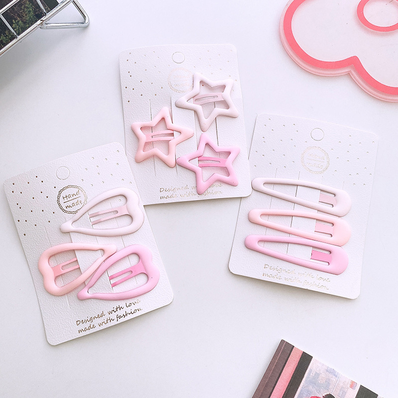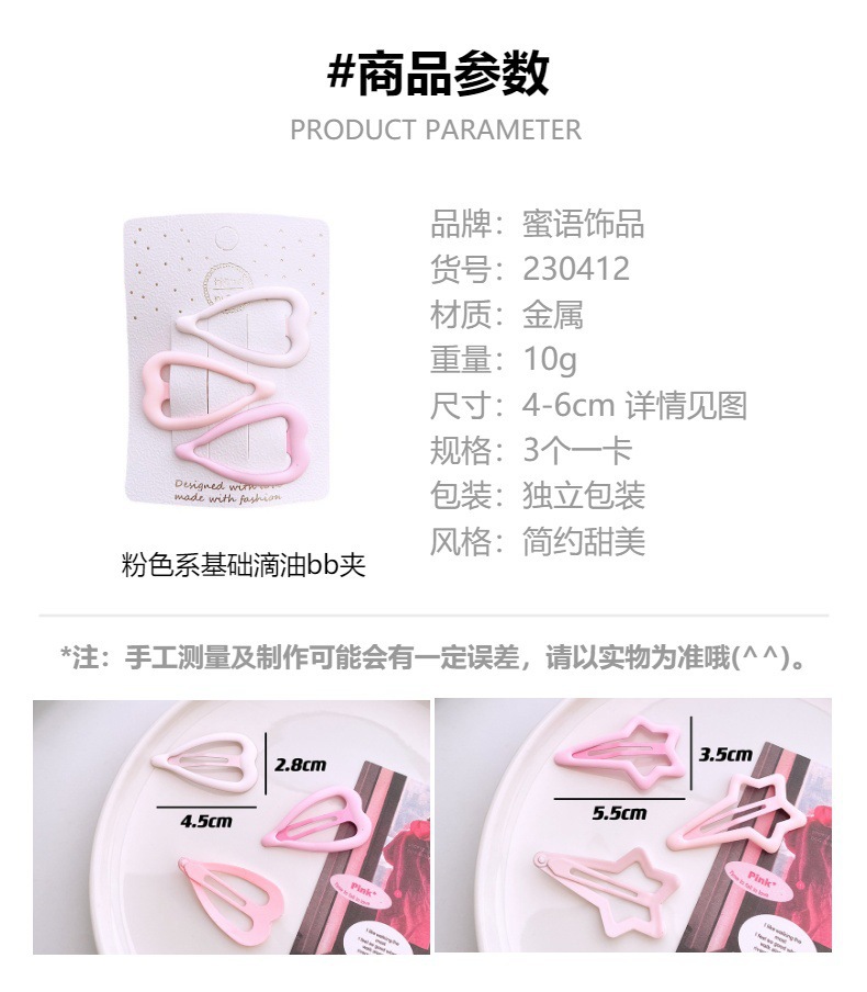 새로운 핑크 그라디언트 기본 중공 드롭 오일 bb 클립 사랑 스타 사각형 간단한 귀여운 헤어 액세서리