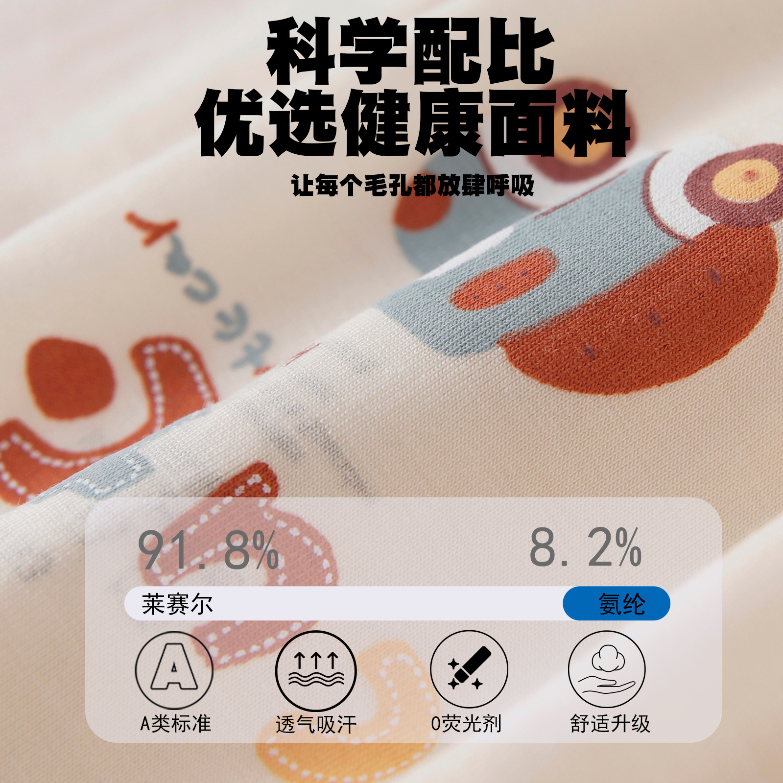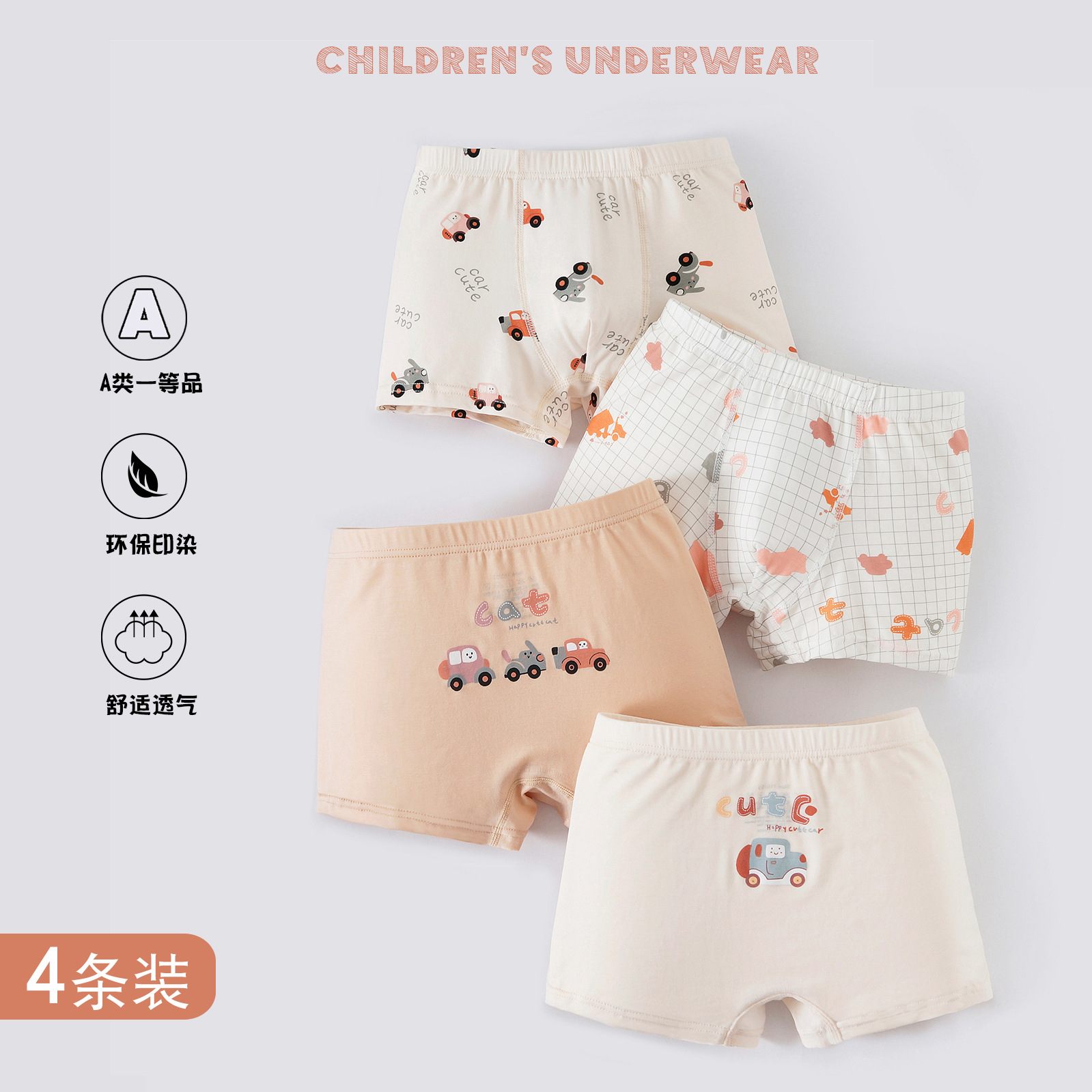 아동용 속옷, 남아용 리오셀 사각팬티, A형, 남아용, 중소형, 엉덩이가 꼬이지 않는 사각팬티