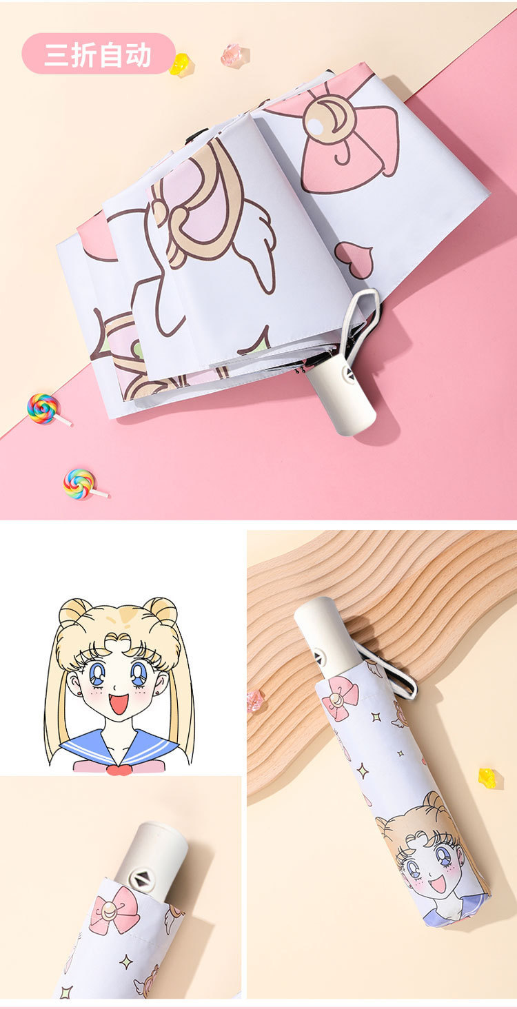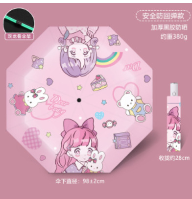 안전한 자동 반동 방지 어린이 우산 여성의 태양 보호 자외선 보호 태양 우산 맑고 비 이중 목적 휴대용 접는 우산스토어 가기