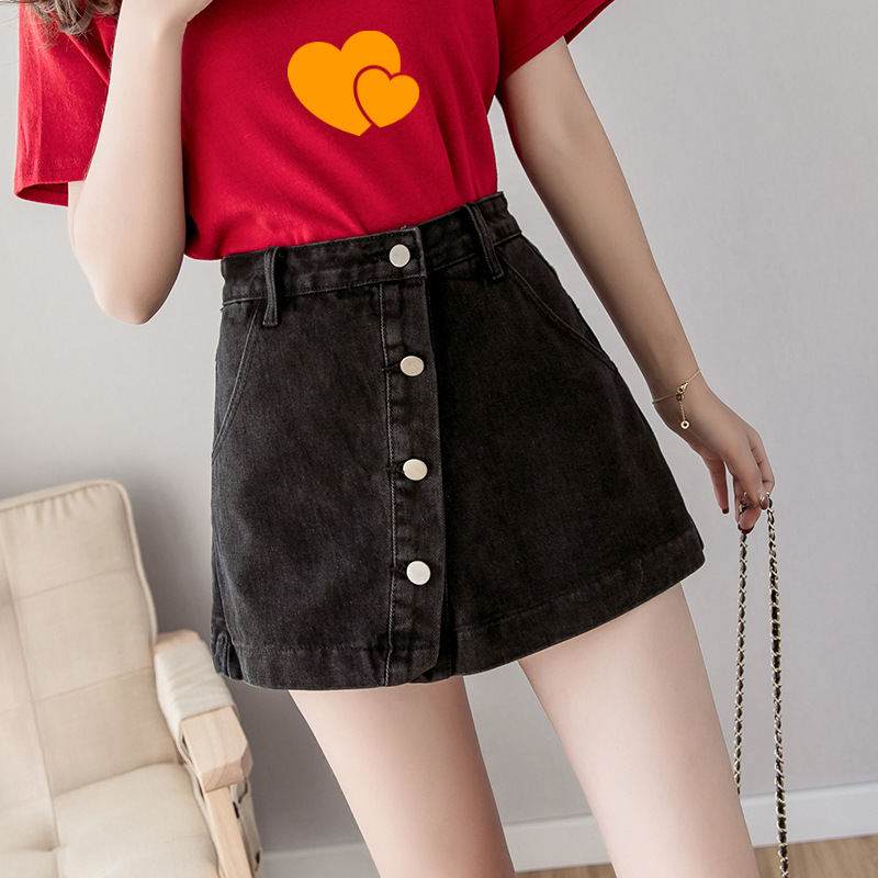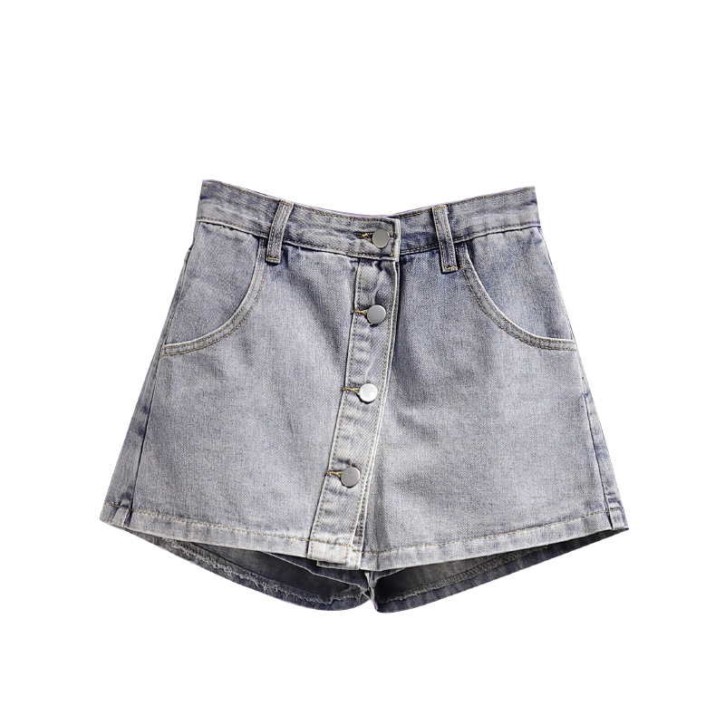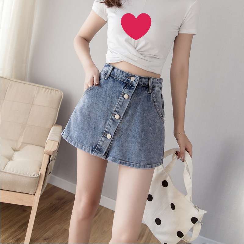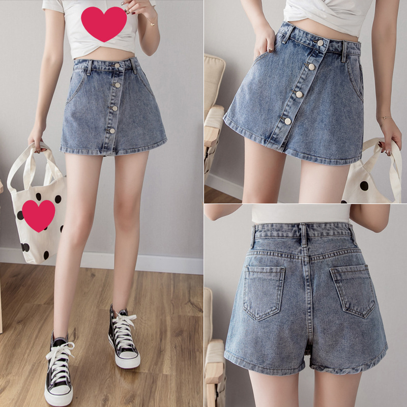 봄 새로운 도착 안티 눈부심 바지 스커트 플러스 사이즈 통통녀 100.00kg 높은 허리 데님 반바지 여성 슬림 룩 넓은 다리 A 라인 핫 바지스토어 가기