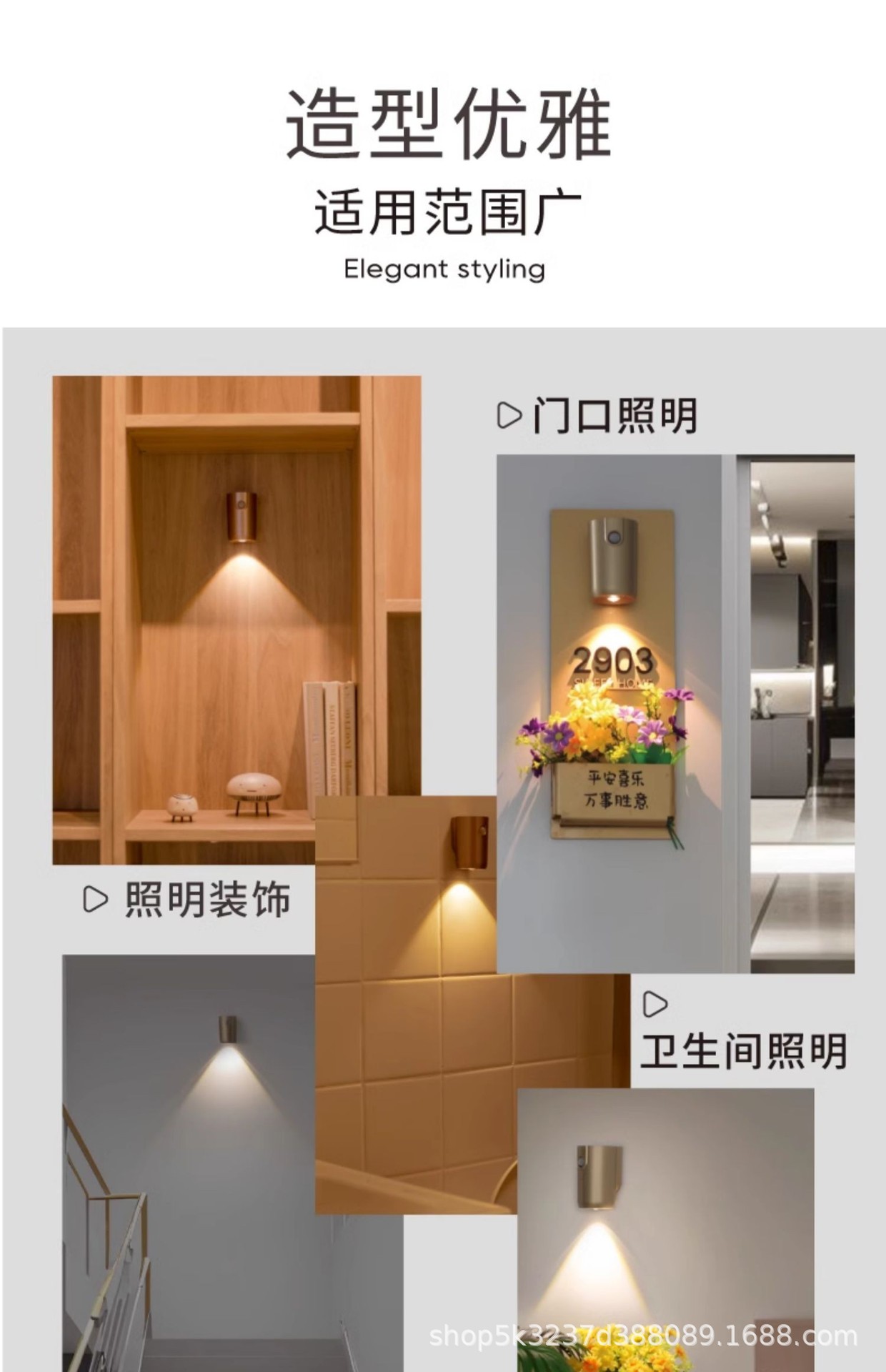 문 센서 조명, 인체 LED, 사람이 오면 켜짐, 배선 없음, 펀칭 없음, 도어 조명, 무선 자기 충전식 벽 조명스토어 가기