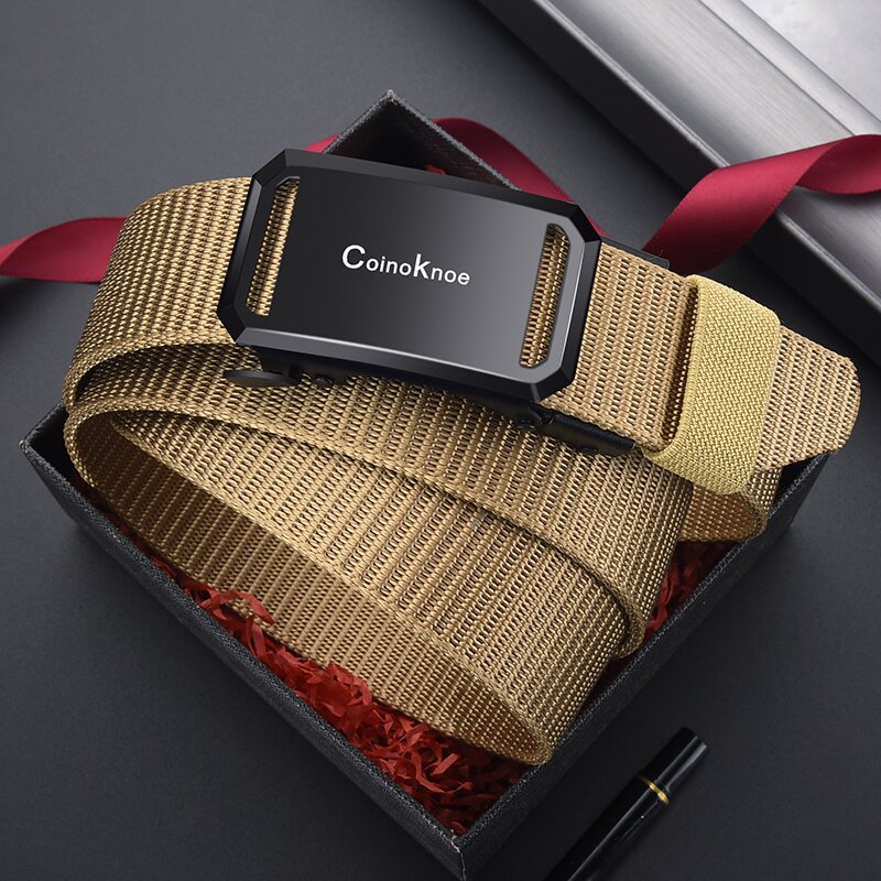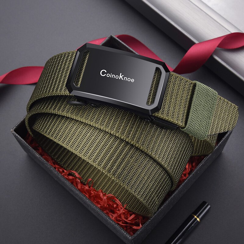 남자 이빨없는 자동 버클 캔버스 벨트 모조 나일론 야외 레저 군사 훈련 벨트 전술 벨트 국경 재고스토어 가기