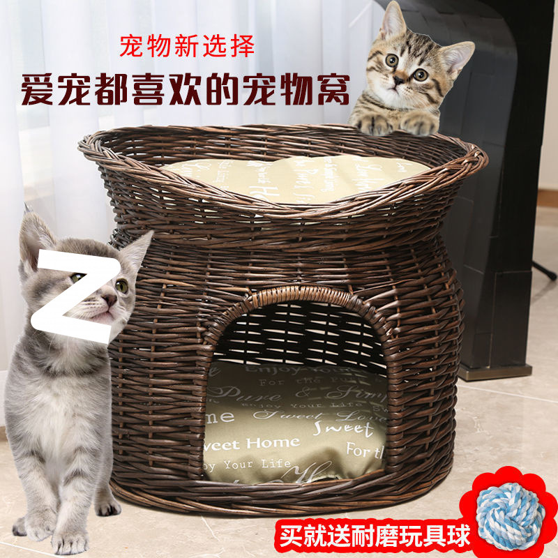 여름 Wo 등나무 짠 사계절 유니버설 매트 폐쇄 더블 레이어 짠 고양이 집 이동식 및 세척 가능한 중간 둥지 고양이 둥지 무료 배송