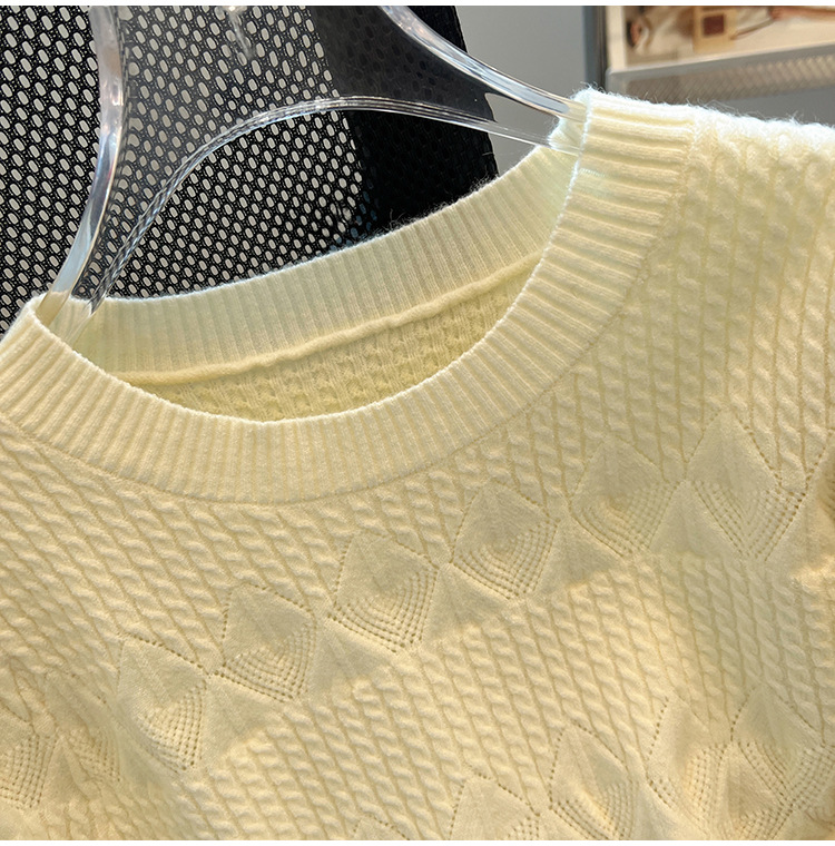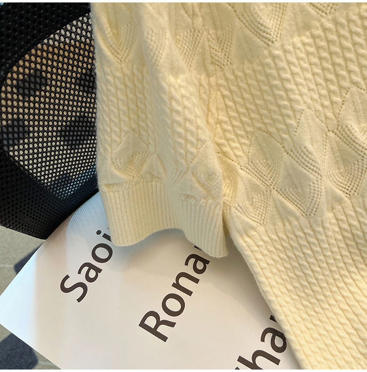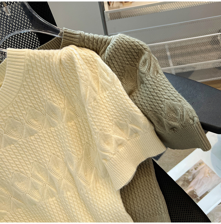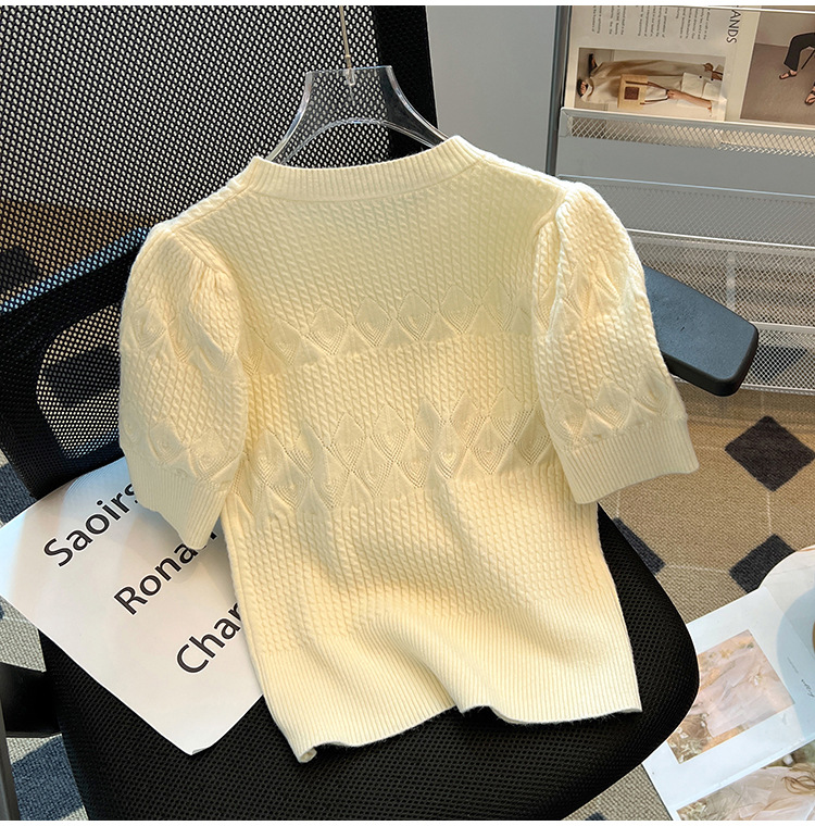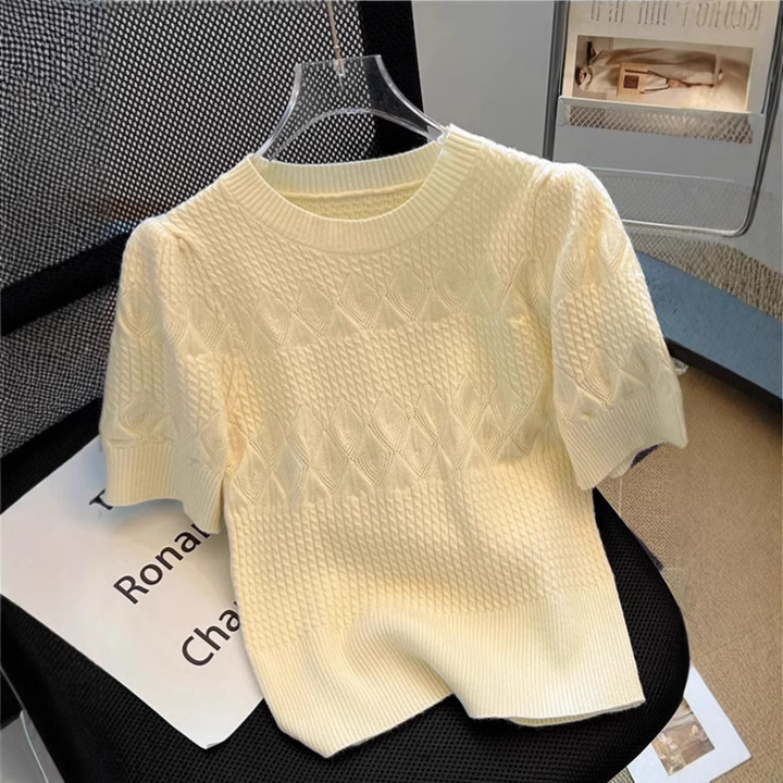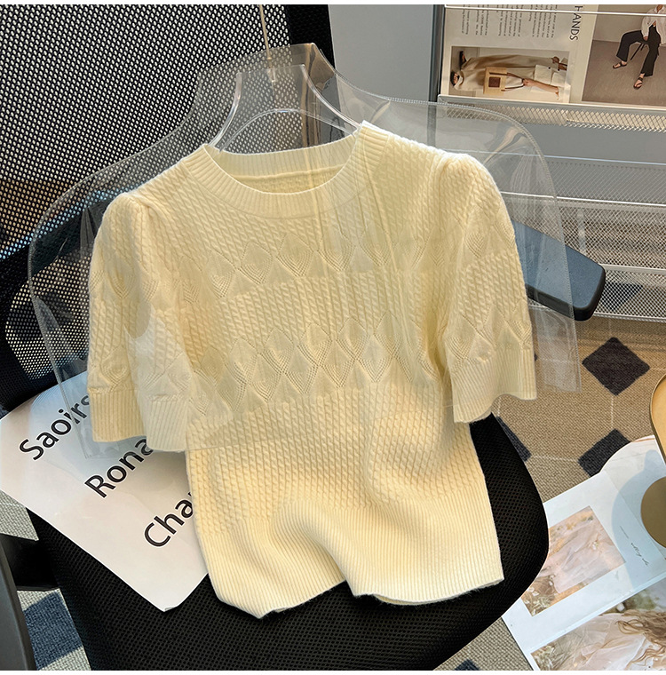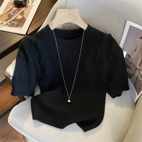 여름 아이스 실크 핫 소녀 순수한 욕망 중공 라운드 넥 아이스 실크 니트 반팔 티셔츠 여성용 다용도 루즈 탑 트렌디