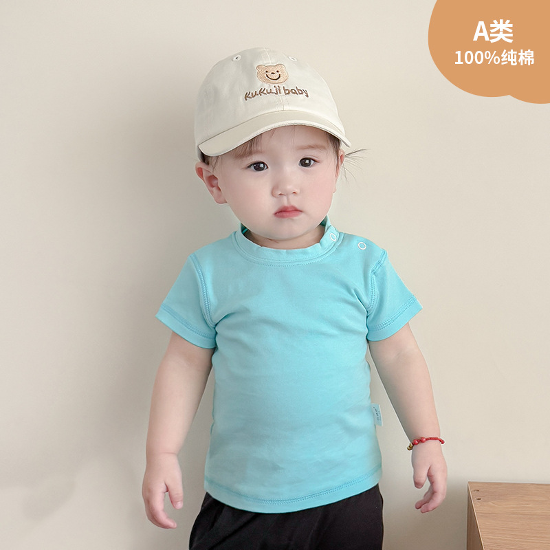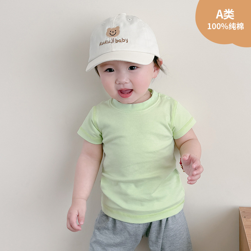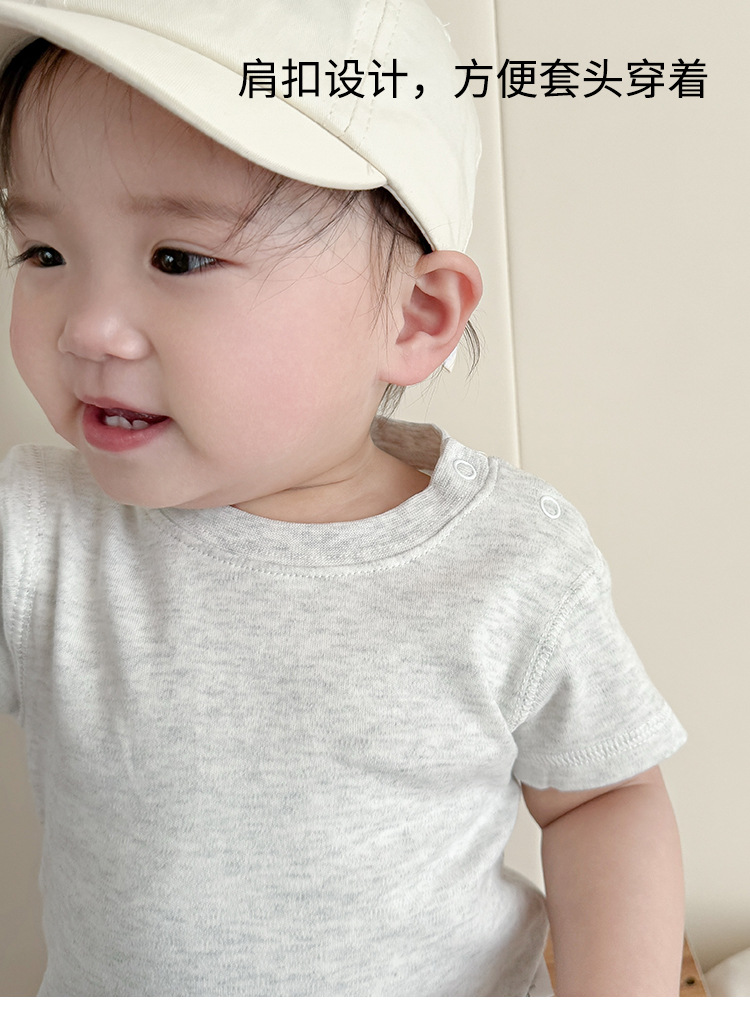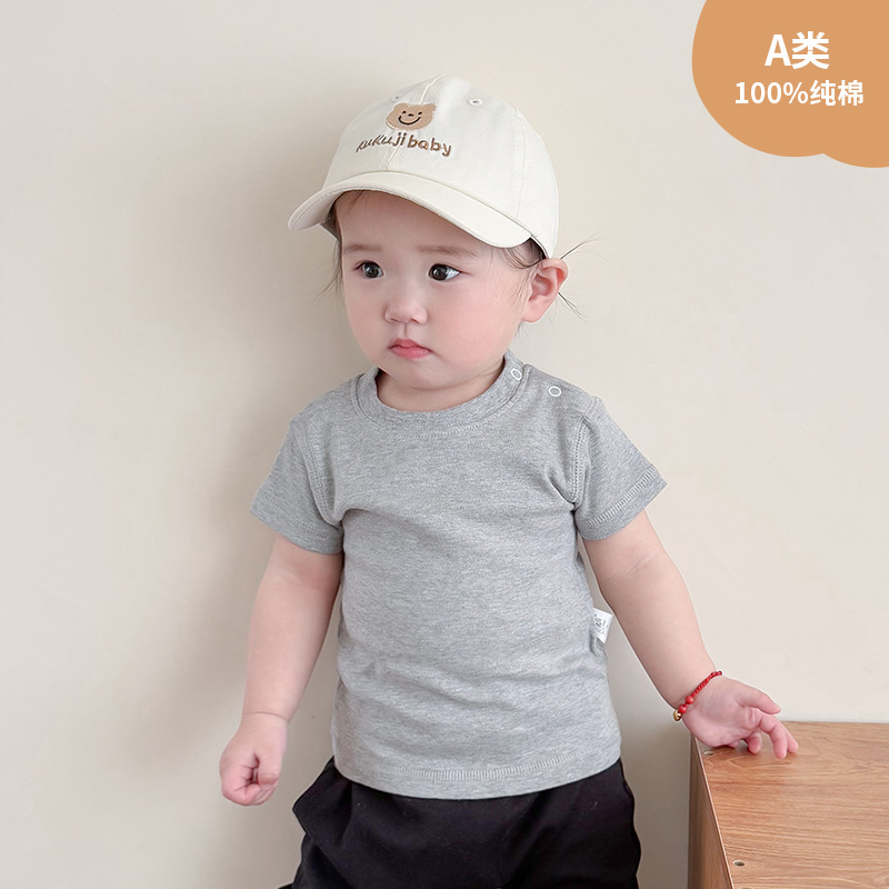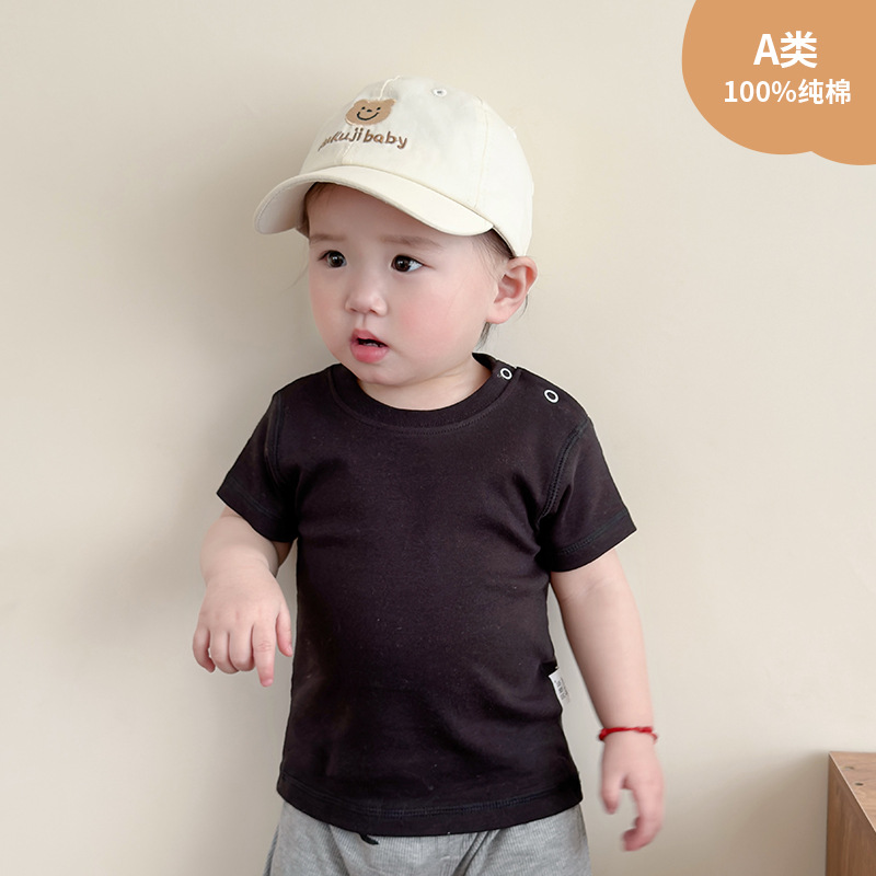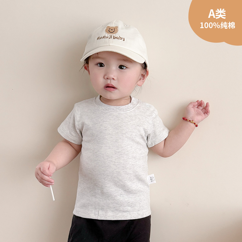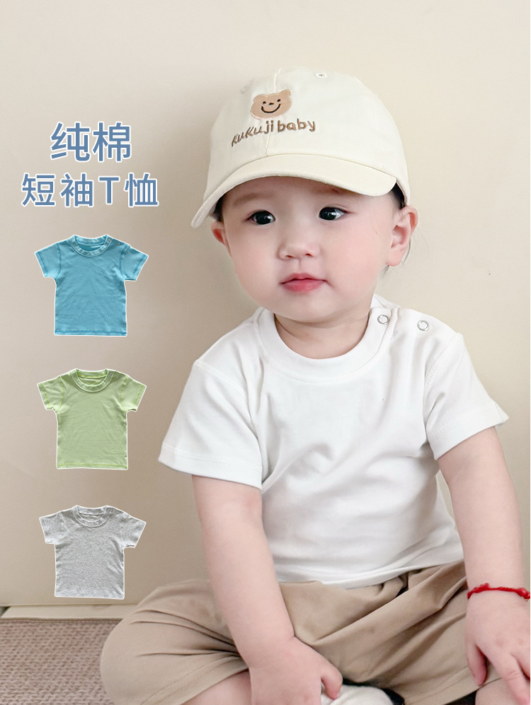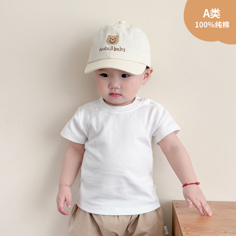 아기의 반소매 퓨어 코튼 클래스 A 탑 퓨어 화이트 올 매치 라운드 넥베이스 셔츠 작은 달 1 살 아기의 반소매 티셔츠