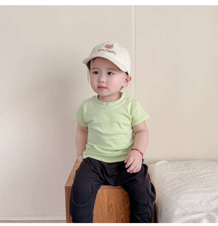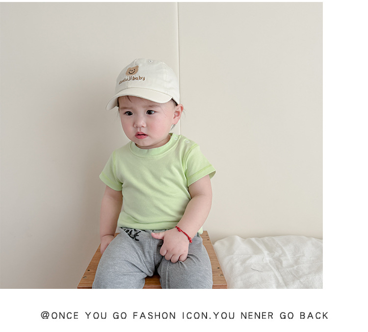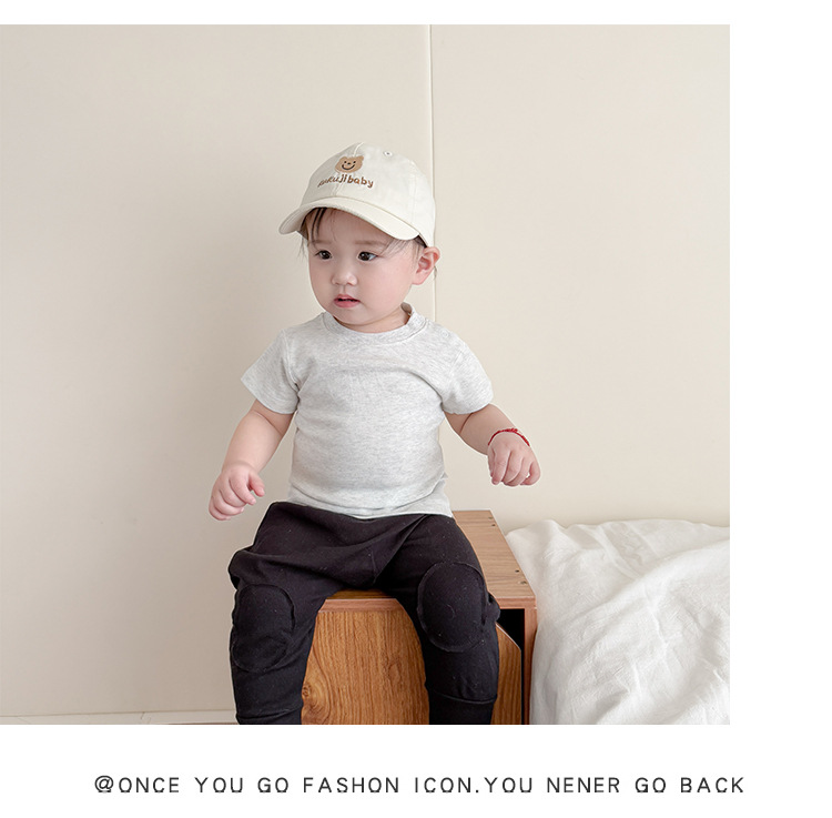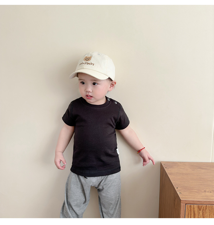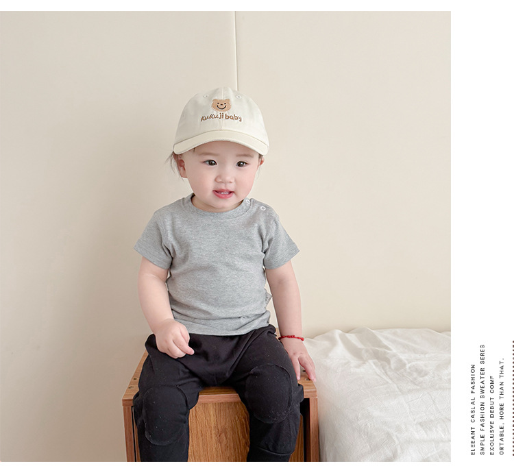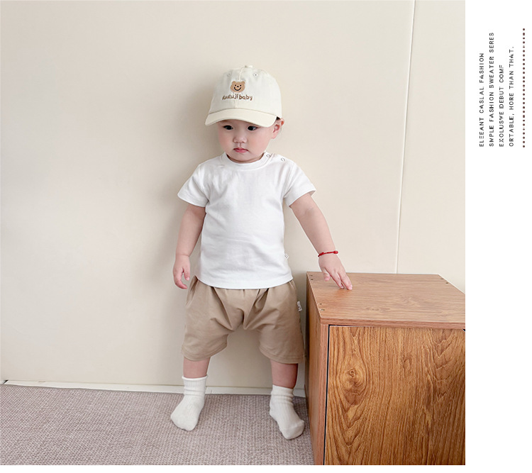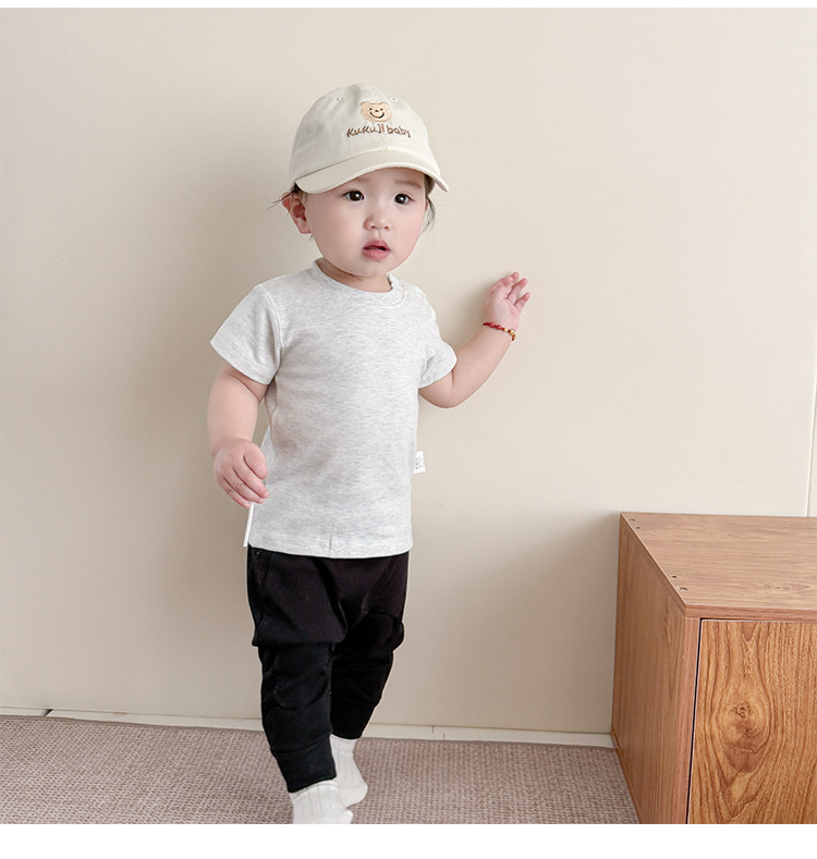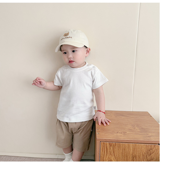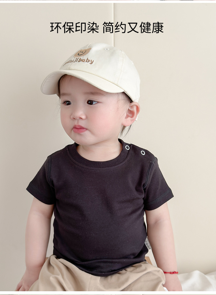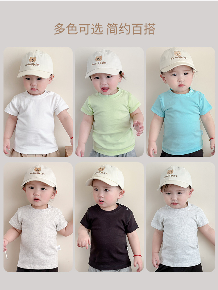 아기의 반소매 퓨어 코튼 클래스 A 탑 퓨어 화이트 올 매치 라운드 넥베이스 셔츠 작은 달 1 살 아기의 반소매 티셔츠