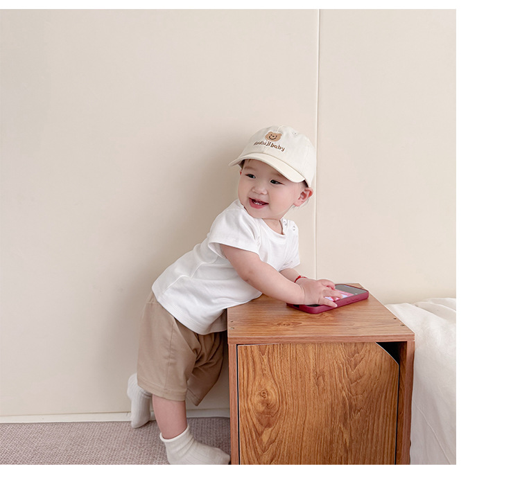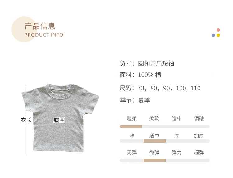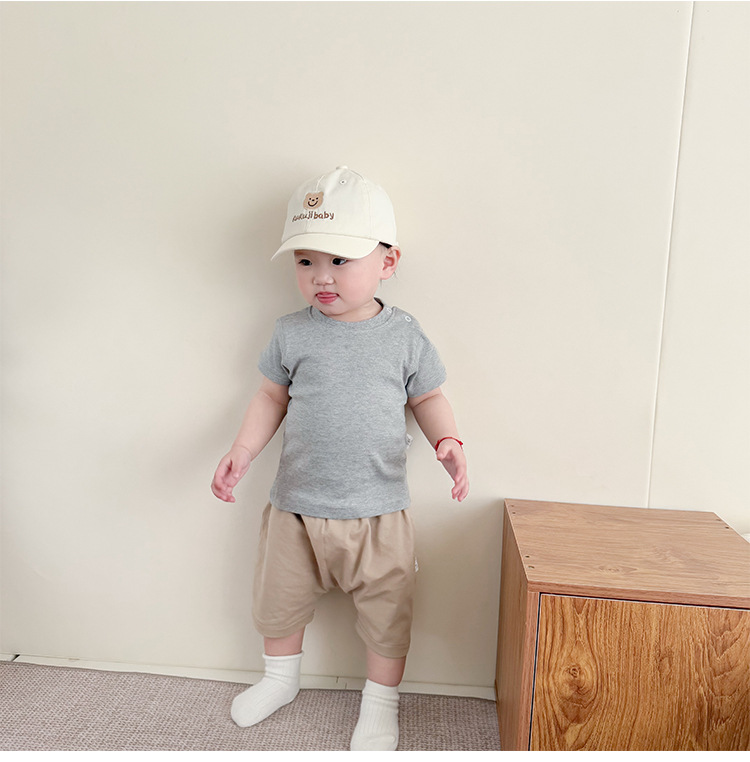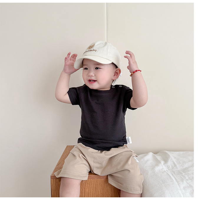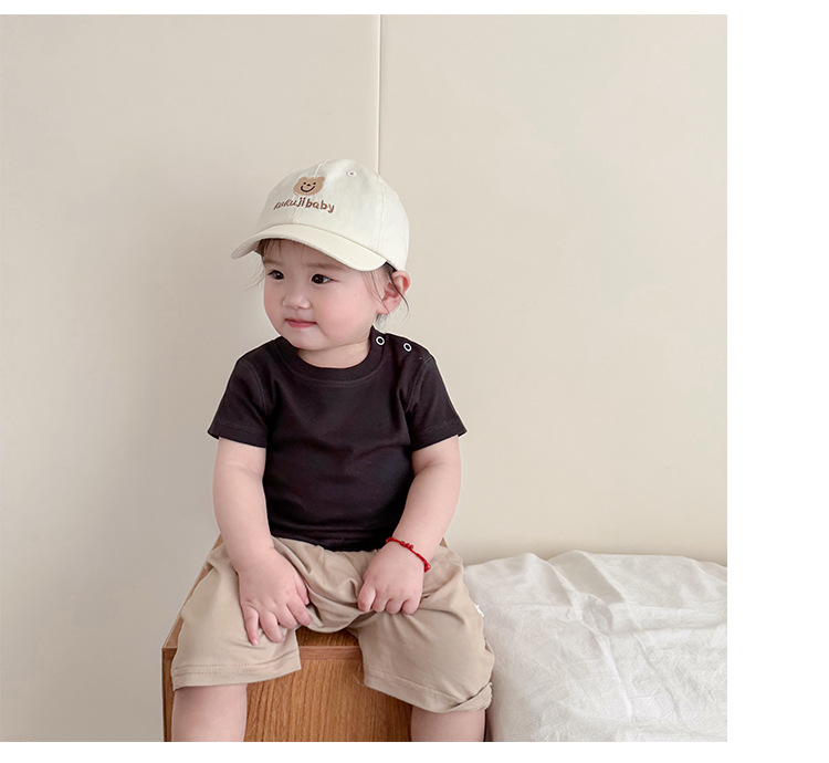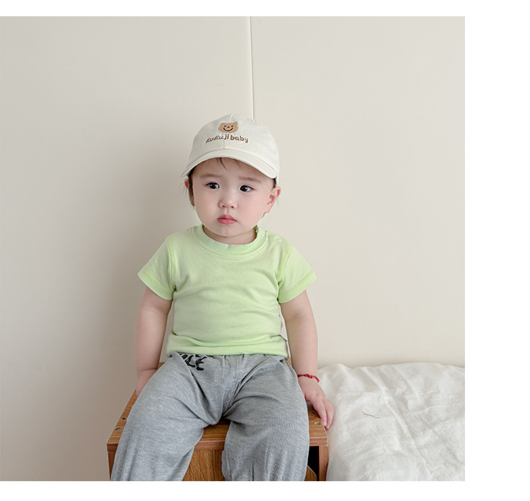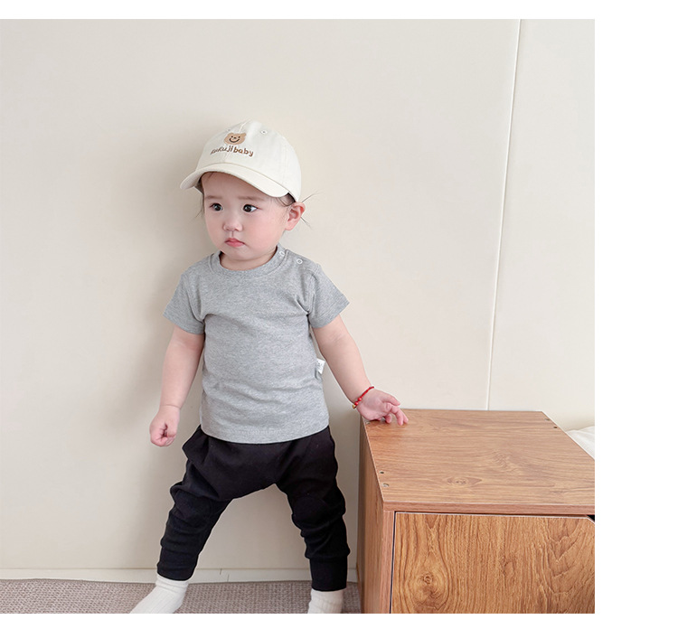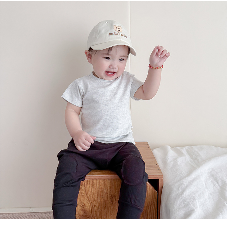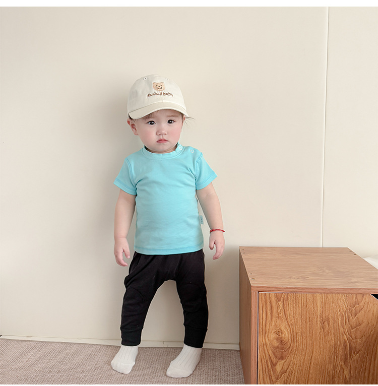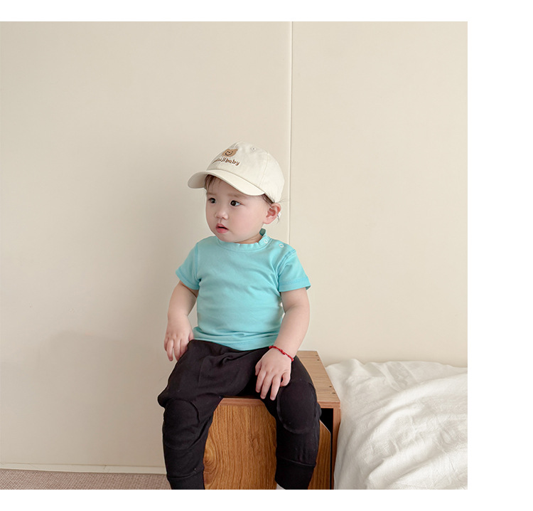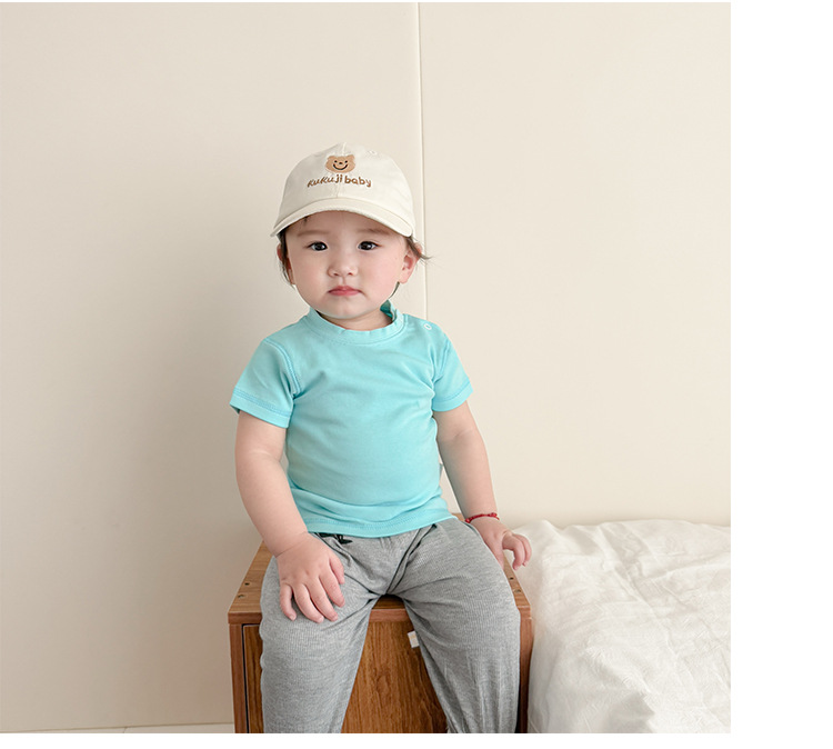 아기의 반소매 퓨어 코튼 클래스 A 탑 퓨어 화이트 올 매치 라운드 넥베이스 셔츠 작은 달 1 살 아기의 반소매 티셔츠