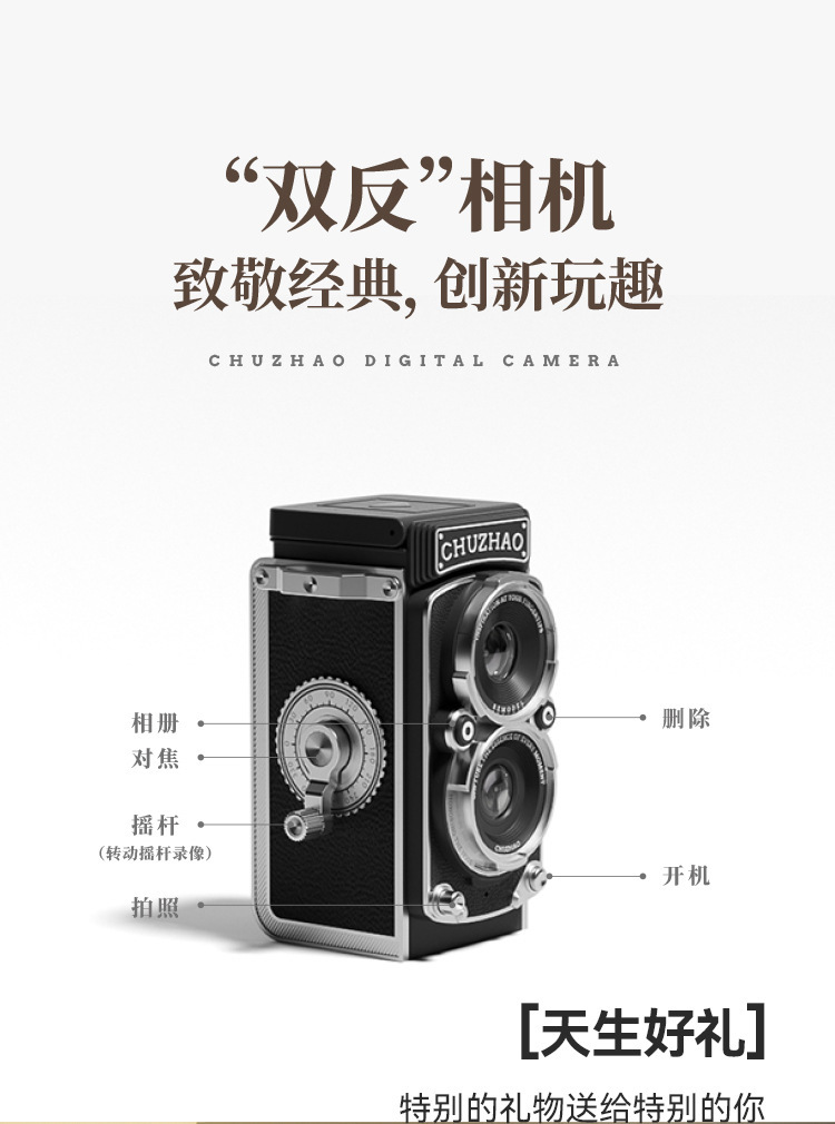Chuzhao 시뮬레이션 양방향 디지털 카메라 복고풍 휴대용 미니 ccd 소형 카메라 분위기 장식품 학생 선물