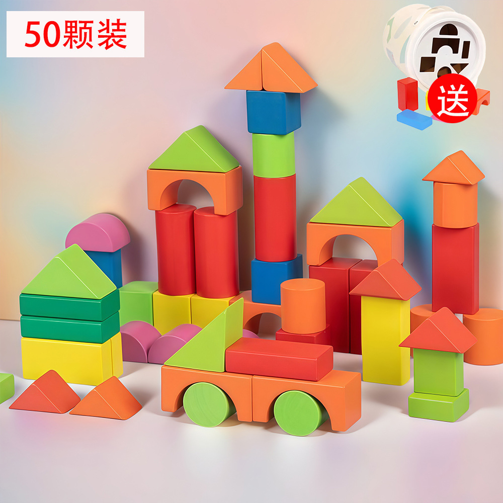 조기 교육 교육 블록 나무 큐브 삼각형 직사각형 빌딩 블록 수학 교육 보조 큐브 장난감 무취스토어 가기