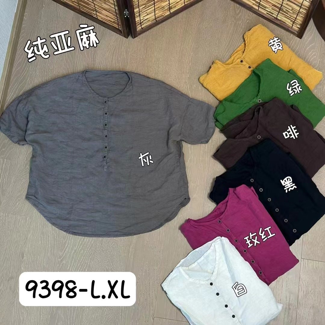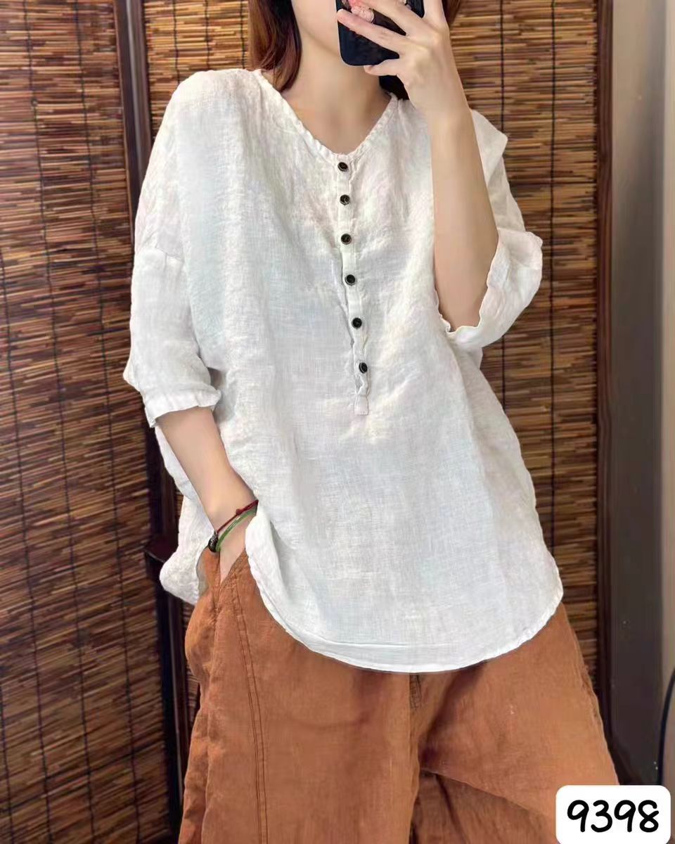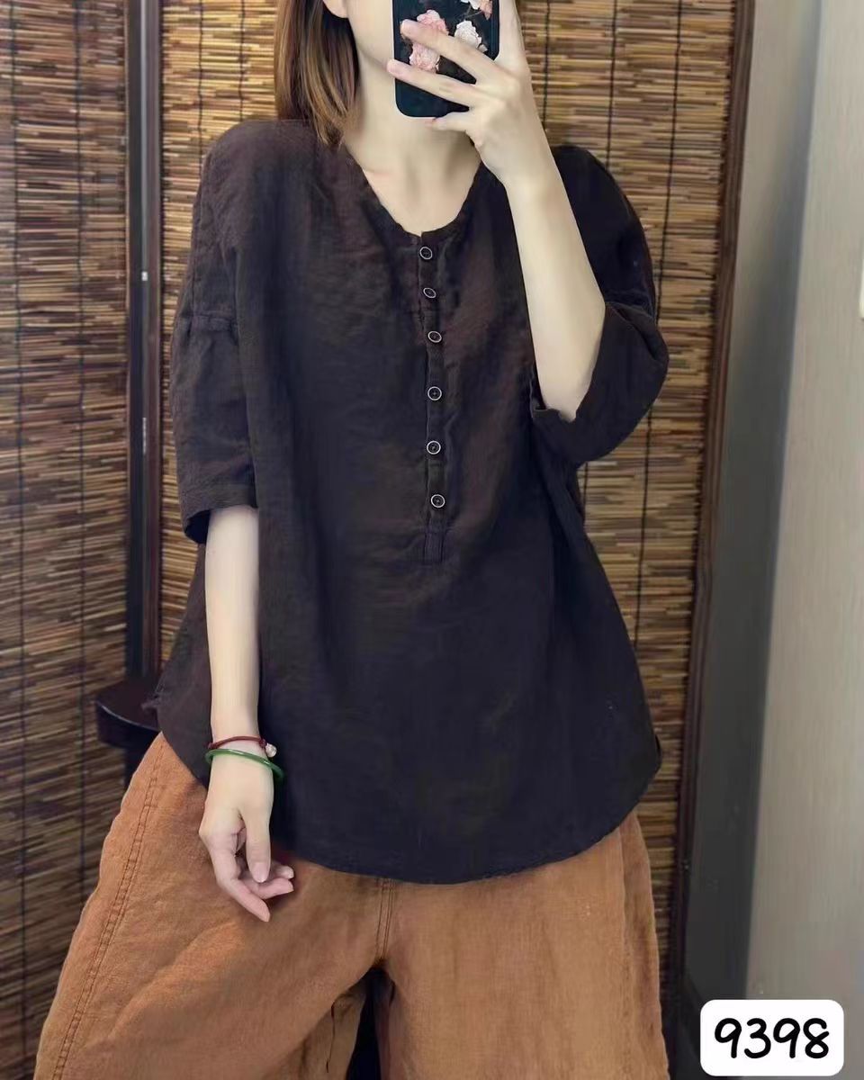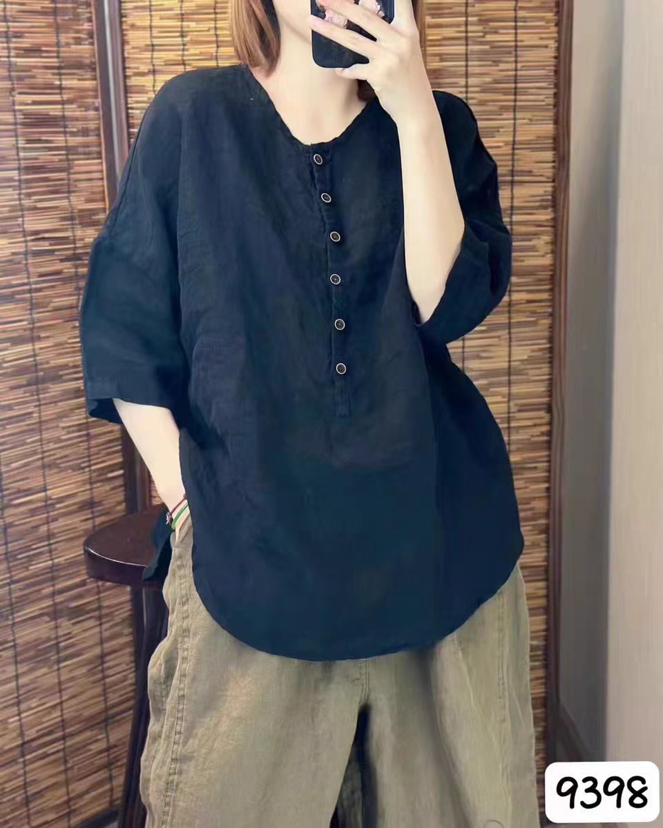 2025 봄 뉴 리넨 하프 슬리브 셔츠 여성용 루즈 슬리밍 레트로 홍콩 스타일 풀오버 셔츠 탑