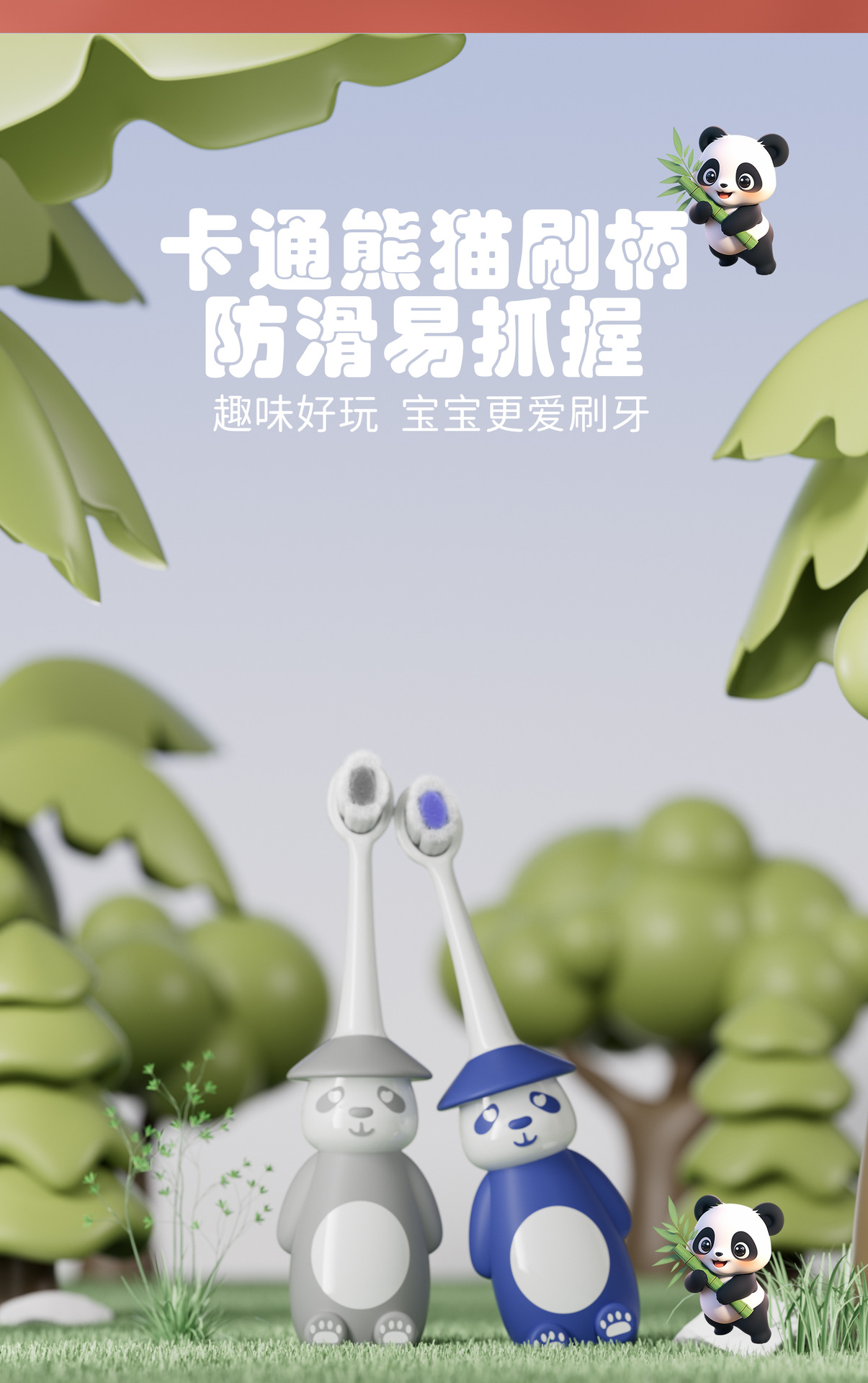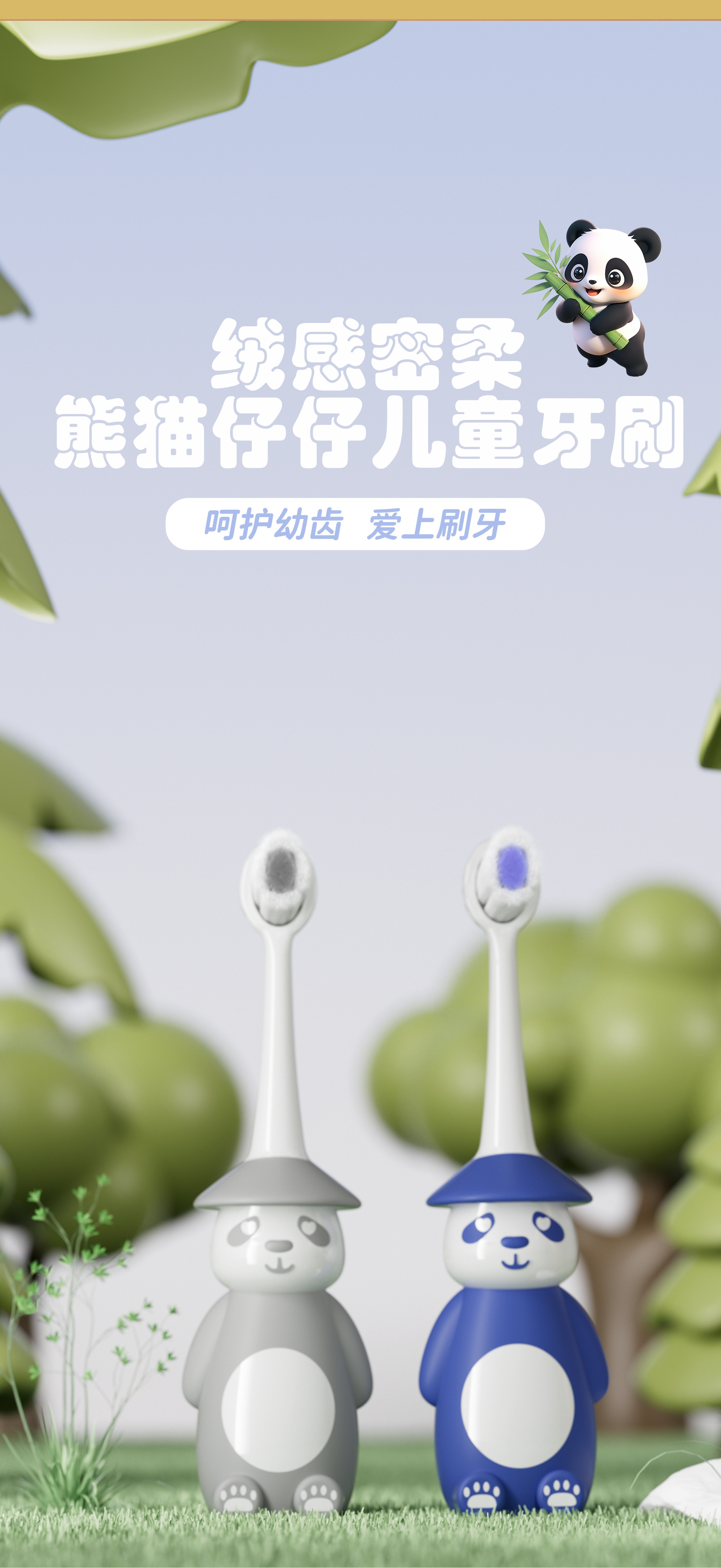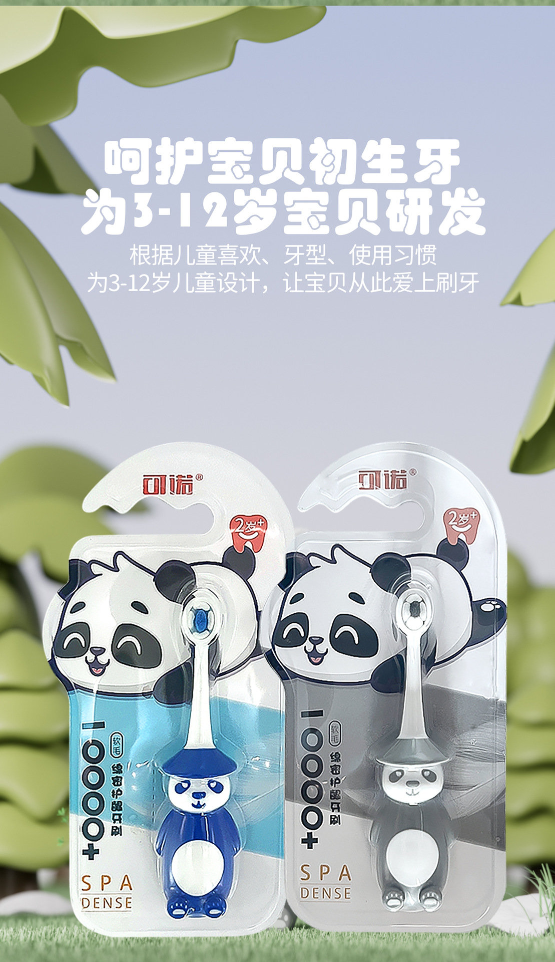 키노 만화 어린이 칫솔 부드러운 머리 스탠딩 팬더 2-6 세 아기 어린이 학생 치아 변화 기간을위한 특수 브러시